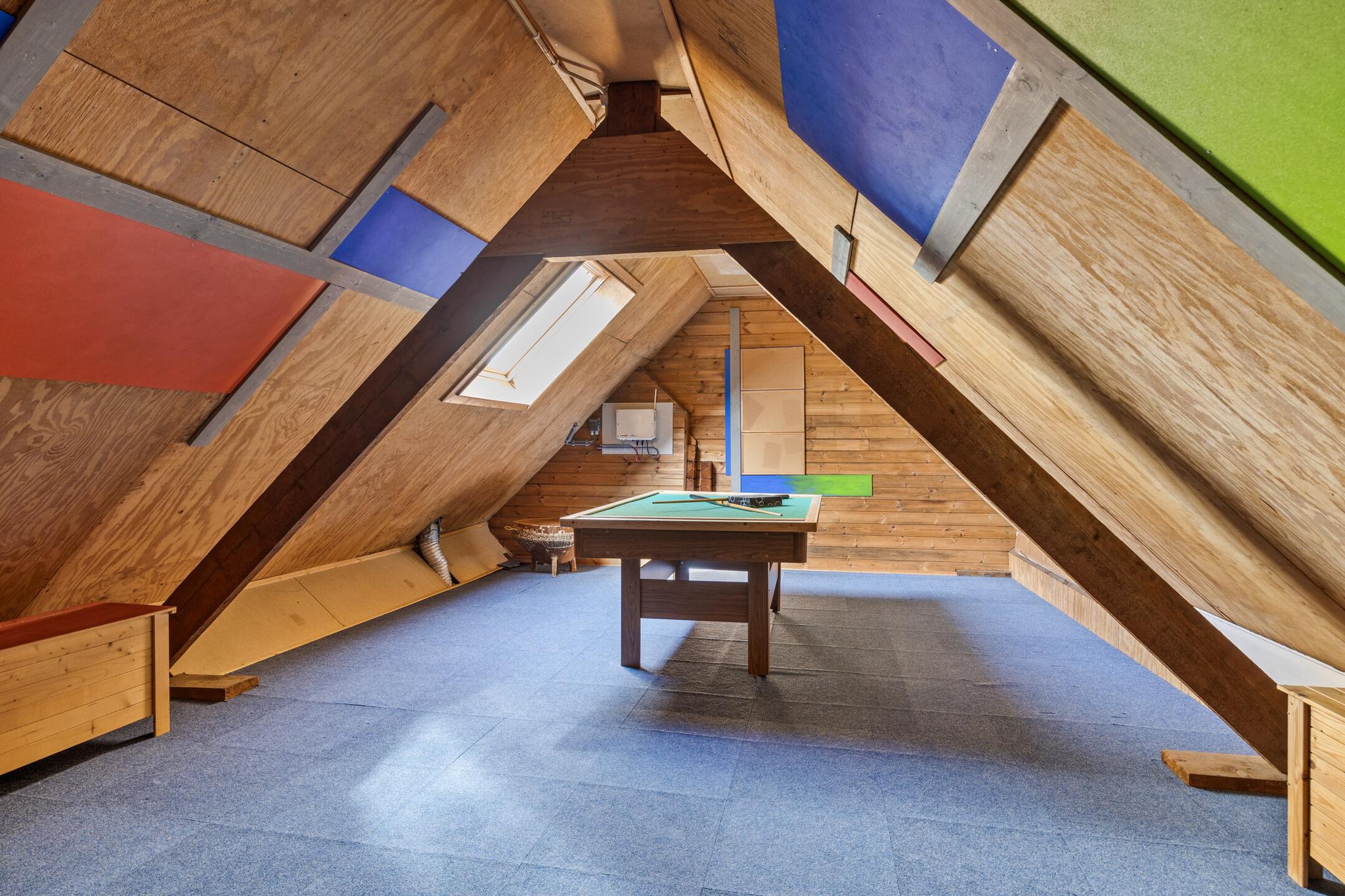 Vanuit de achterkamer op de begane grond is er via een vaste trap toegang tot een verrassend ruime hobbykamer. Deze grote ruimte biedt talloze mogelijkheden en kan volledig naar eigen wens worden ingericht. Of je het nu gebruikt als vrije tijdsruimte, extra slaapkamer(s), een kantoor of zelfs een tweede woonkamer, de ruimte is veelzijdig en biedt enorm veel potentieel. Het grote dakraam zorgt voor extra sfeer en comfort, waardoor de ruimte licht aanvoelt. Dankzij het formaat en de indelingsmogelijkheden is deze kamer perfect voor diverse toepassingen, zodat het goed kan aansluiten bij eenieders persoonlijke behoeften.