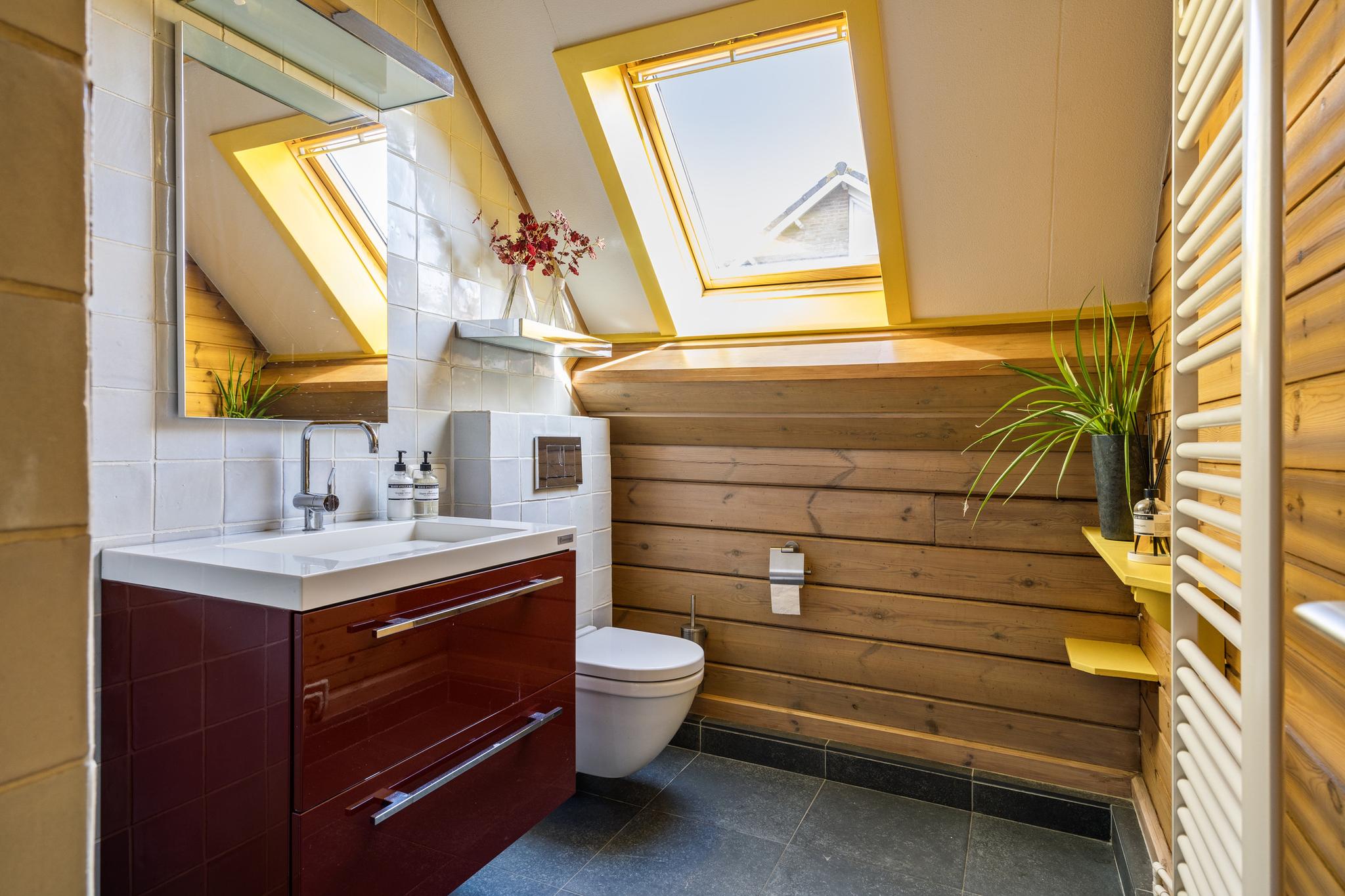 Via de sfeervolle trapopgang bereiken we de eerste verdieping van deze woning. De ruime overloop biedt toegang tot vier volwaardige slaapkamers en de badkamer. De master bedroom, gelegen aan de voorzijde van de woning, is een oase van ruimte. Deze royale slaapkamer beschikt over een inbouwkast over de gehele breedte, waardoor je veel opbergruimte hebt. Er is volop ruimte voor een groot tweepersoonsbed met nachtkastjes, en de grote ramen zorgen voor veel lichtinval. Op de gehele verdieping is er bovendien natuurlijke ventilatie via ventilatieroosters in de kozijnen, wat zorgt voor een prettig binnenklimaat. De tweede slaapkamer bevindt zich naast de master bedroom en is van prima formaat, ideaal als logeerkamer, werkkamer of kastenkamer. De overige twee slaapkamers bevinden zich aan de rustige achterzijde van de woning en zijn identiek in indeling. Beide slaapkamers zijn goed van formaat en kunnen gemakkelijk als slaapkamer worden ingericht. Ook deze kamers zijn voorzien van inbouwkasten voor extra opbergruimte. De rechter slaapkamer heeft bovendien de mogelijkheid om het breed bemeten, zonnige balkon te betreden, met prachtig uitzicht over de achtertuin en achter gelegen landerijen. Tot slot beschikt de verdieping over een badkamer met een douche, een wastafel met meubel, toilet en designradiator. Door de aanwezigheid van een groot dakraam, komt ook hier veel daglicht binnen en kan er extra worden geventileerd.