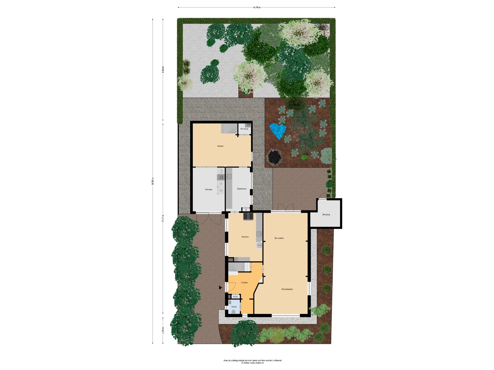 - Achterom aan zowel de zijkant als achterzijde van het perceel;