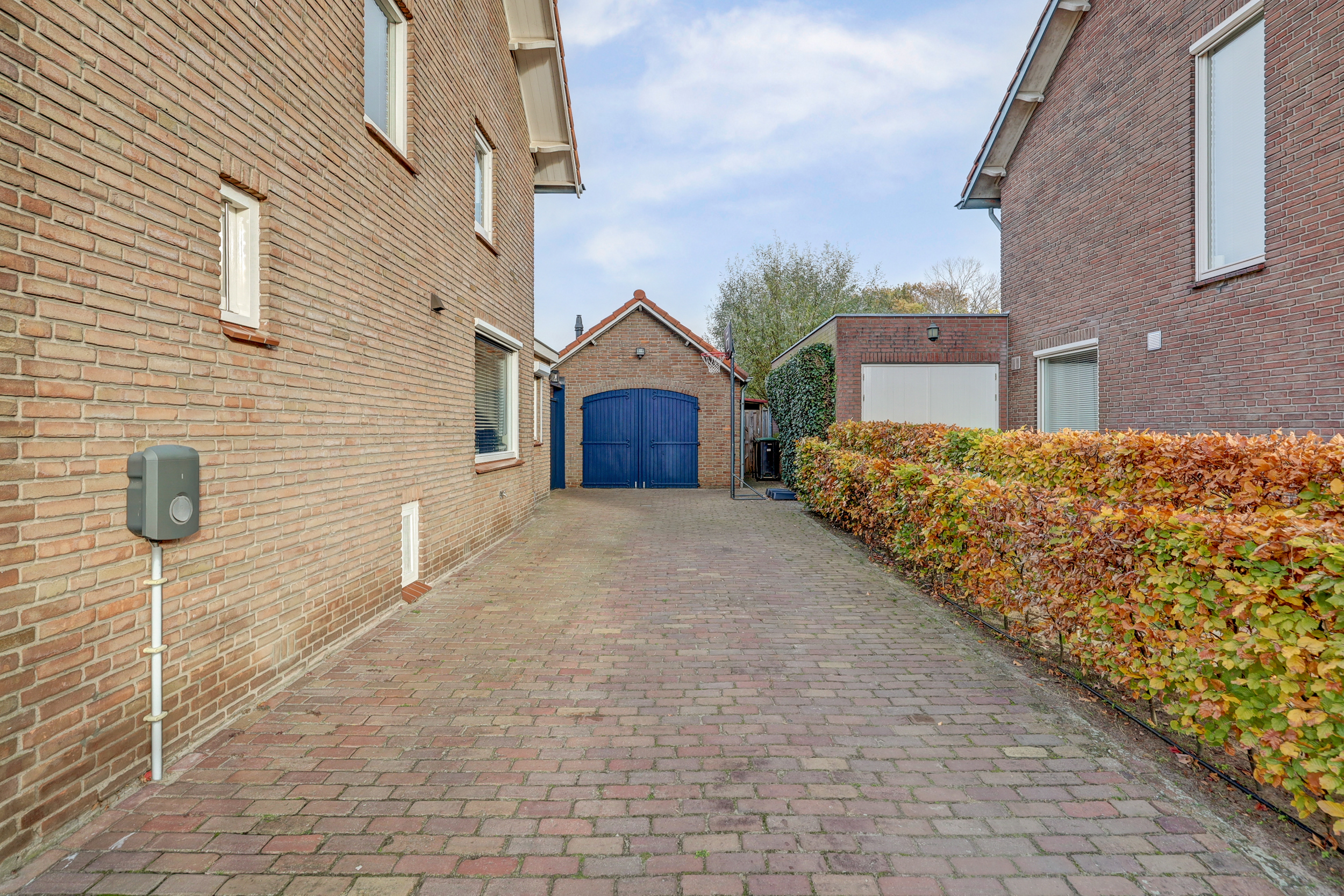 De garage is verwarmd via een eigen cv-ketel uit 2018 en is verbonden met een praktische berging, ideaal voor fietsen, gereedschap of extra opslag. Naast de garage bevindt zich een afsluitbare poort die toegang geeft tot de achterom. Ook aan de voorzijde is er meer dan voldoende ruimte: de brede oprit biedt plaats aan meerdere auto’s.