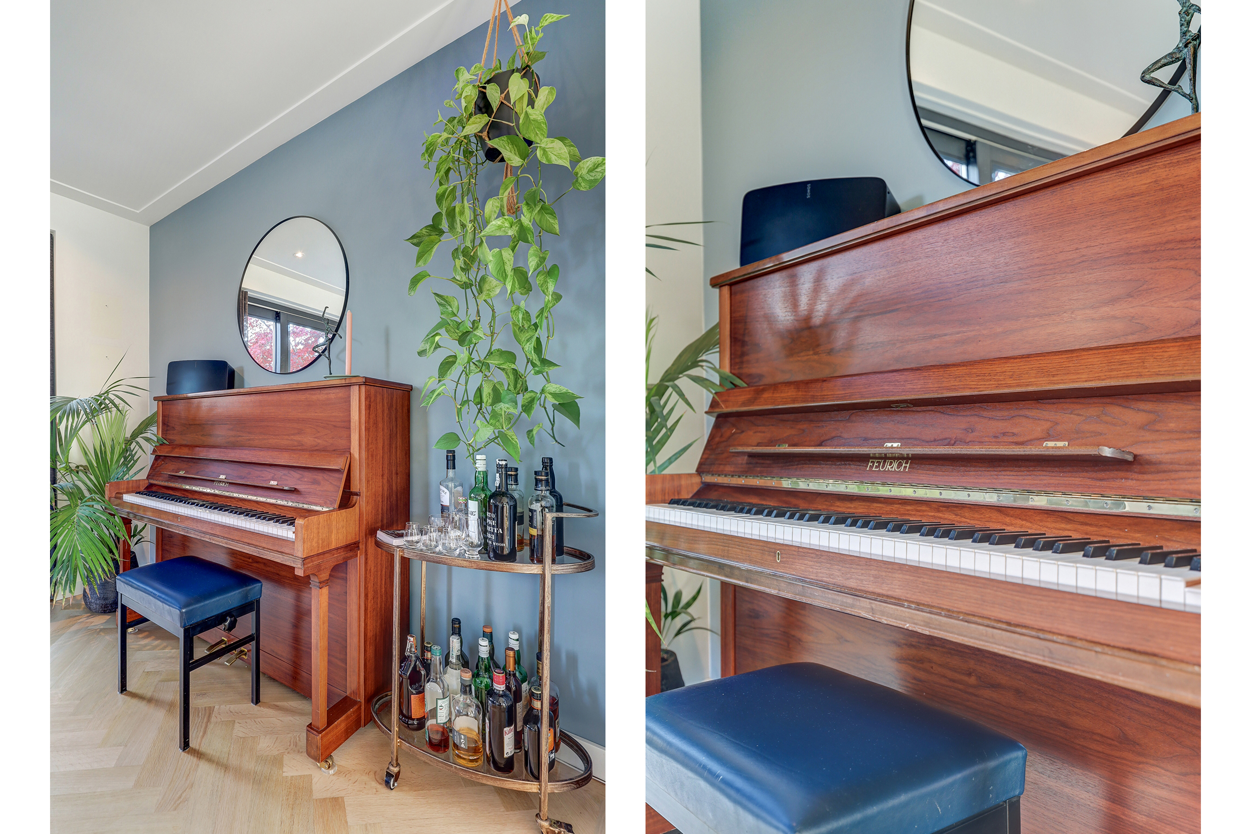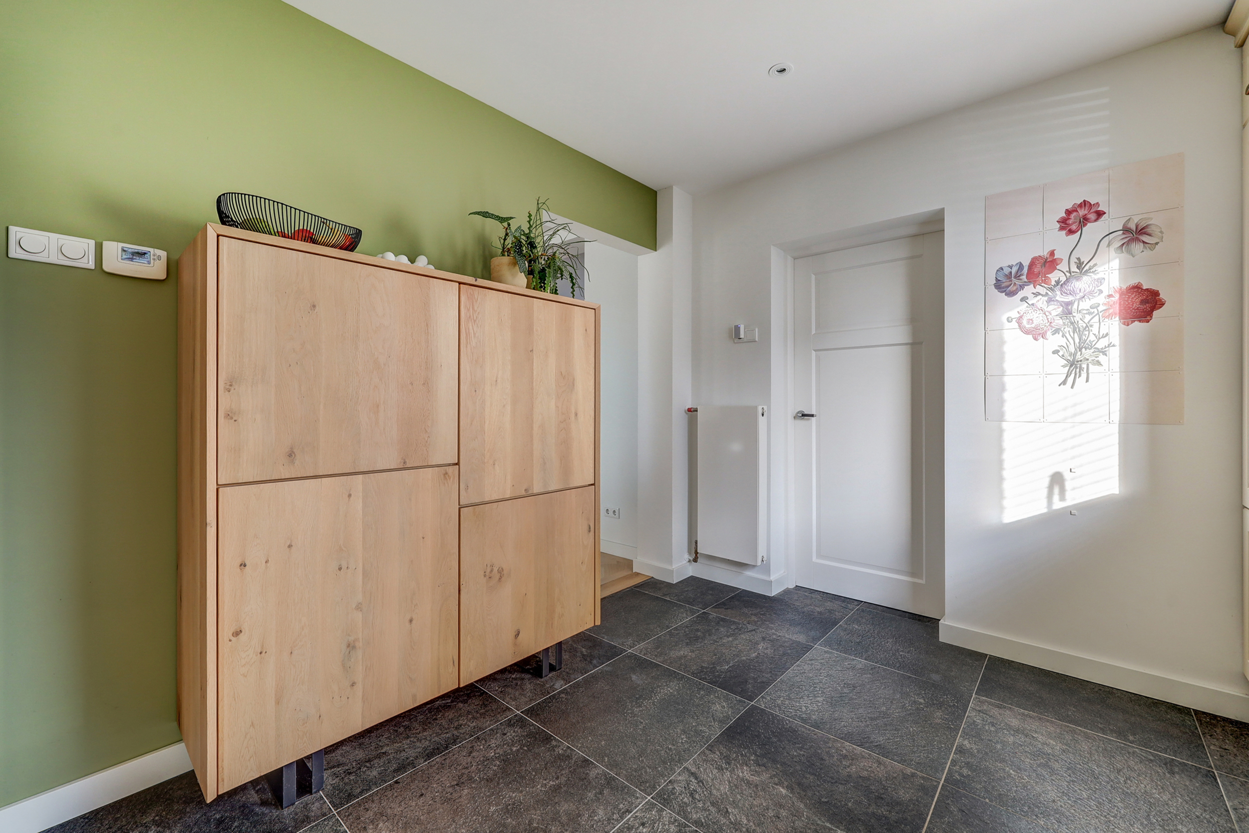 De bijkeuken biedt volop praktische mogelijkheden. Hier bevinden zich de aansluitingen voor de wasmachine, een kastenwand en een extra deur naar de achtertuin.