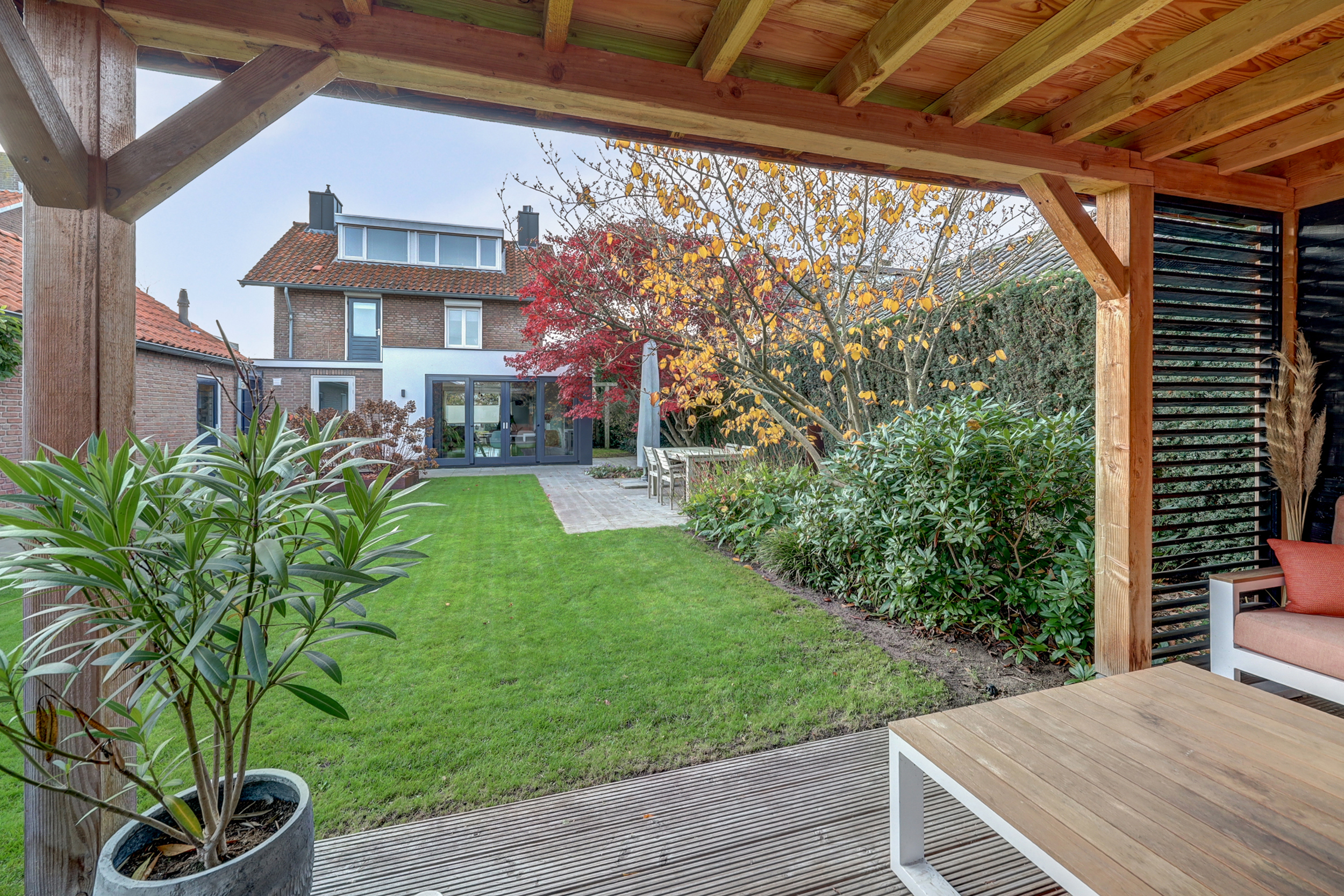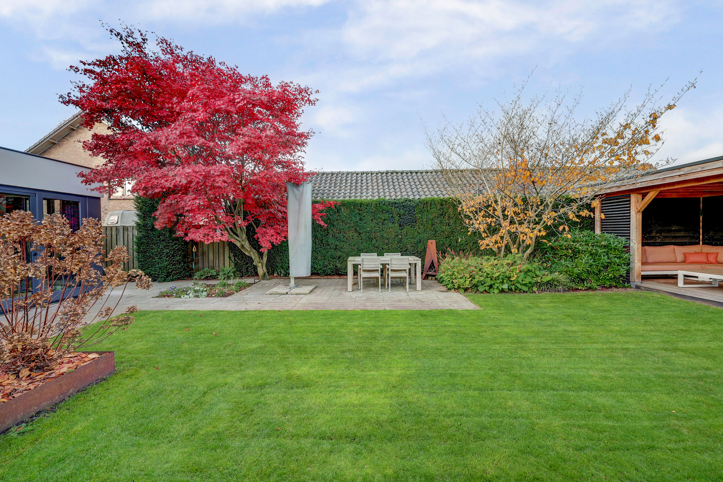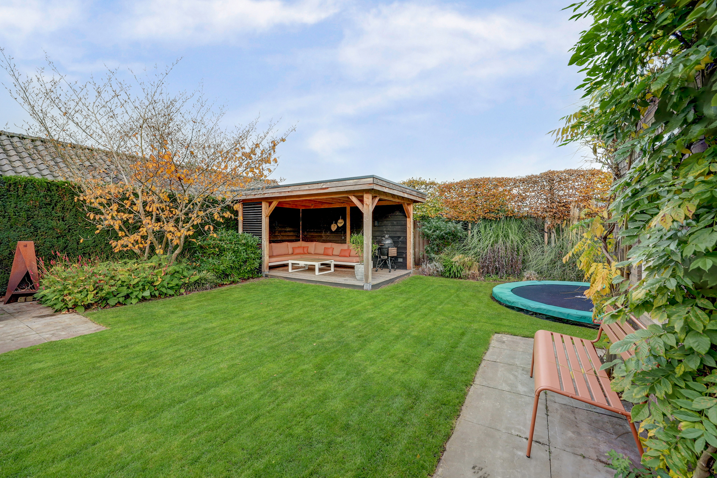 De achtertuin is een absoluut hoogtepunt van deze woning. Deze reikt uitzonderlijk ver naar achteren en biedt daardoor veel vrijheid, privacy en gebruiksmogelijkheden. Het enorme gazon, de terrassen, de overkapping met zithoek en de volwassen beplanting vormen samen een heerlijke buitenruimte die voor ieder gezinslid iets te bieden heeft. Daarnaast is de tuin voorzien van een grondwaterpomp met sproei-installatie, ideaal voor het eenvoudig en duurzaam besproeien van het gazon en de beplanting. Aan de rechterzijde van de woning staan de vrijstaande garage en de berging.