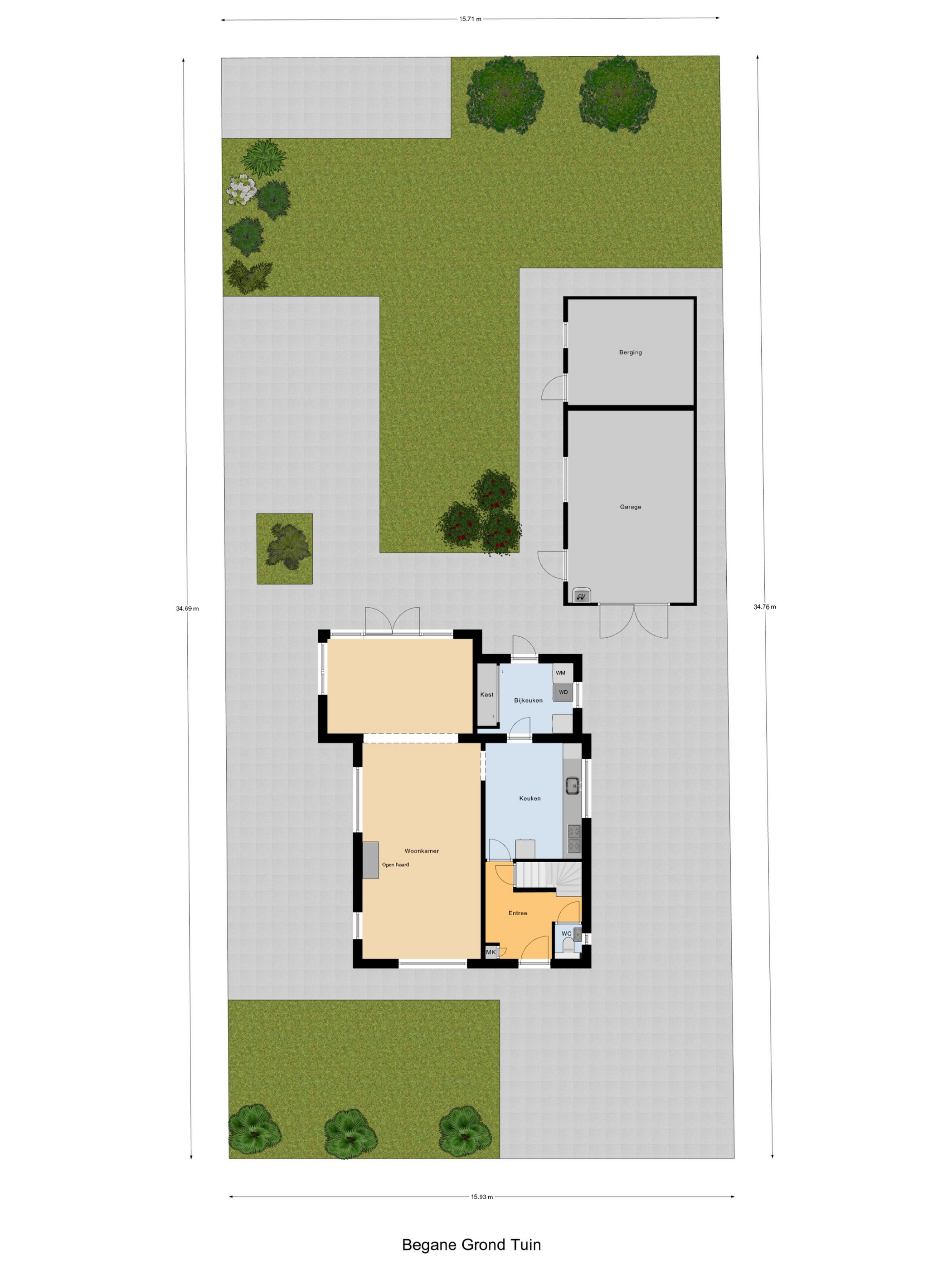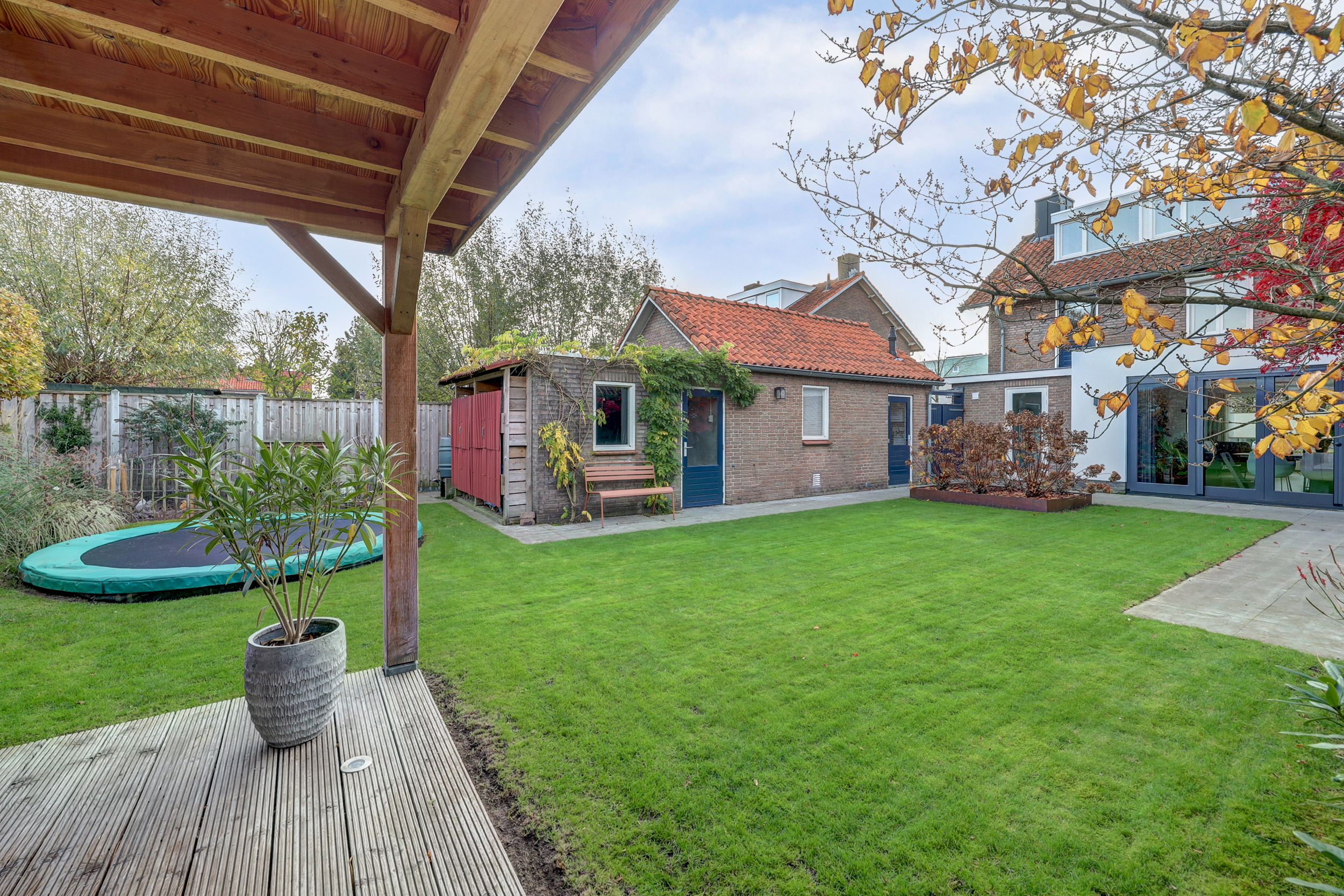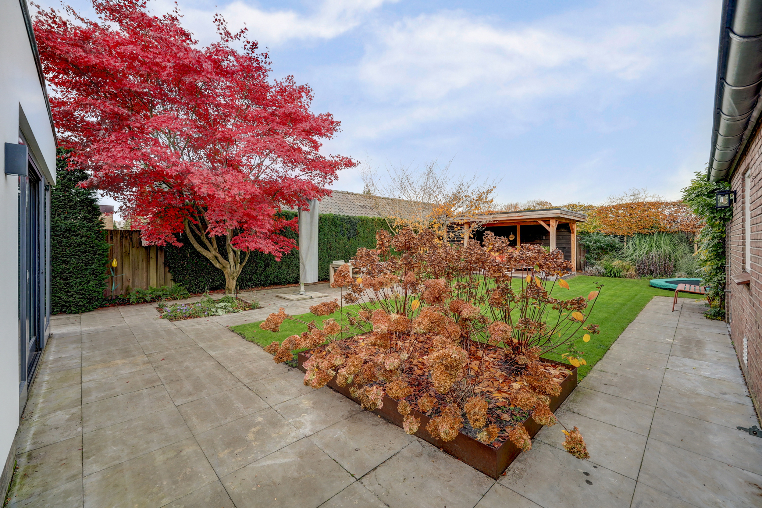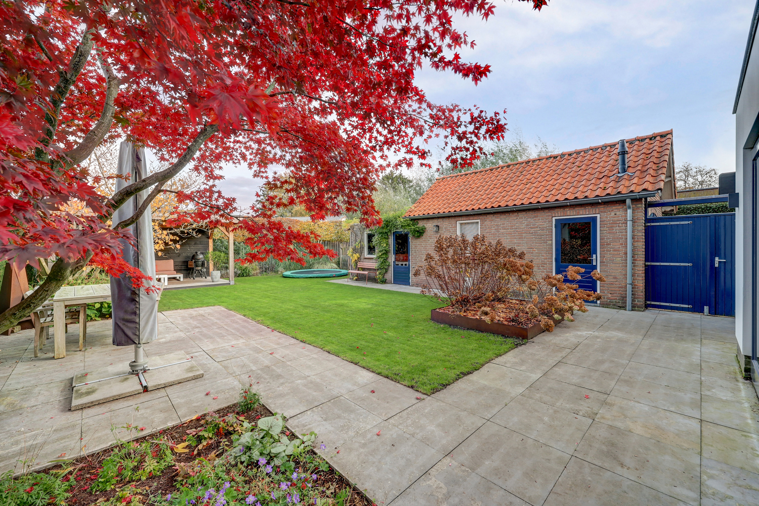 De achtertuin is een absoluut hoogtepunt van deze woning. Deze reikt uitzonderlijk ver naar achteren en biedt daardoor veel vrijheid, privacy en gebruiksmogelijkheden. Het enorme gazon, de terrassen, de overkapping met zithoek en de volwassen beplanting vormen samen een heerlijke buitenruimte die voor ieder gezinslid iets te bieden heeft. Daarnaast is de tuin voorzien van een grondwaterpomp met sproei-installatie, ideaal voor het eenvoudig en duurzaam besproeien van het gazon en de beplanting. Aan de rechterzijde van de woning staan de vrijstaande garage en de berging.