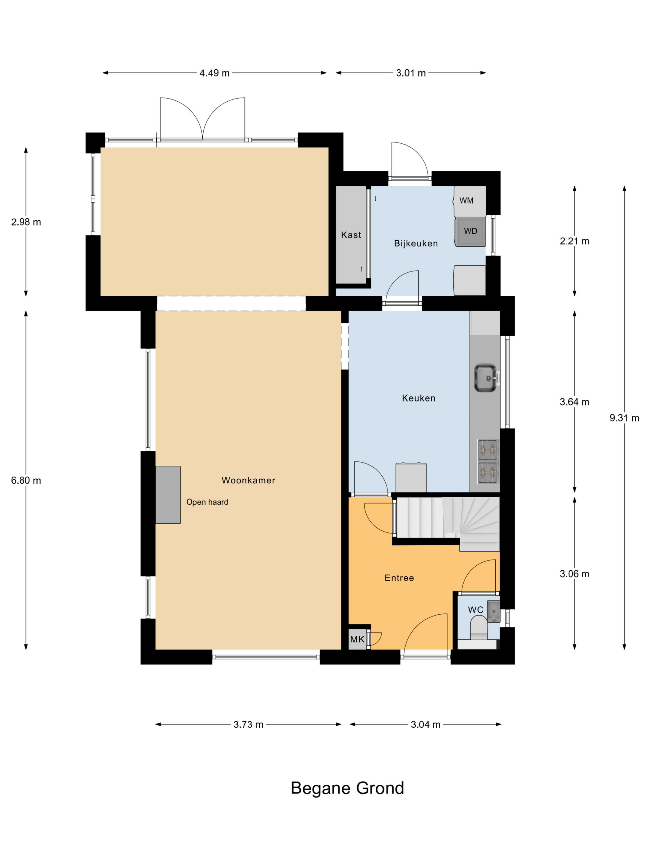 - Bijkeuken met wasmachineaansluitingen en toegang tot de tuin;