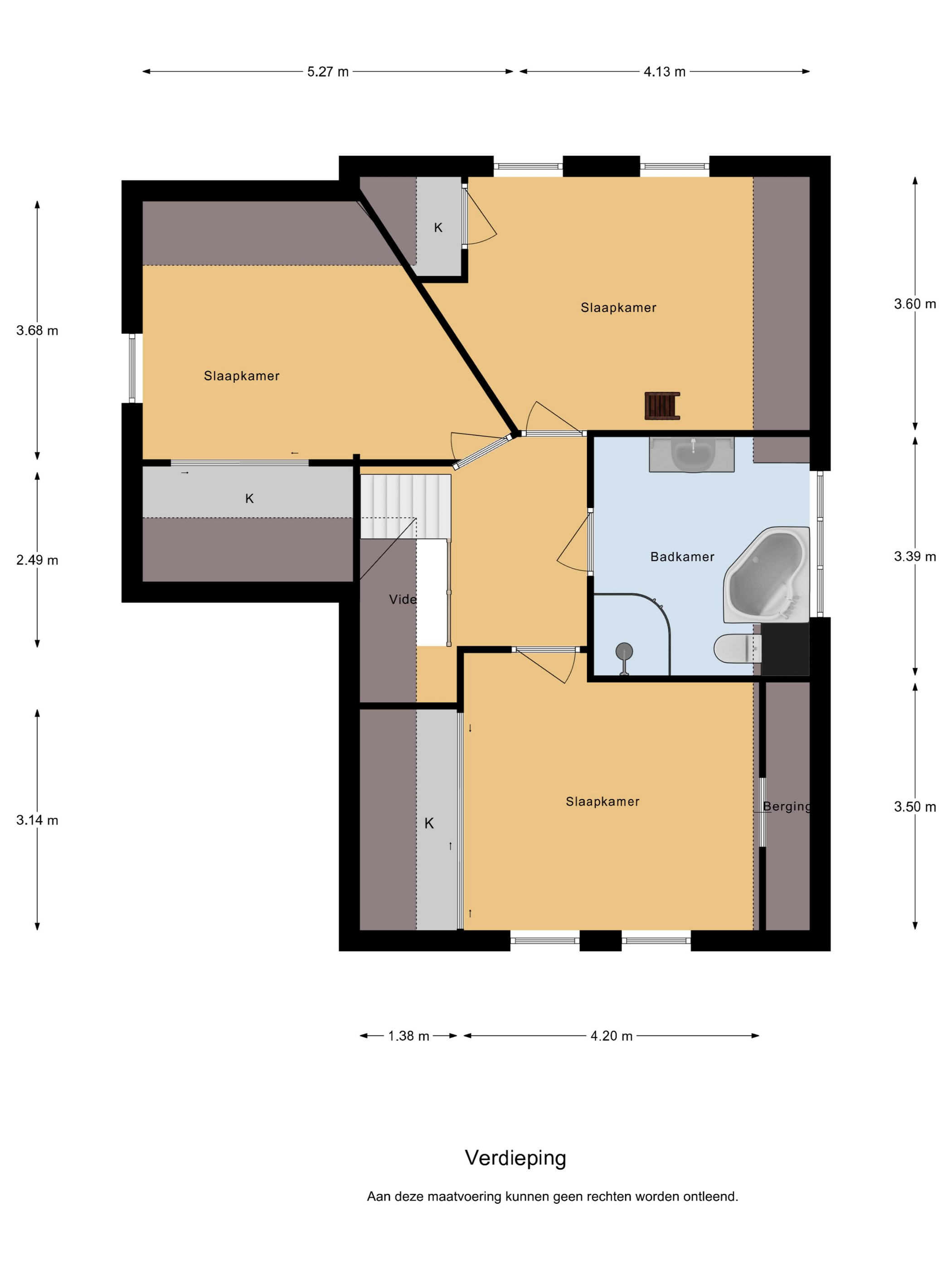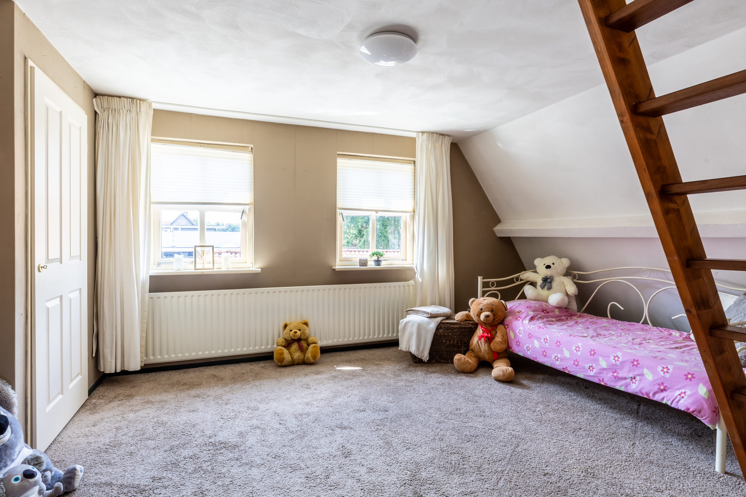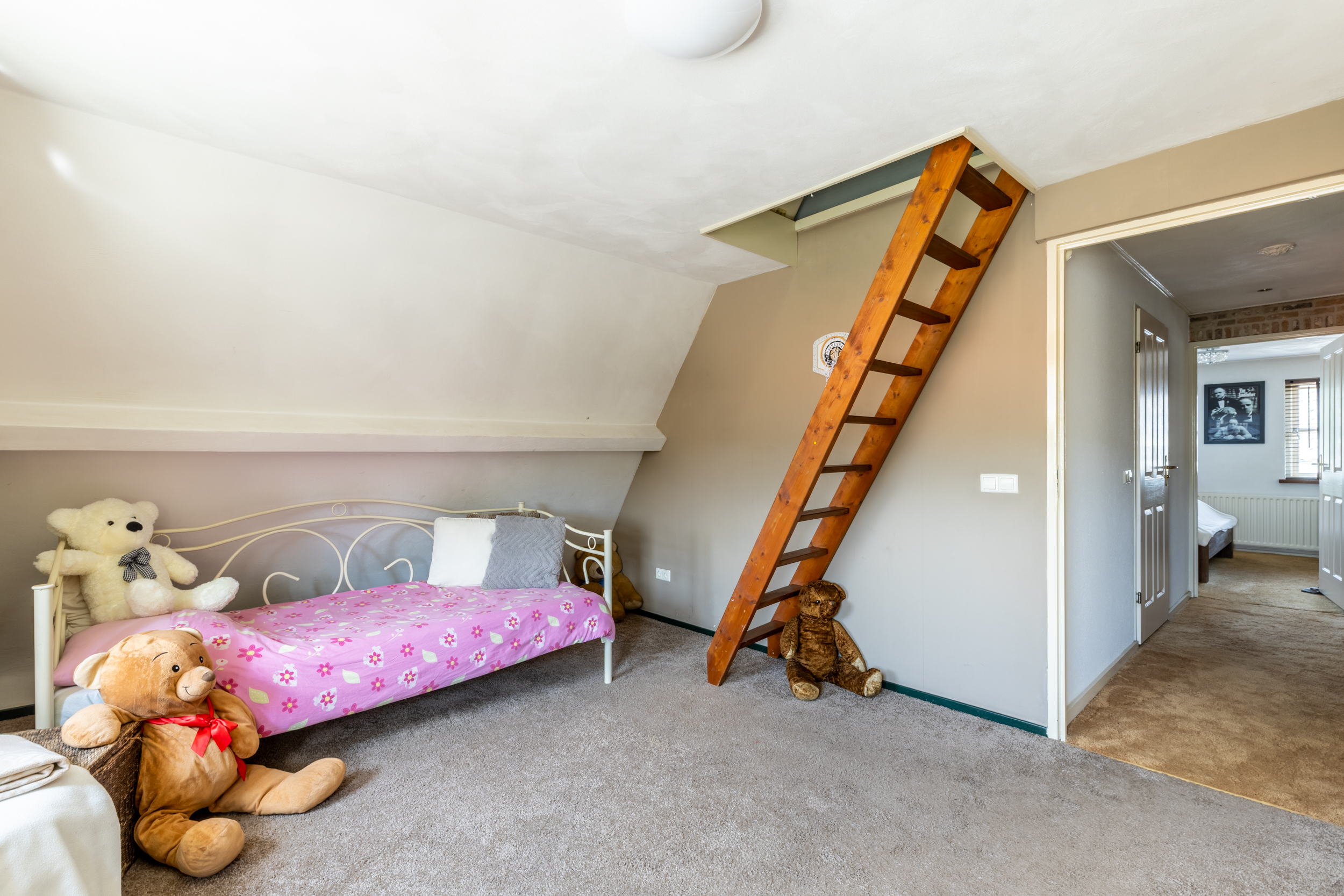 De tweede verdieping bereik je via een trap in de slaapkamer aan de achterzijde. Hier bevindt zich een zolder van maar liefst 10 meter lang. Deze ruimte leent zich uitstekend als speel- of bergzolder voor seizoensgebonden spullen. Denk hierbij aan vakantiekoffers, kerstversiering of andere grote items die je niet dagelijks nodig hebt. Zo blijft de rest van het huis netjes opgeruimd.