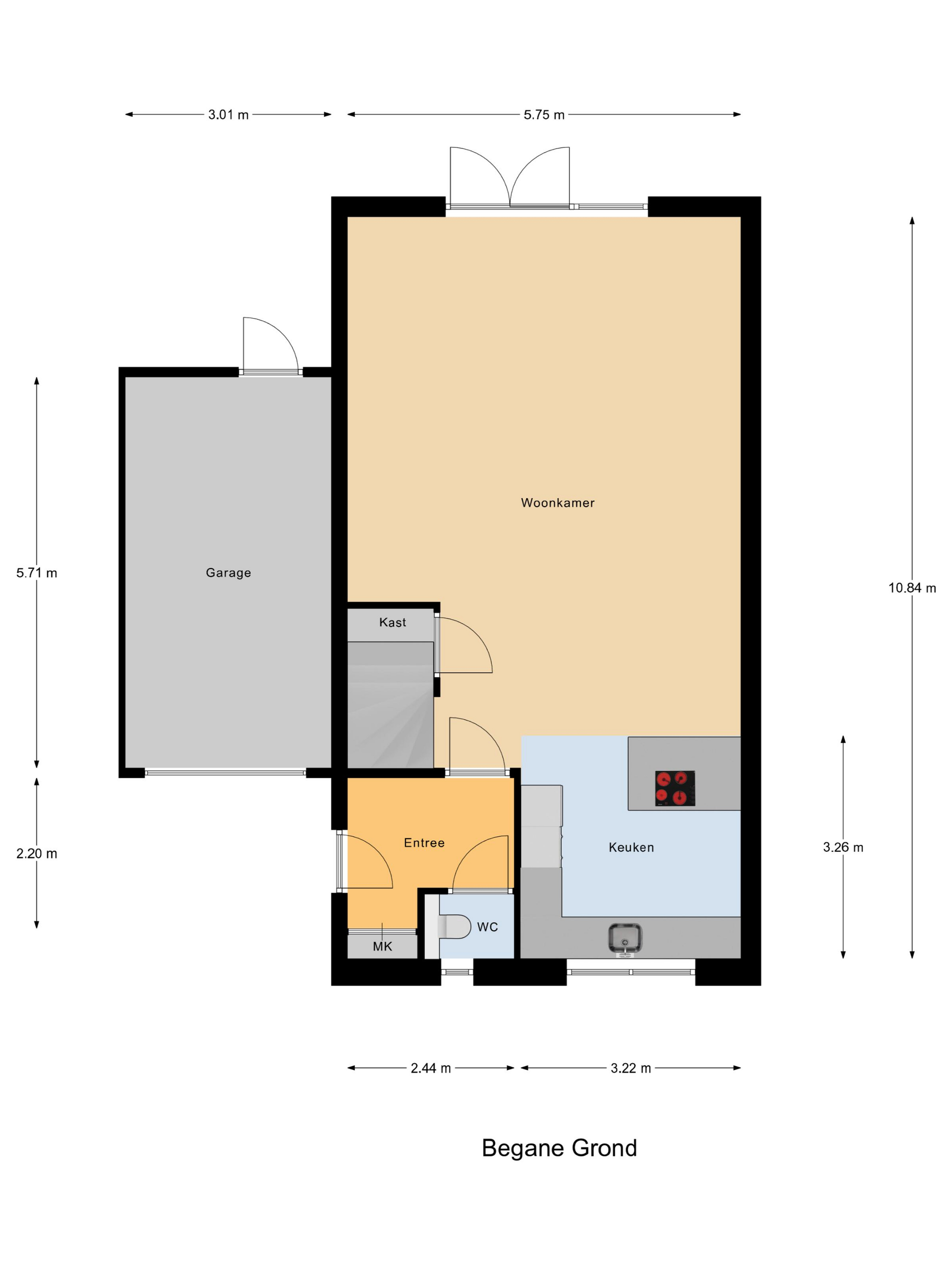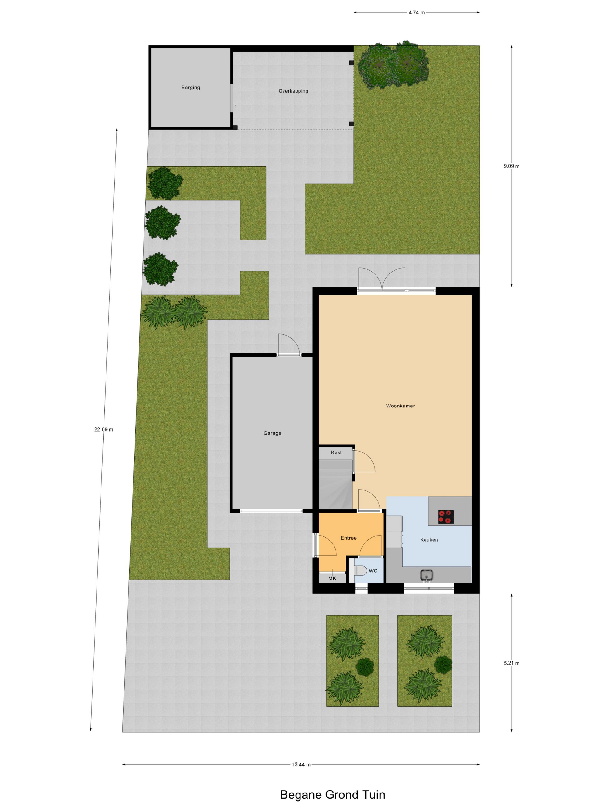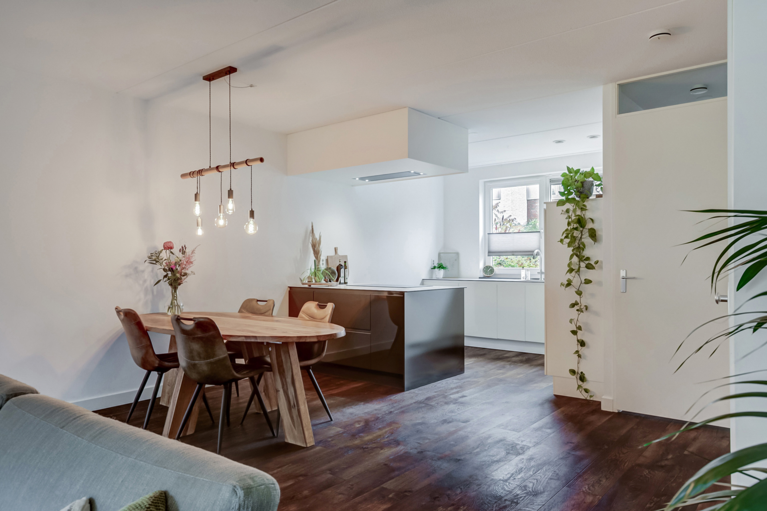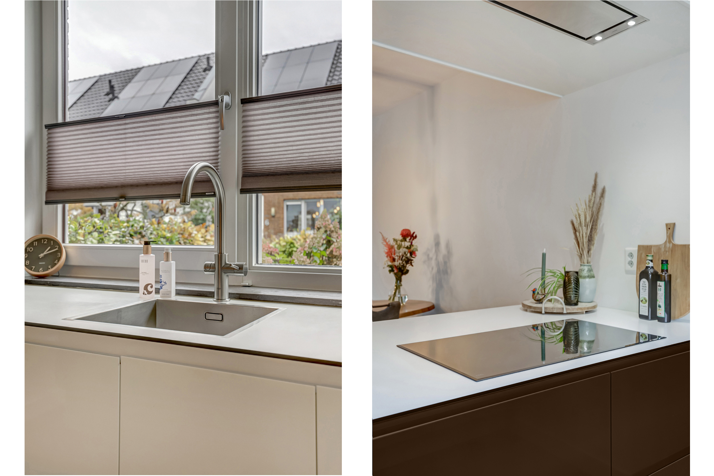 Parkeer de auto gemakkelijk op je eigen oprit en betreed de woning via de voordeur. In de entreehal vind je de meterkast, het toilet en toegang tot de woonkamer. De woonkamer is heerlijk ruim, mede dankzij de royale uitbouw waardoor je hier volop extra leefruimte hebt voor een gezellige zithoek en eettafel. Via de dubbele tuindeuren loop je zo de zonnige achtertuin in, ideaal voor een zomerse dag. De praktische trapkast biedt bovendien extra bergruimte. Aan de voorzijde van de woning bevindt zich de moderne keuken, uitgevoerd in een L-opstelling met een kookschiereiland met inductieplaat. De keuken is voorzien van alle gemakken, waaronder een vaatwasser, combi-oven, koelkast, vriezer en een kokend water kraan. De gehele begane grond is afgewerkt met vloerverwarming.