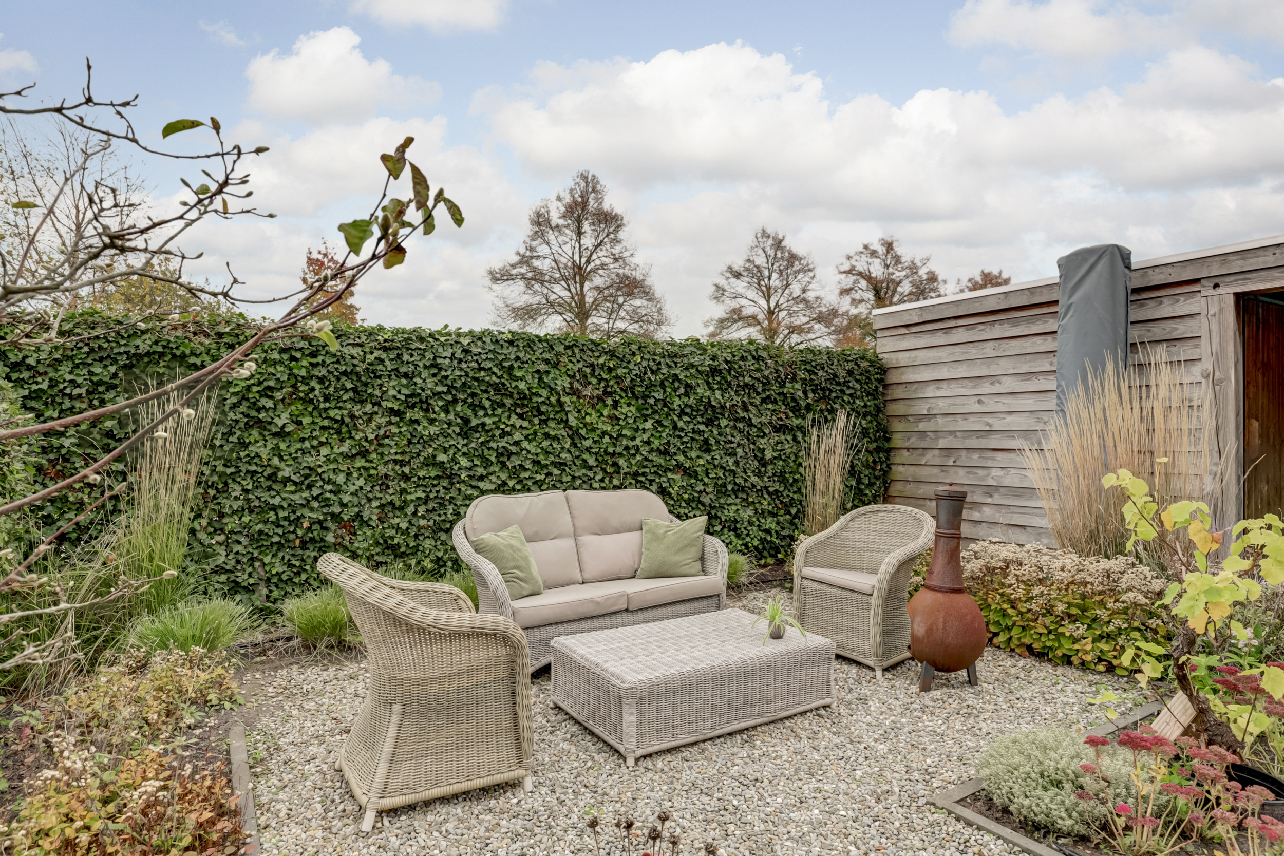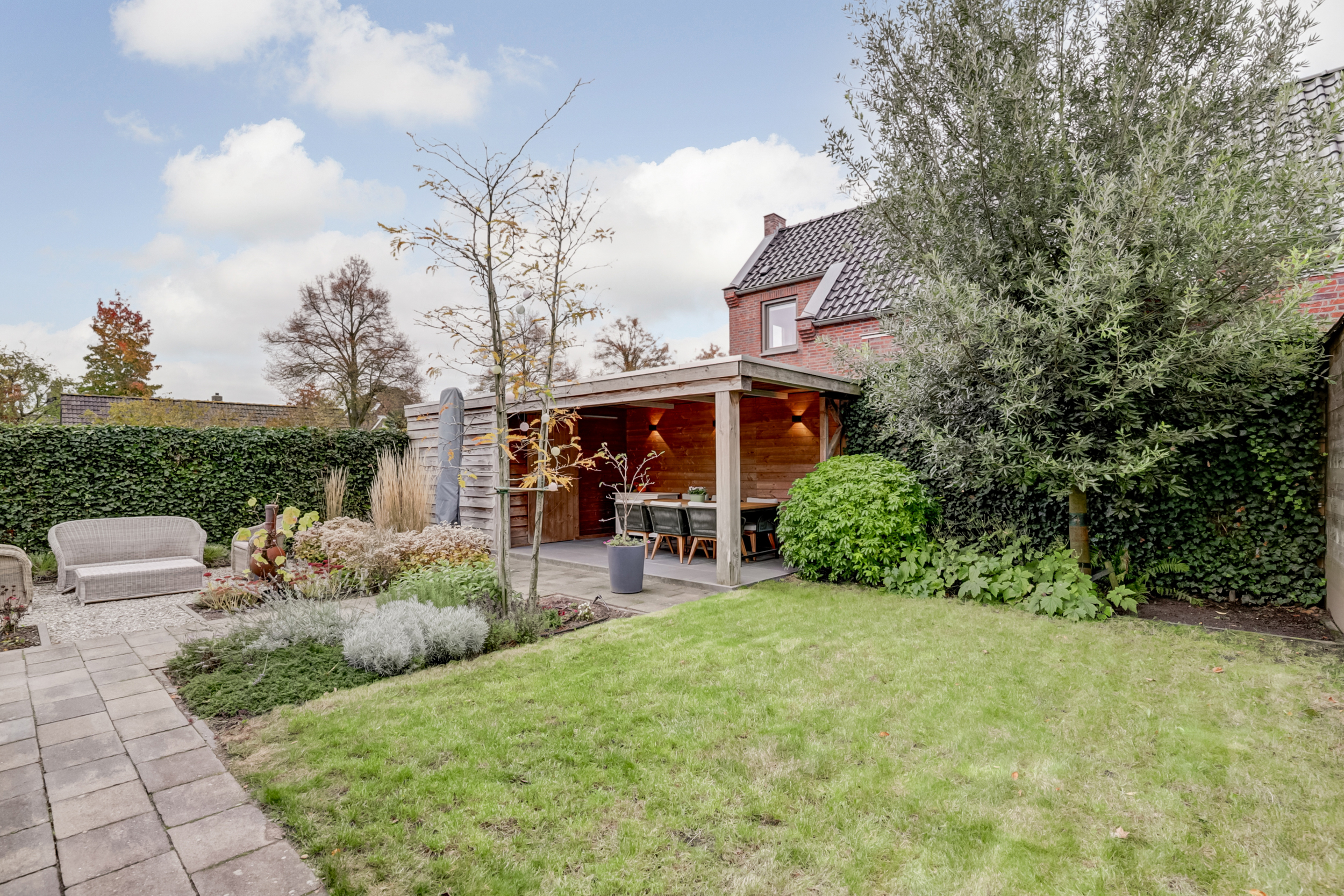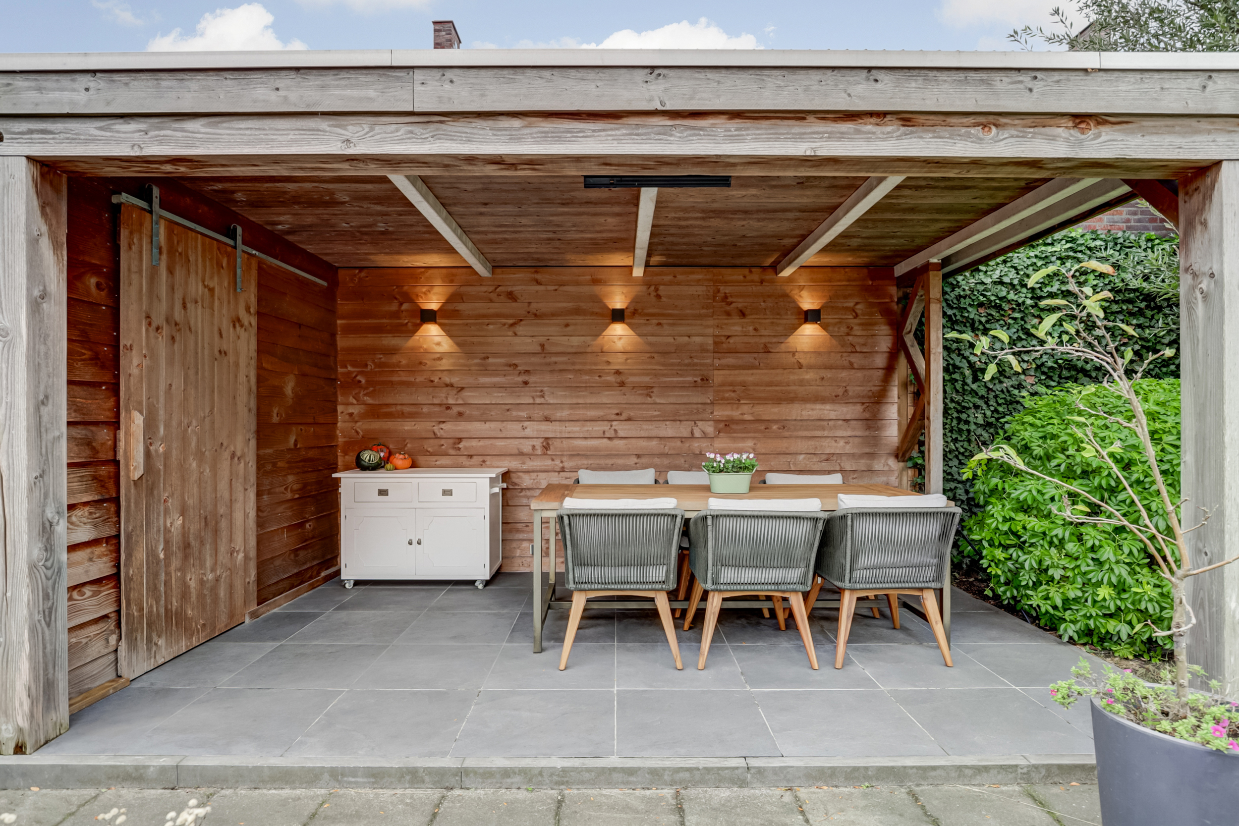 De achtertuin is een groot pluspunt van de woning. Met een breedte van circa 10 meter en een diepte van 9 meter is dit een heerlijke plek om te ontspannen en te genieten van het buitenleven. Dankzij de ligging op het zuiden profiteer je hier de hele dag van de zon. Er is in de tuin ruimte voor meerdere zitplekken. Zo kun je bijvoorbeeld onder de grote overkapping een comfortabele loungeset plaatsen en aan de zijkant van de tuin een heerlijke tafel om buiten te eten tijdens de zomermaanden. De berging zorgt voor praktische opbergruimte voor tuingereedschap. Aan de zijkant van de woning is bovendien extra tuinruimte, ideaal als speelplek voor kinderen. Via de achterom is de tuin ook gemakkelijk bereikbaar.