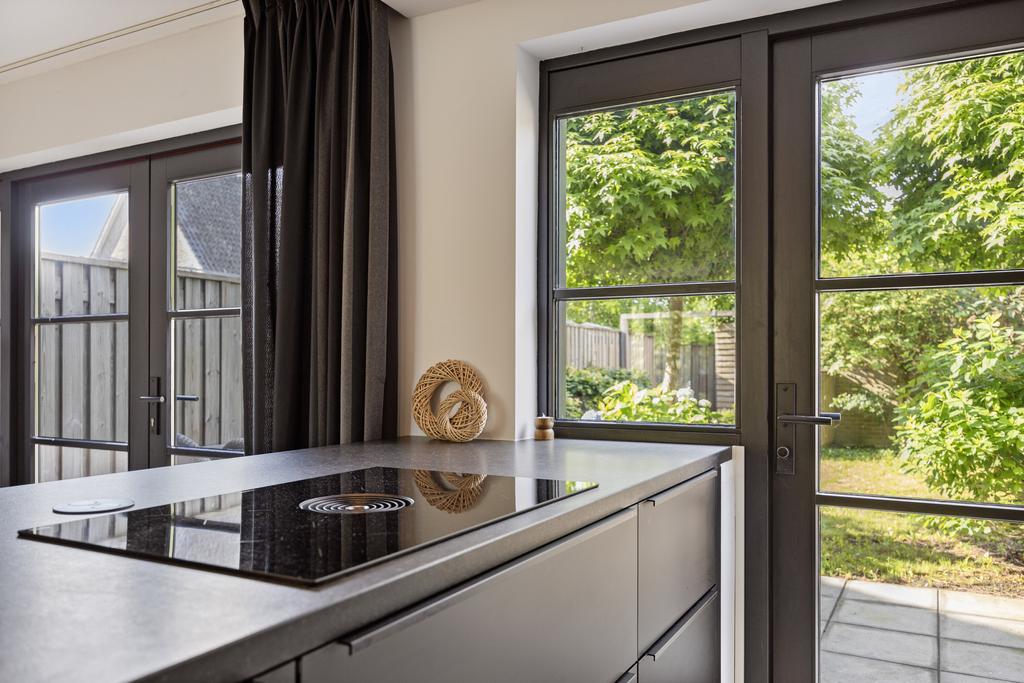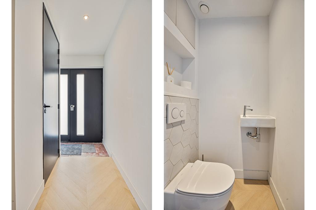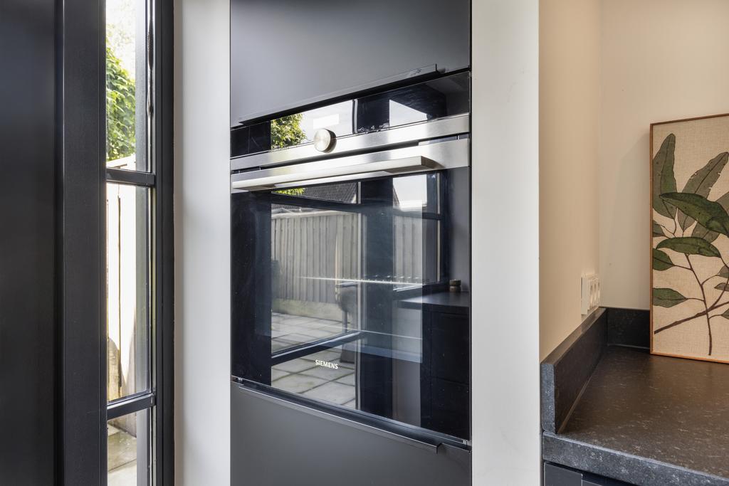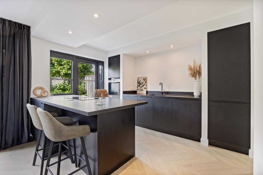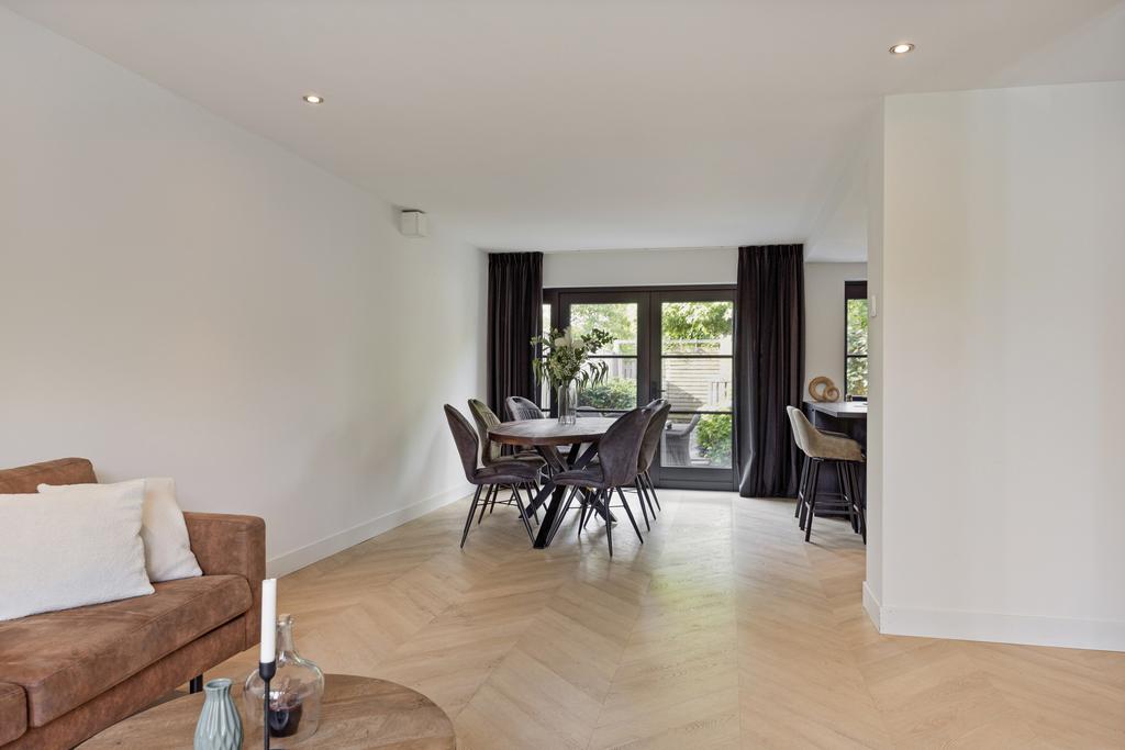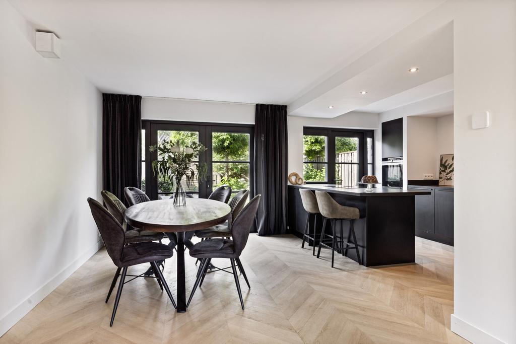 Via de voordeur treffen we de ruime aankomsthal welke een warme entourage biedt doormiddel van de aanwezig vloerverwarming over de gehele begane grond. Dit zorgt voor een fijne combinatie met de pvc visgraatvloer welke slijtvast is en de warmte goed kan geleiden. De entree verschaft toegang tot het moderne toilet met hangcloset en fonteintje, de trapopgang naar de eerste verdieping, de vernieuwde meterkast en de praktische trapkast met de regulering van de vloerverwarming. De living is royaal en beschikt over genoeg ruimte voor een ruime hoekbank, eettafel met zes stoelen en diverse kasten. De inbouwspots zijn doormiddel van een domotica systeem bedienbaar en dragen met het schilder- en stucwerk bij aan een sfeervolle afwerking. Aan de achterzijde treffen we de vrijwel nieuwe keuken uit 2021 voorzien van een kookeiland en een gezellige eetbar. De keuken is uitgerust met moderne inbouwapparatuur zoals een koel- vriescombinatie, vaatwasser, kookeiland, natuurstenen werkblad en oven. De woning is volledig voorzien van dubbelglas. Openslaande deuren in de achtergevel zorgen ervoor dat men de mogelijkheid heeft om het buitenleven naar binnen te halen.