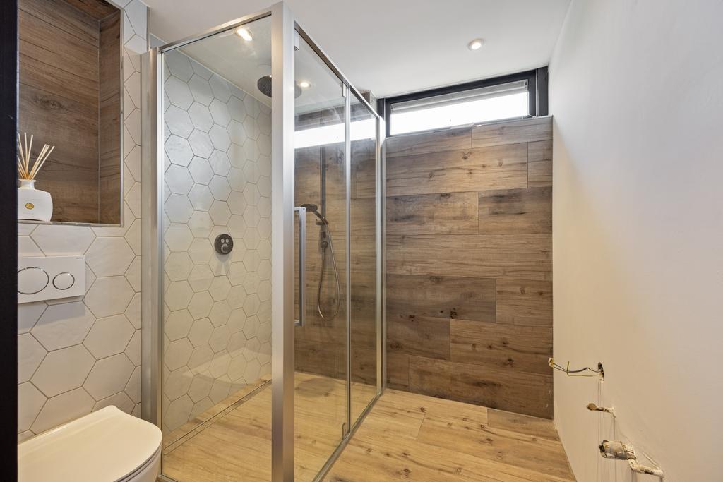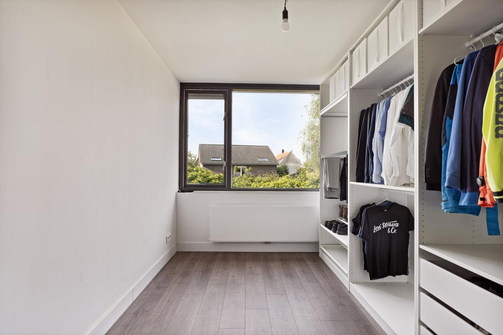 De trapopgang naar de eerste verdieping geeft toegang tot de overloop, hier zijn 3 slaapkamer en 1 badkamer bereikbaar. De eerste kamer bevindt zich aan de achterzijde van de woning en is momenteel ingedeeld als inloopkast. Deze ruimte is groot genoeg om in te delen als slaapkamer. Daarnaast bevindt zich de hoofdslaapkamer welke net zoals de eerste slaapkamer is uitgerust met elektrische rolluiken. De kamer is ruim te noemen en biedt voldoende plaats voor een tweepersoonsbed, nachtkastjes en een kledingkast. De derde slaapkamer bevindt zich aan de voorzijde van de woning en is evenals van een goed formaat. Daarnaast is de badkamer uit 2021 gelegen welke in een neutrale kleurstelling is uitgevoerd. De badkamer is voorzien van modern tegelwerk, een royale inloopdouche, hangcloset, mechanische ventilatie en inbouwspots.