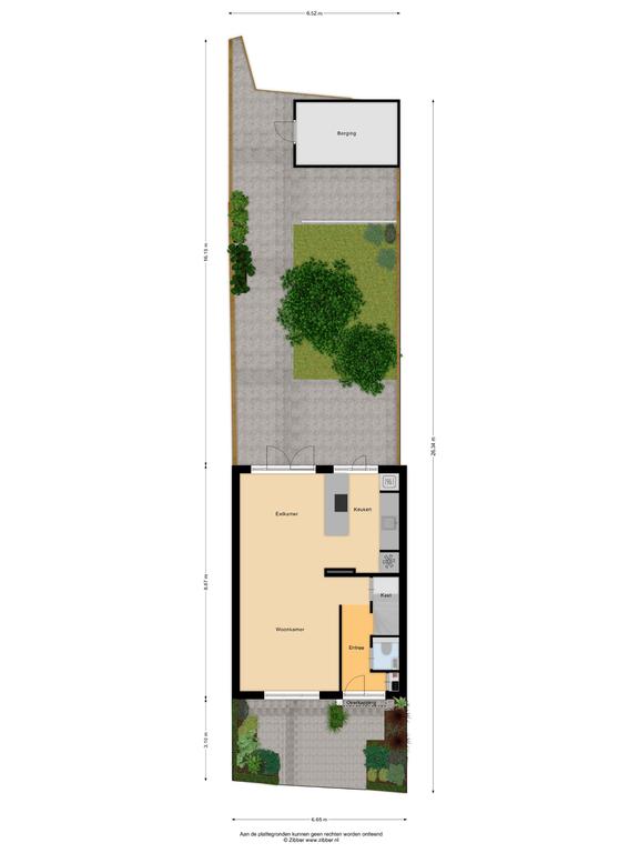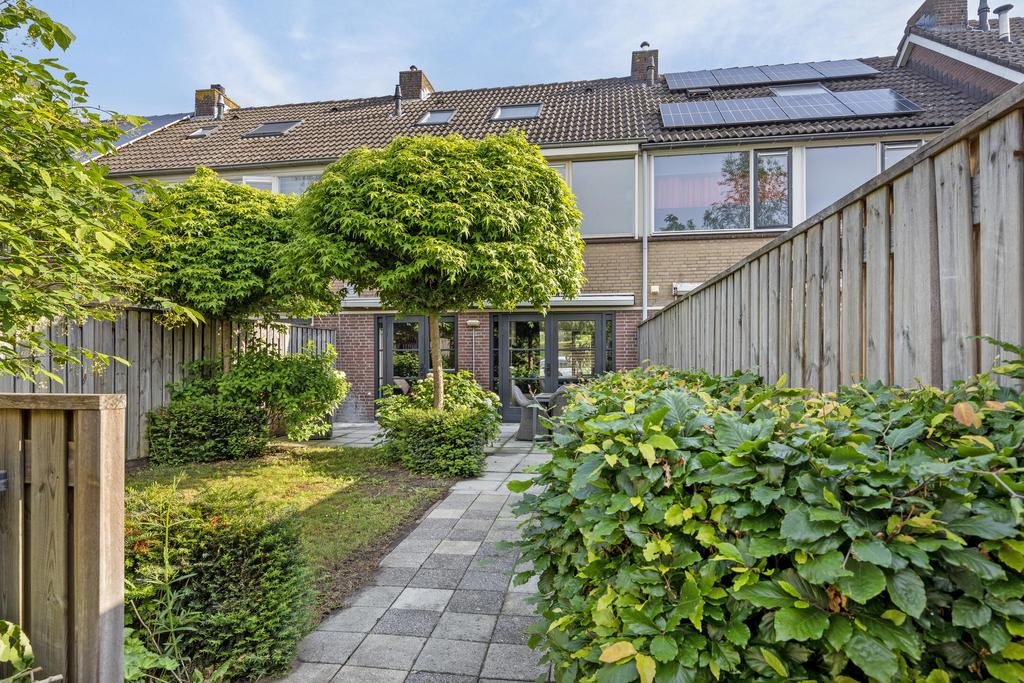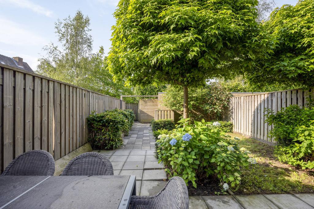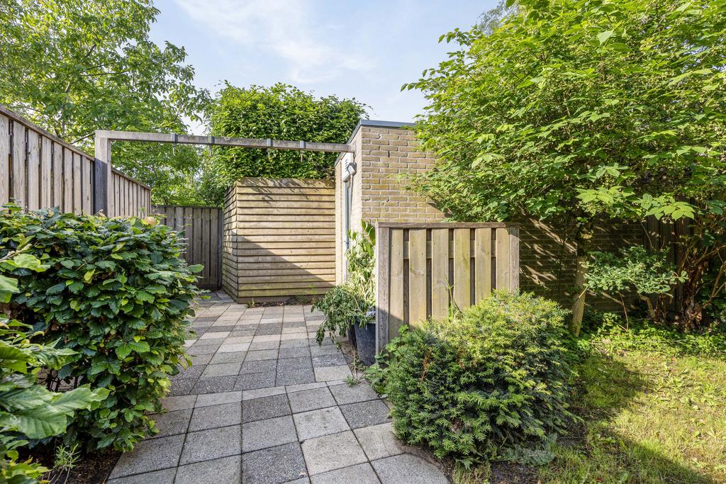 De achtertuin is verassend diep en geeft een gevoel van rust en ruimte. Met de oriëntatie op het zuiden geniet je hier vooral van de middag- en avondzon waardoor er verschillende terrassen gecreëerd kunnen worden. De berging is achterin de tuin gelegen en bevindt zich naast de achterom. Kortom een fijne achtertuin met een eigen achterom en een goede oriëntatie.