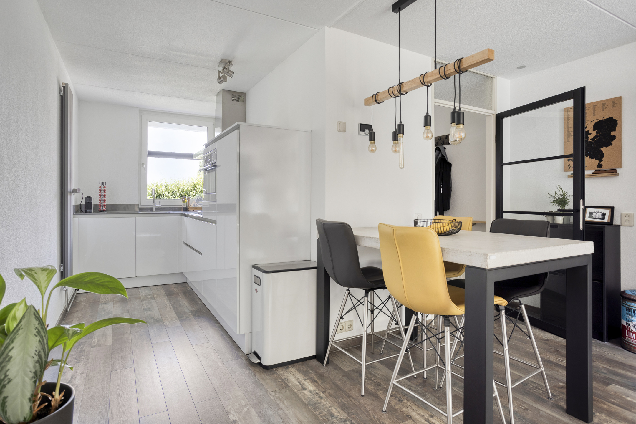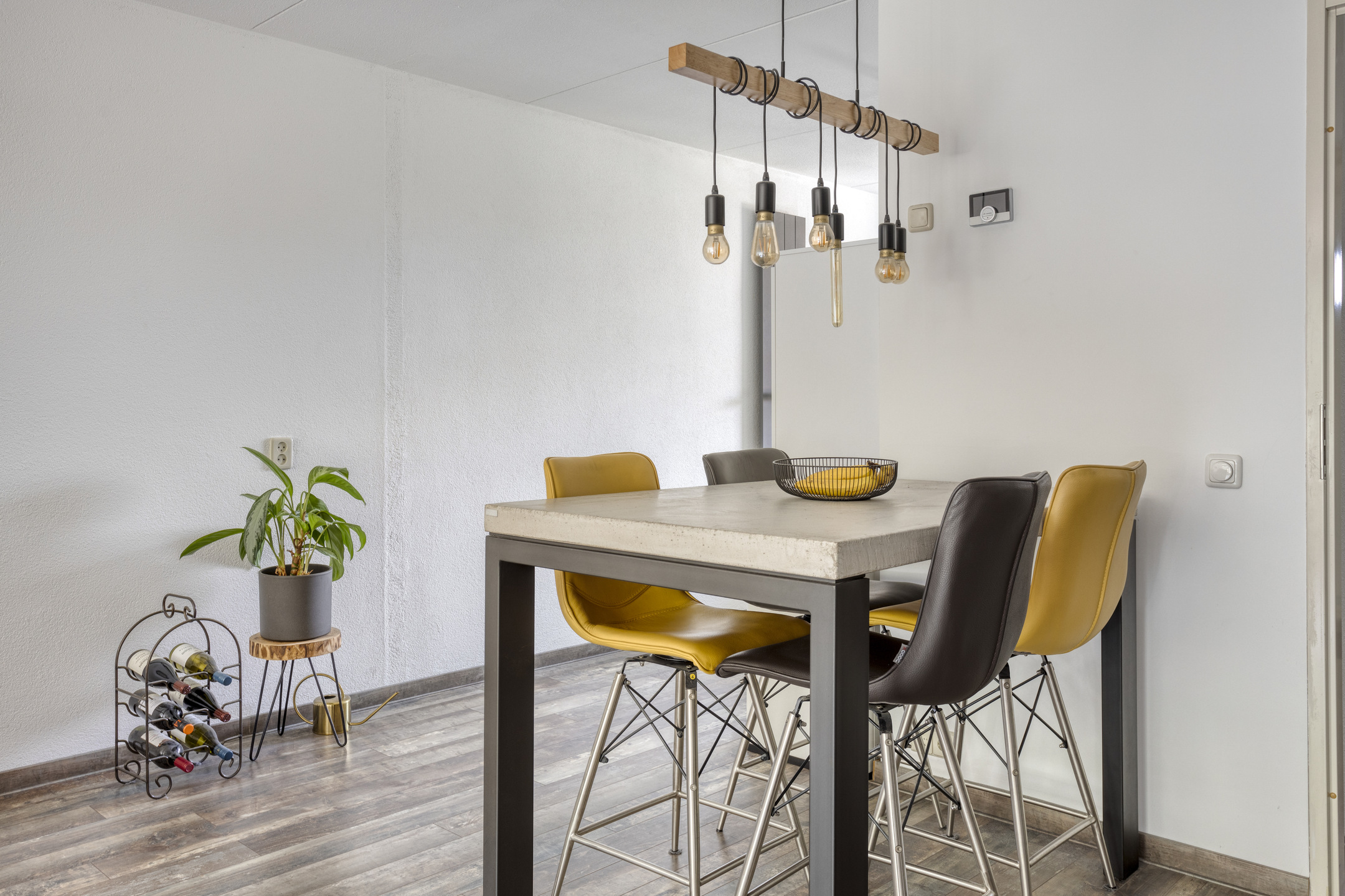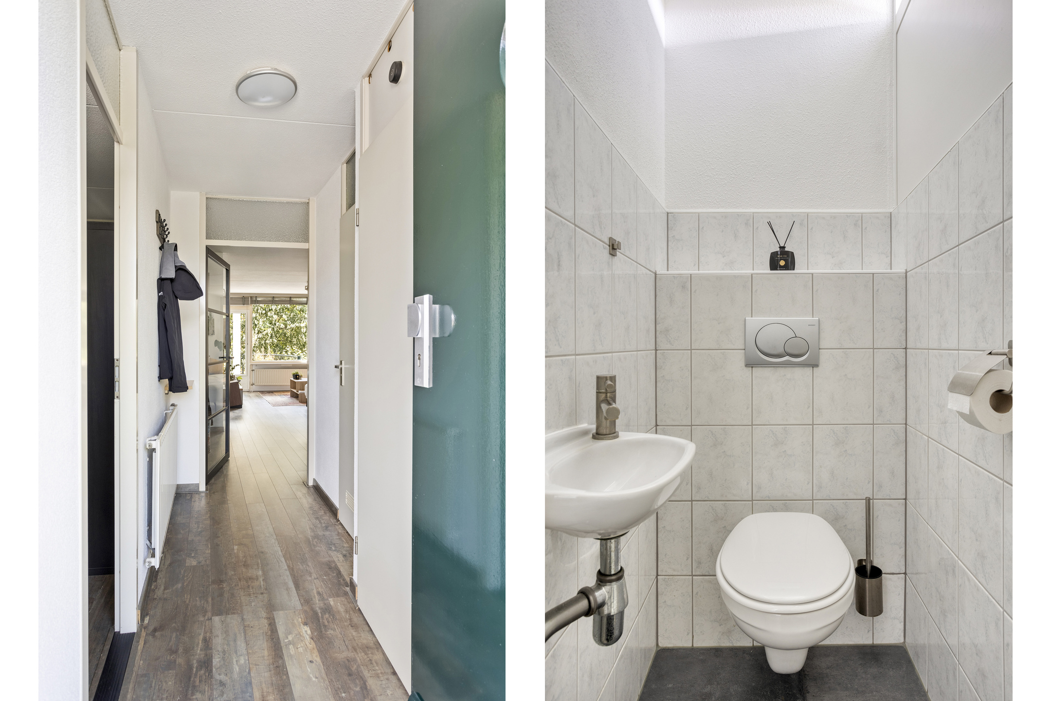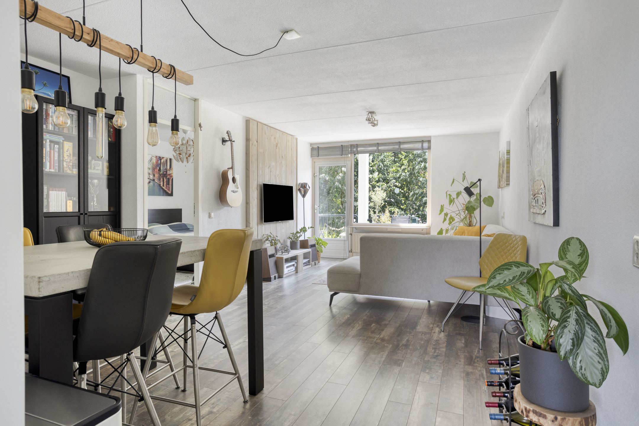 Vanuit de hal heb je toegang tot het toilet met zwevend closet, de meterkast, de 2e slaapkamer en de fijne woonkamer. De woonkamer is, net al de rest van het appartement, keurig afgewerkt en goed onderhouden. De grote raampartij aan de balkonzijde kenmerkt de ruimte. De vloer is voorzien van een nette laminaatvloer en de wanden zijn afgewerkt met spachtelputz.