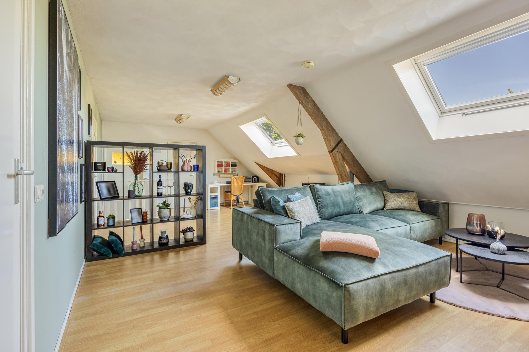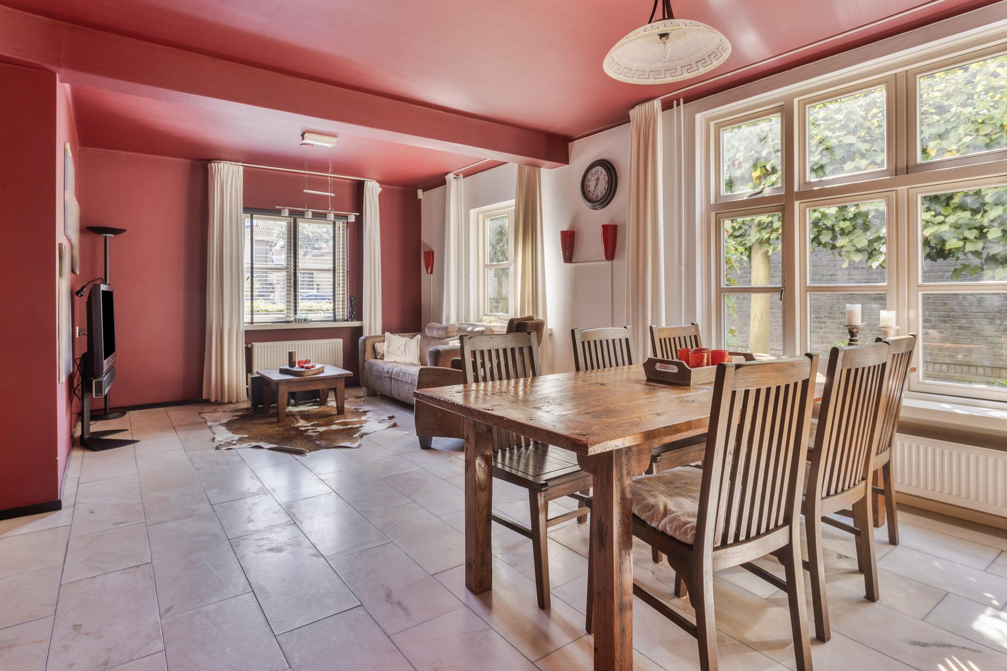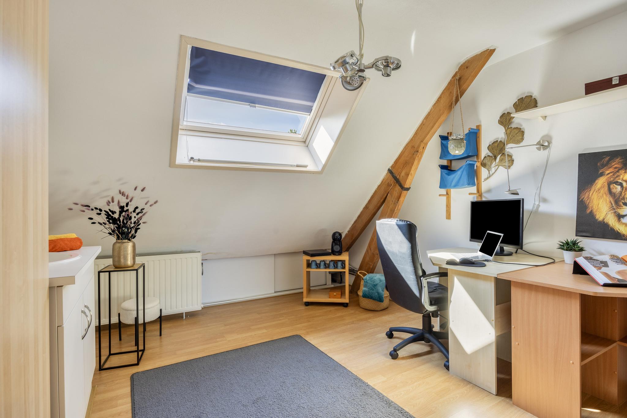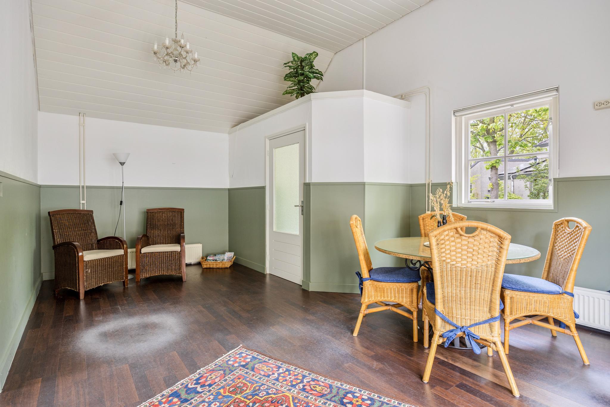 De tweede woonkamer is tuin gericht en is voorzien van een leistenen vloer (met vloerverwarming) en uitgerust met een haard voor de sfeervolle avonden.