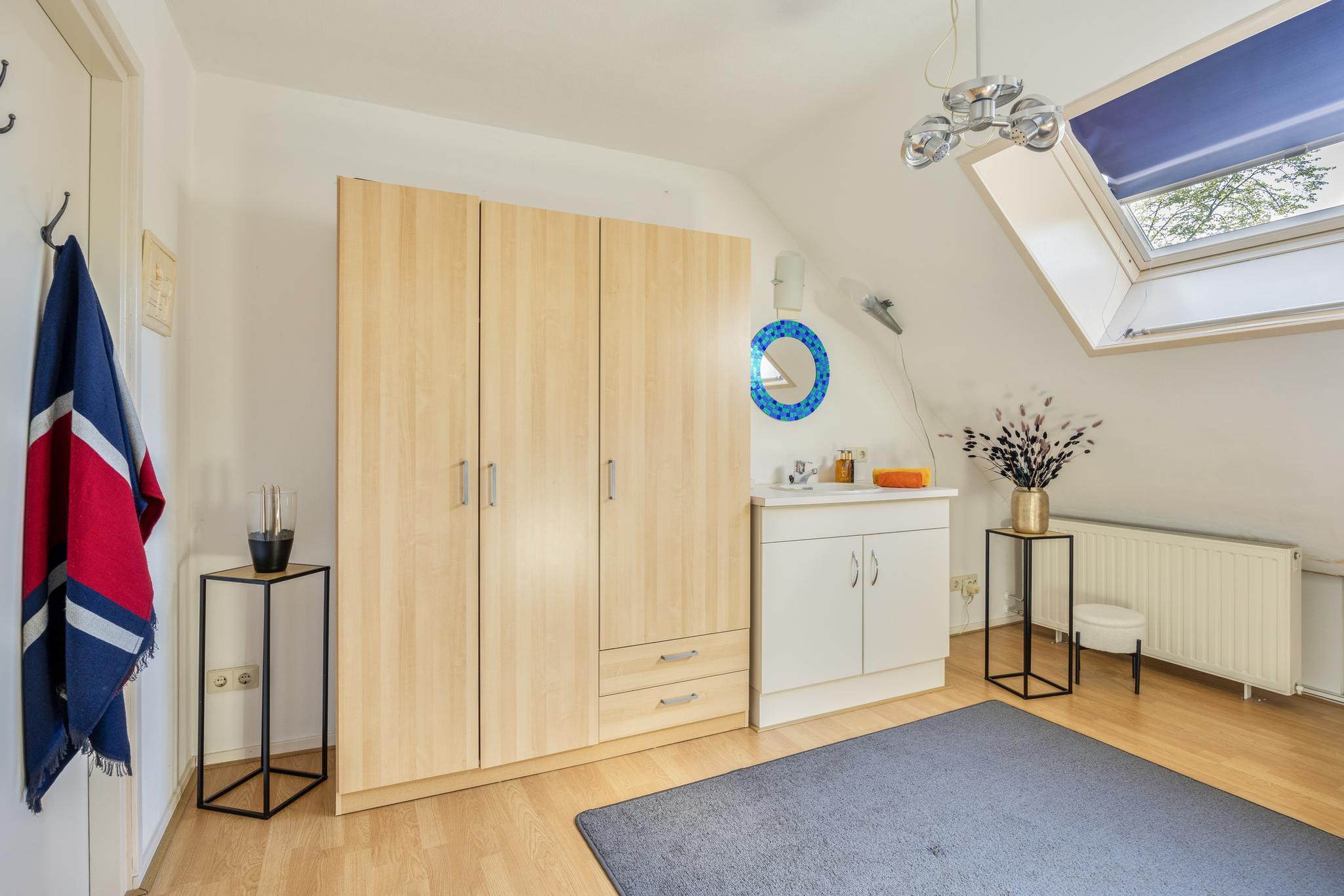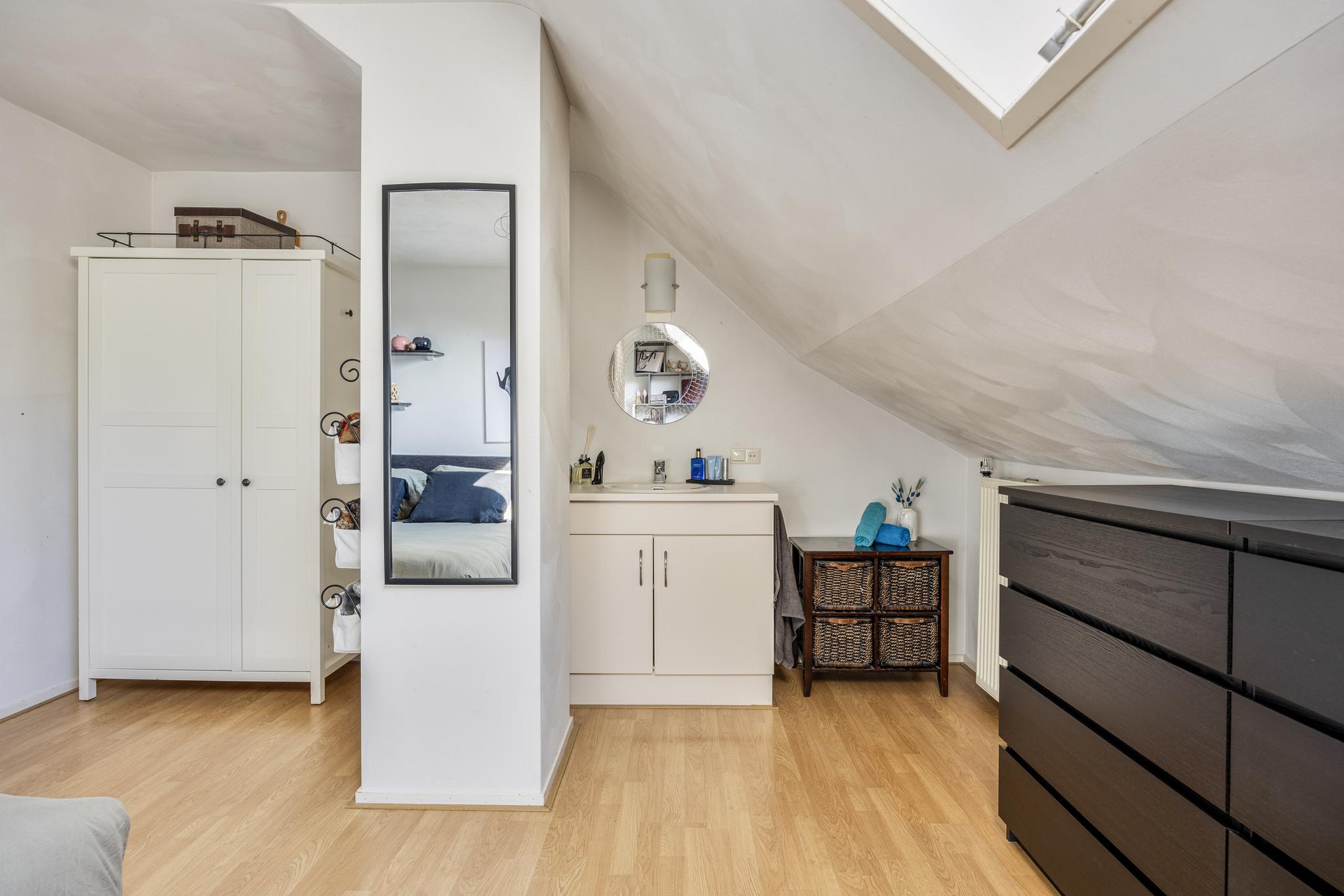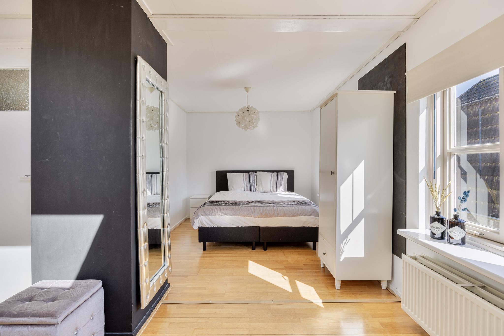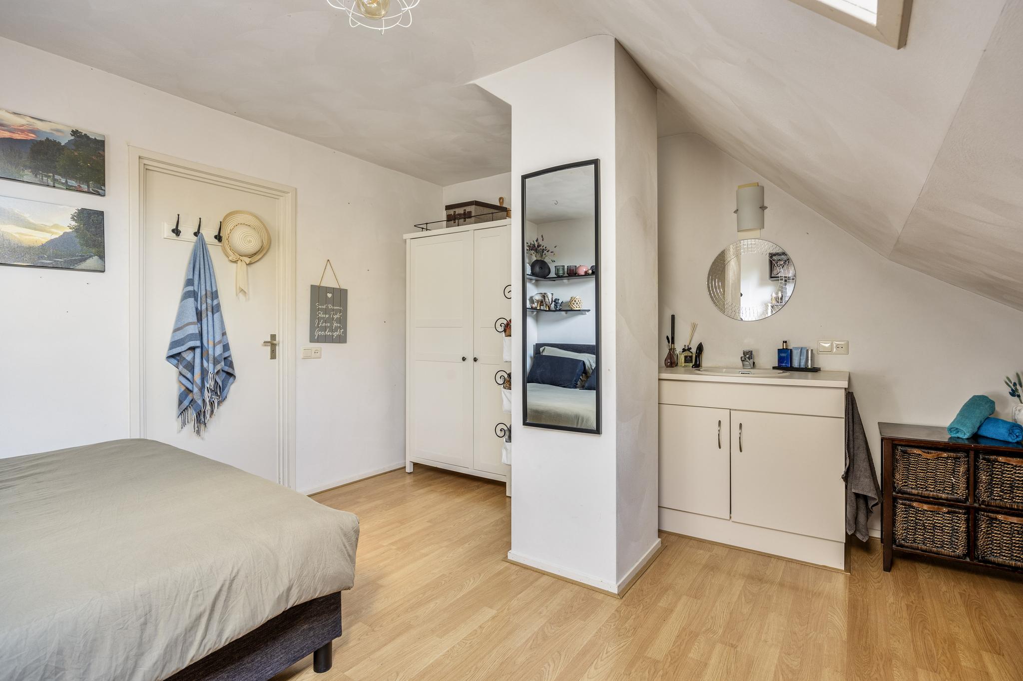 De slaapkamer met aangrenzende badkamer zijn ruim van opzet. Vanuit de slaapkamer is een inloopkast gerealiseerd. De badkamer voorziet in een ligbad, douche en wastafel. De separate toiletruimte is zowel vanaf de hal als badkamer te bereiken.