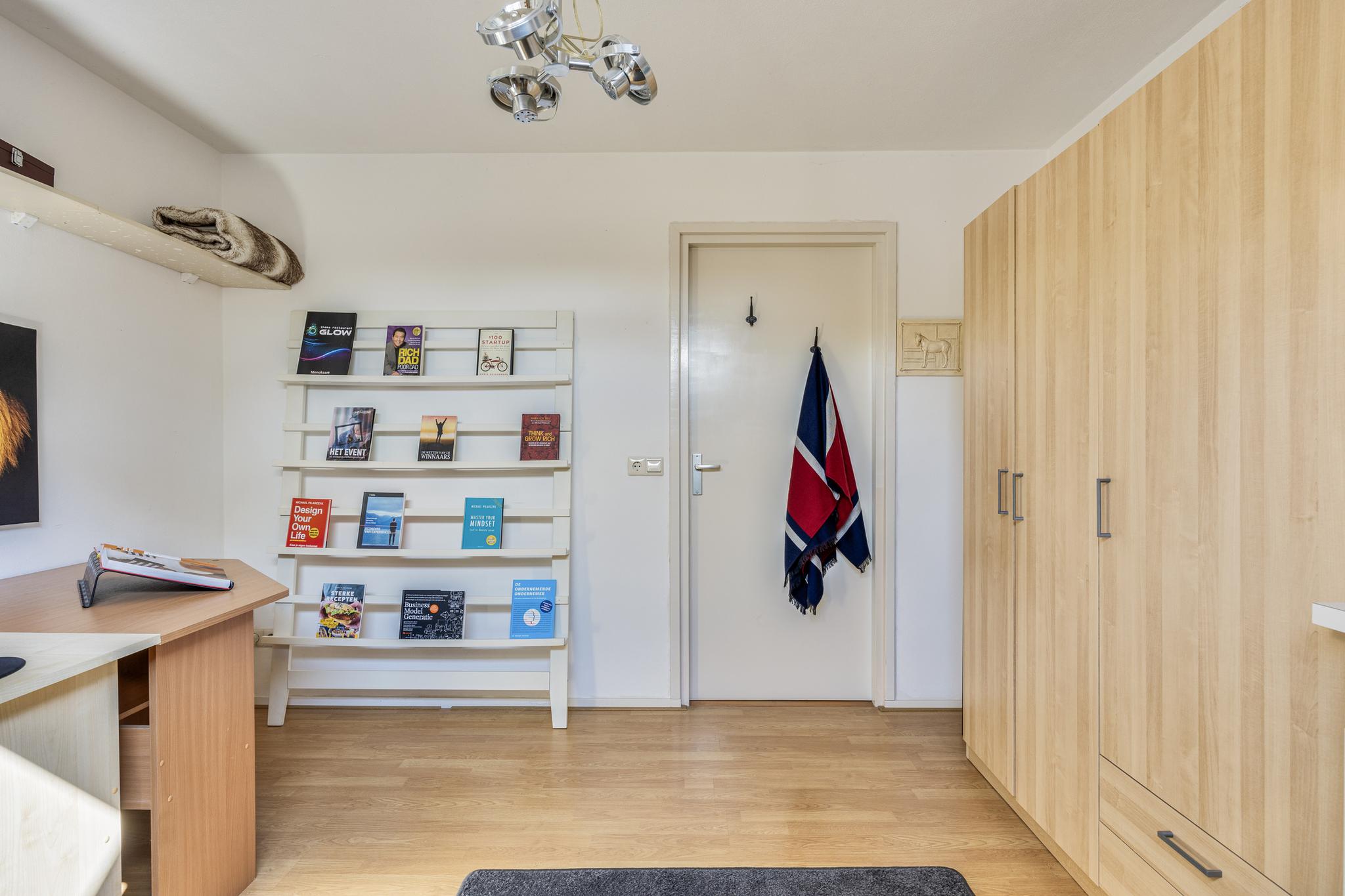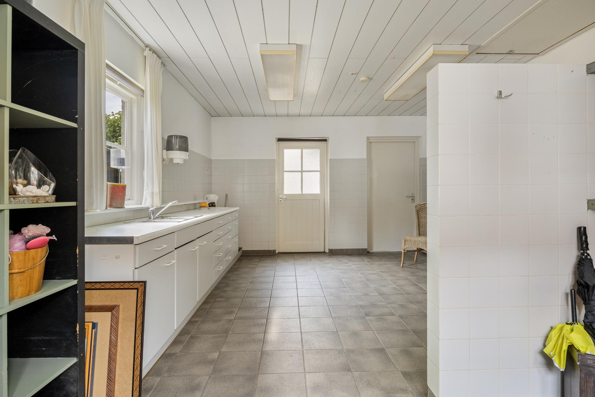 Er is een ruime bijkeuken met aangrenzend een toilet en douchruimte. De aansluitingen voor de witgoedaansluitingen zijn netjes weggewerkt in een inbouwkast. Tot slot is er een zeer ruime hobby/werkruimte welke is voorzien van een berging. Zowel vanaf de berging als de hobby/werkruimte is er toegang tot de naast gelegen Leeuwerikstraat.