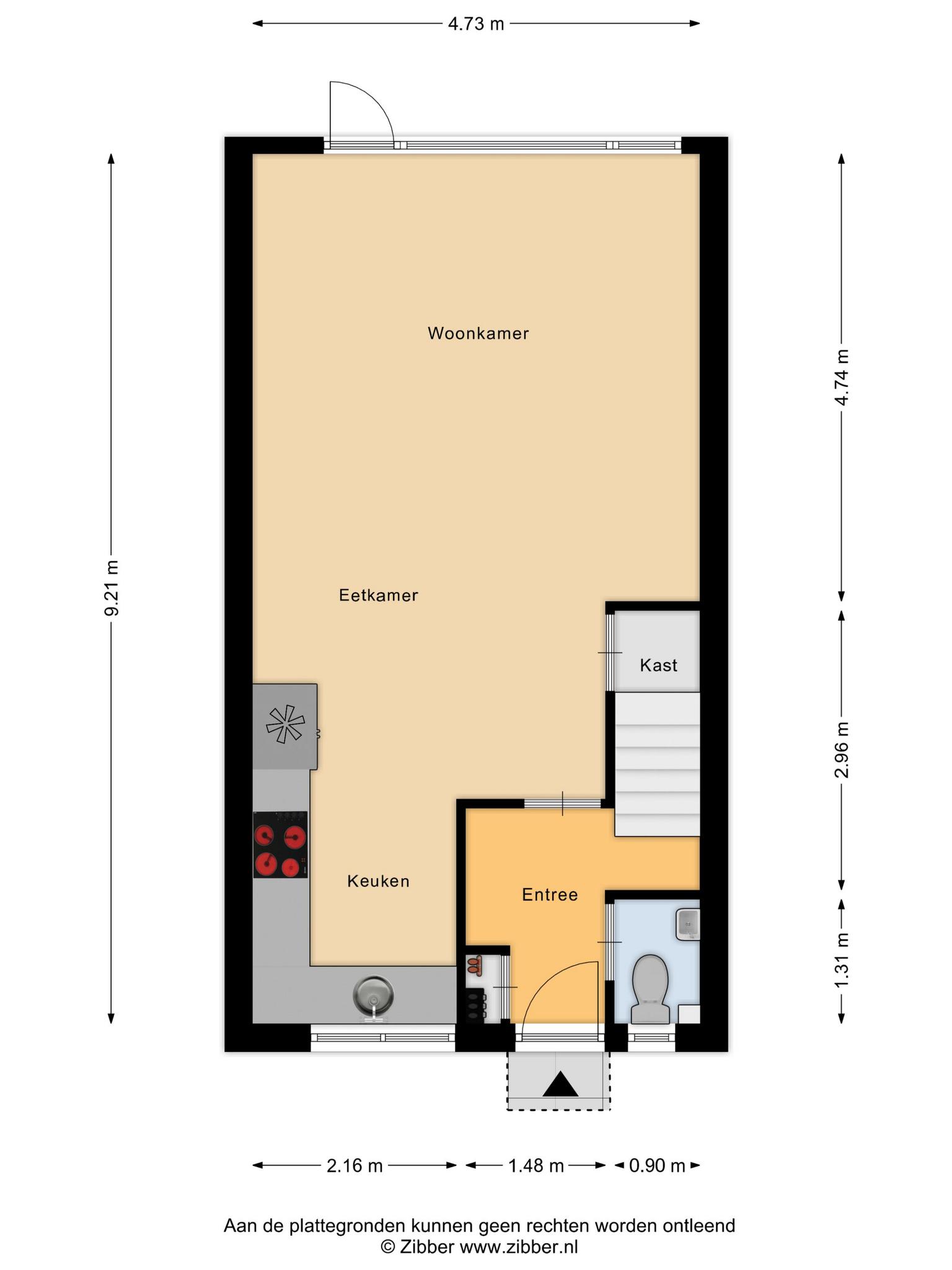 - 54 m² gelegen op het zuiden met achterom