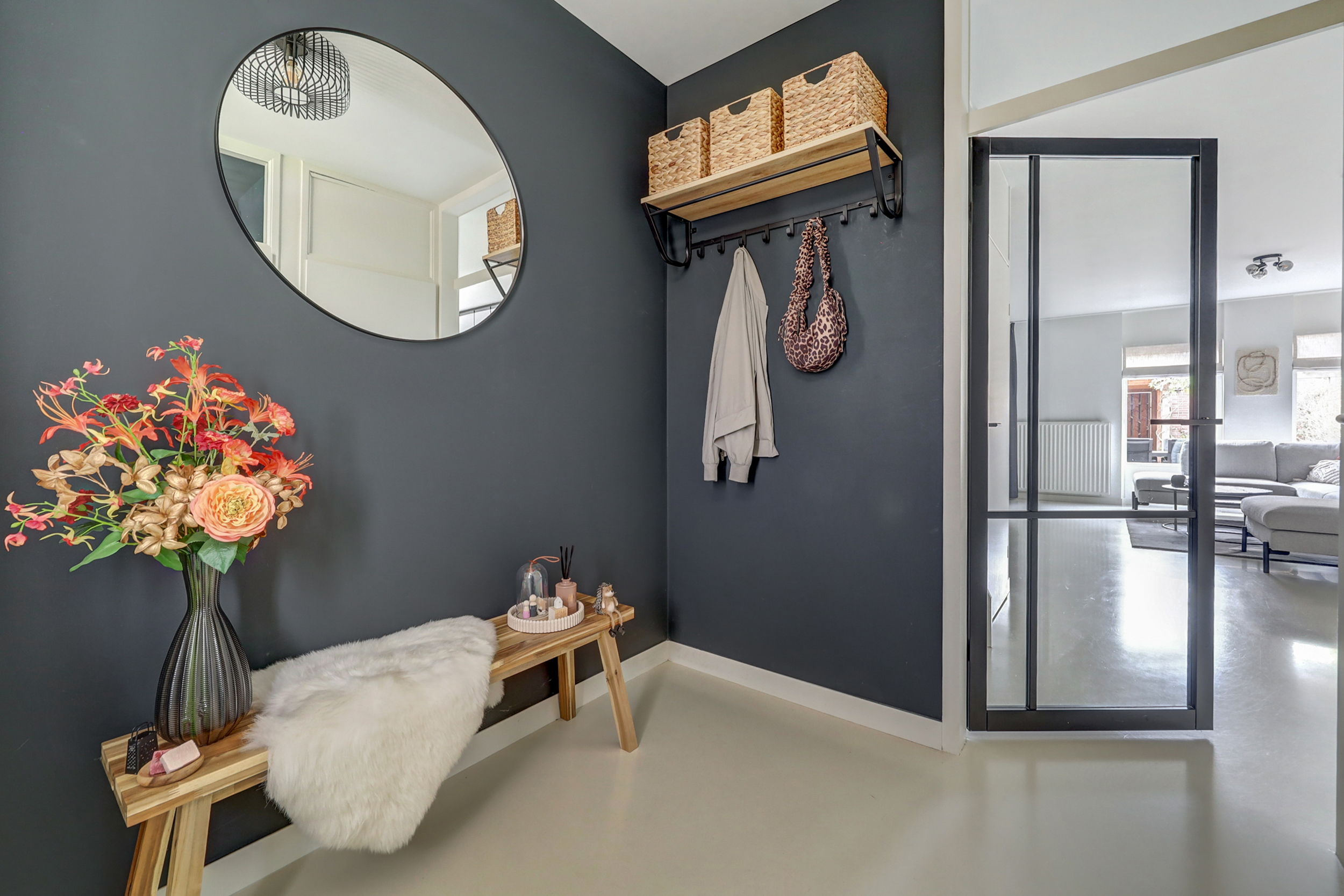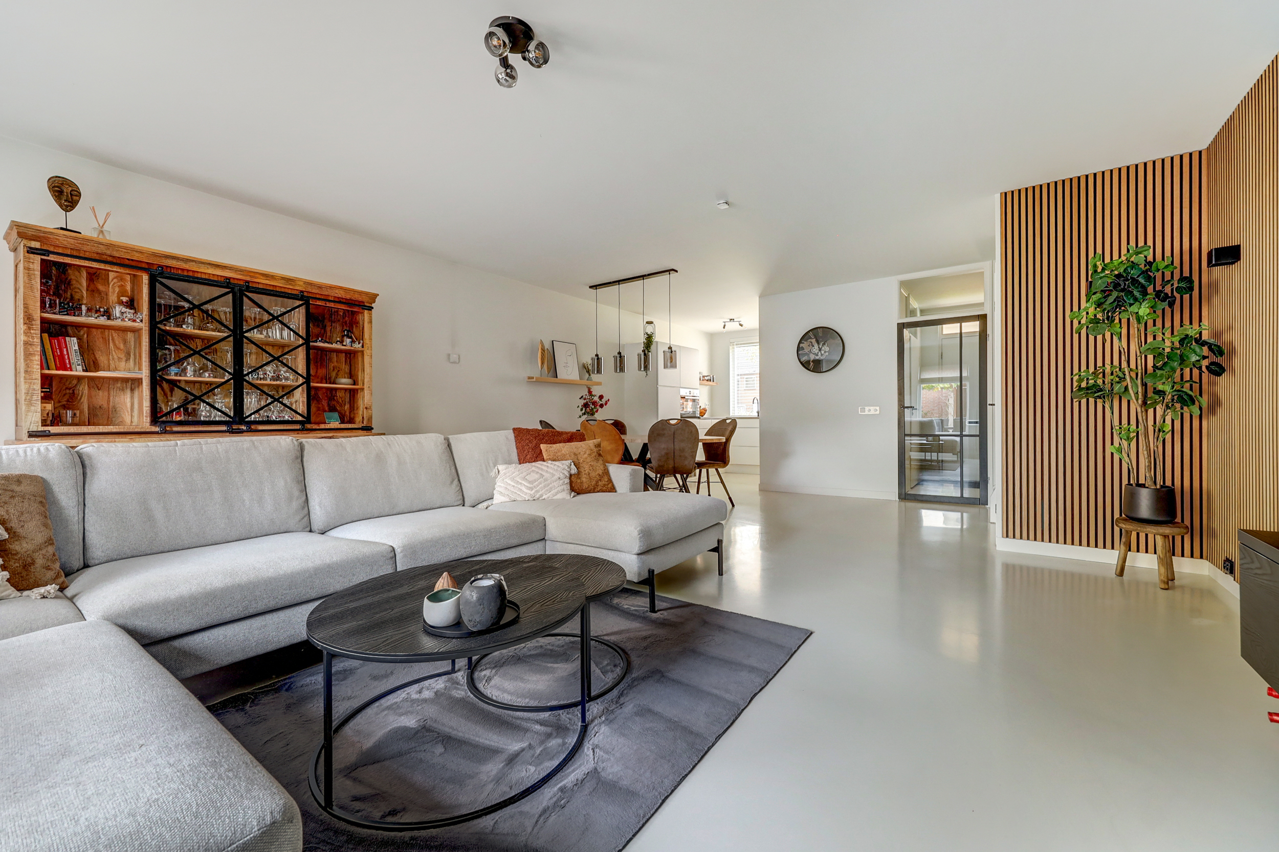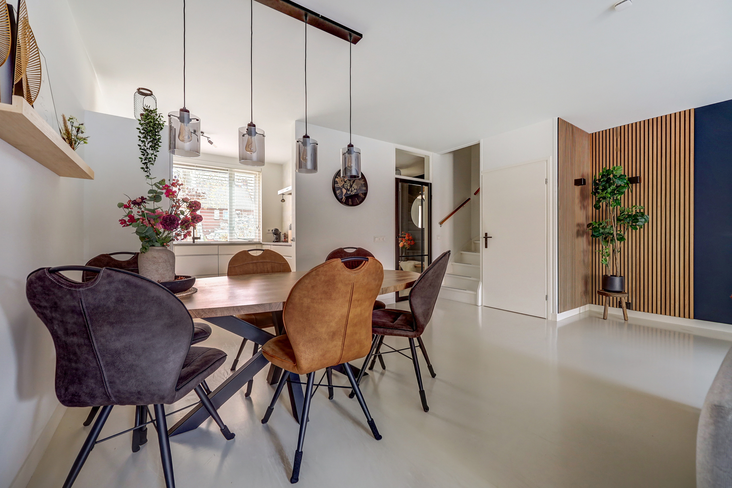 Bij binnenkomst via de voordeur stap je in een ruime entreehal met toegang tot de meterkast, het toilet en de woonkamer. De woonkamer is heerlijk licht dankzij de grote raampartijen en de lichte vloerafwerking. Er is voldoende plek voor een gezellige zithoek en een royale eettafel. Een praktische trapkast biedt extra bergruimte en via een deur bereik je de achtertuin. Aangrenzend aan de woonkamer bevindt zich de keuken. Deze keuken is voorzien van diverse inbouwapparatuur, waaronder een elektrische kookplaats, combi-oven, vaatwasser, koelkast en vriezer.