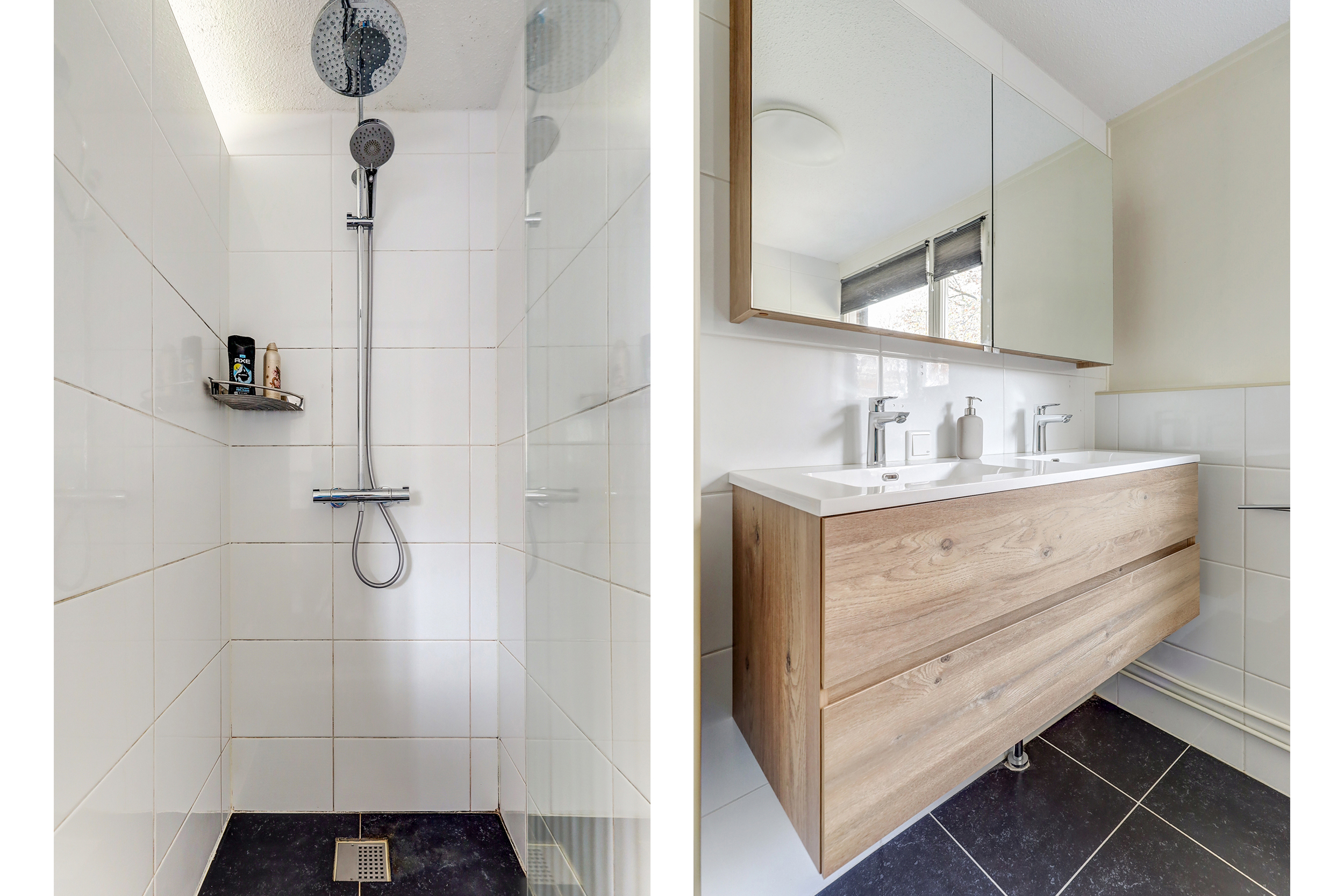 - Toilet, douche, dubbele wastafel, wastafelmeubel en whirlpool