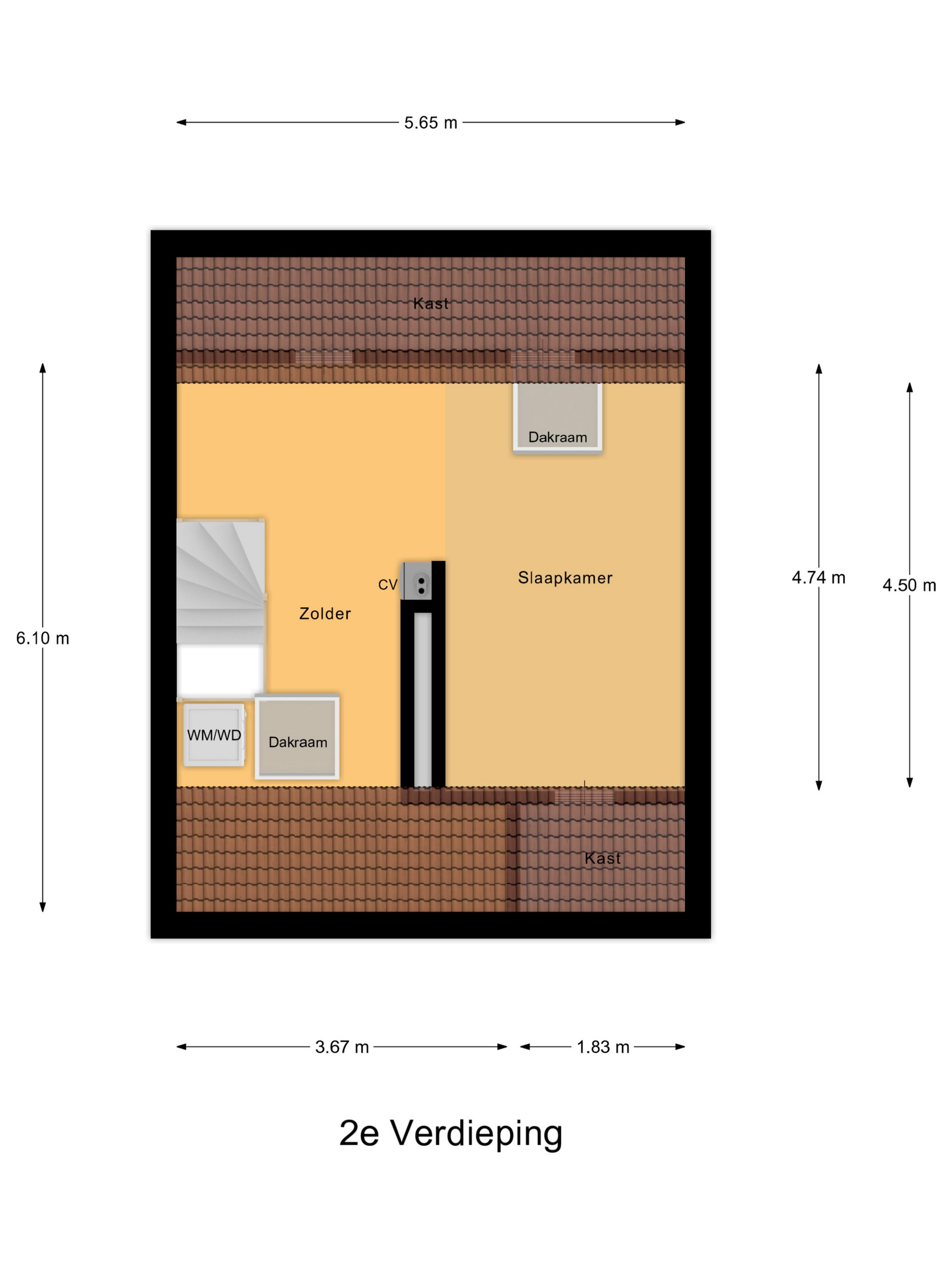 De tweede verdieping is bereikbaar via een vaste trap en biedt opnieuw veel mogelijkheden. Hier bevindt zich een open ruimte die met een kleine aanpassing eenvoudig kan worden omgevormd tot extra slaapkamer. Daarnaast vind je op deze verdieping de opstelplaats voor de wasmachine, droger en de cv-ketel uit 2025. Dankzij het dakraam valt er prettig veel daglicht binnen.