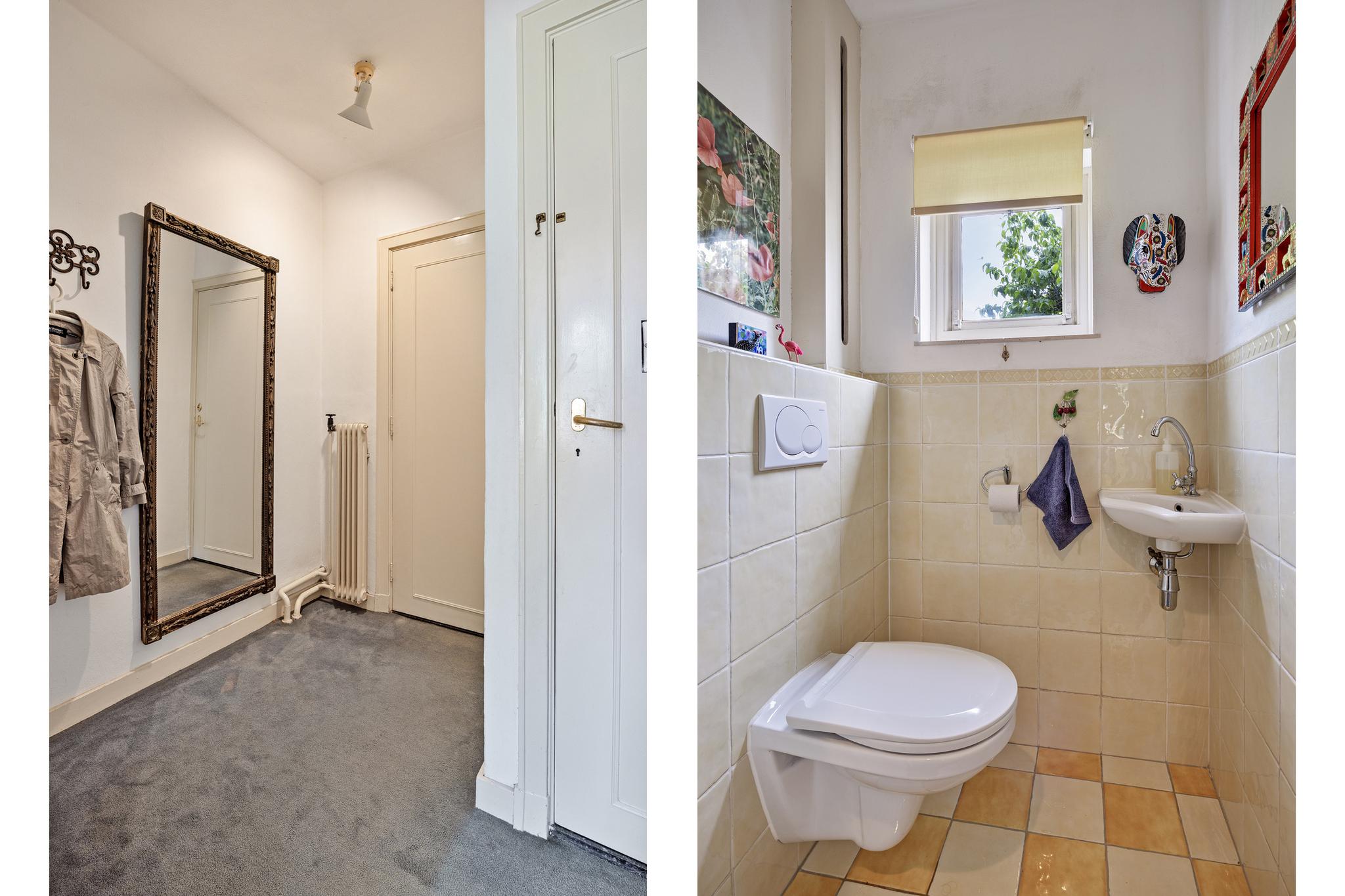 Entree/hal; een van de visitekaartjes van de woning door de sfeer in deze ruimte. Er bevindt zich een aparte toiletruimte grenzend aan de hal en de toegang tot de (wijn)kelder met ruime hoogte en een oppervlak van 20m2.