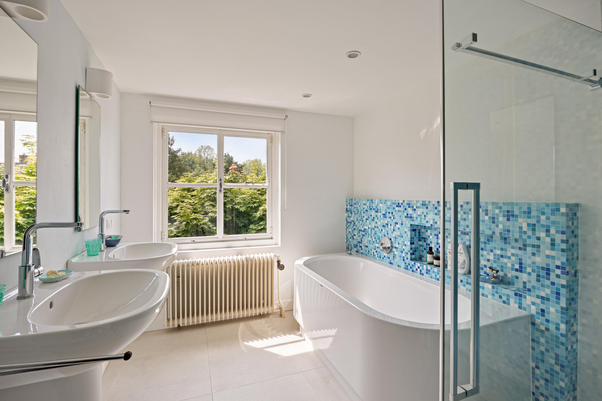Badkamer: deze is geheel vernieuwd en voorzien van een ligbad, douche en dubbele wastafel.