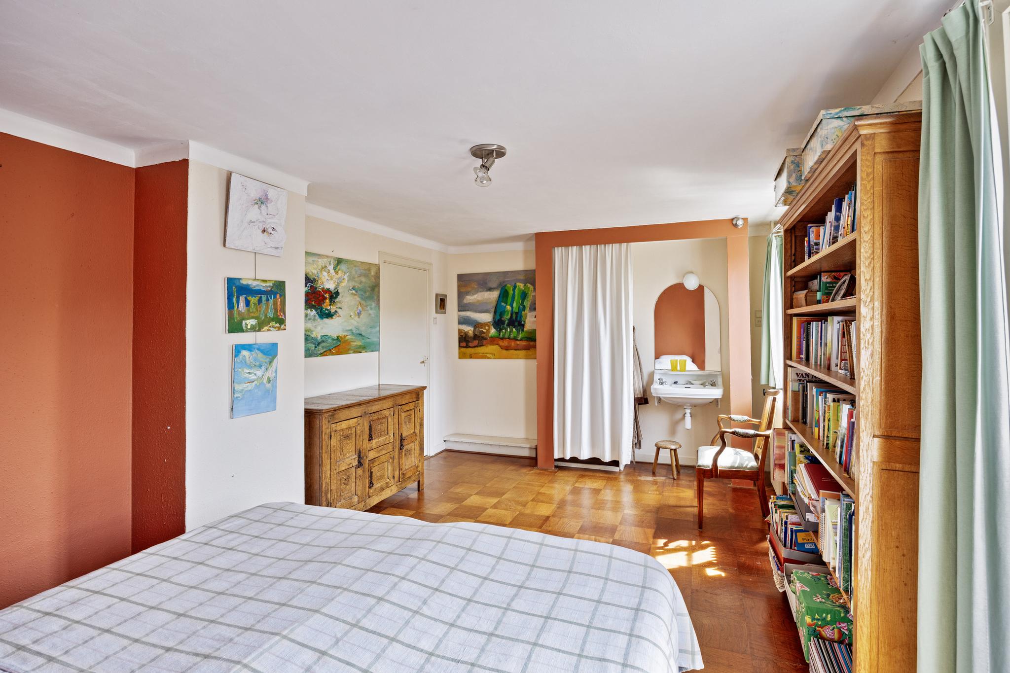 De slaapkamers kenmerken zich door de hoge plafonds en grote ramen waardoor er veel lichtinval is en het volwaardige verblijfsruimtes zijn. Verder zien we diverse netjes afgewerkte inbouwkasten. Een van de slaapkamers heeft toegang tot het balkon met uitzicht op de tuin.