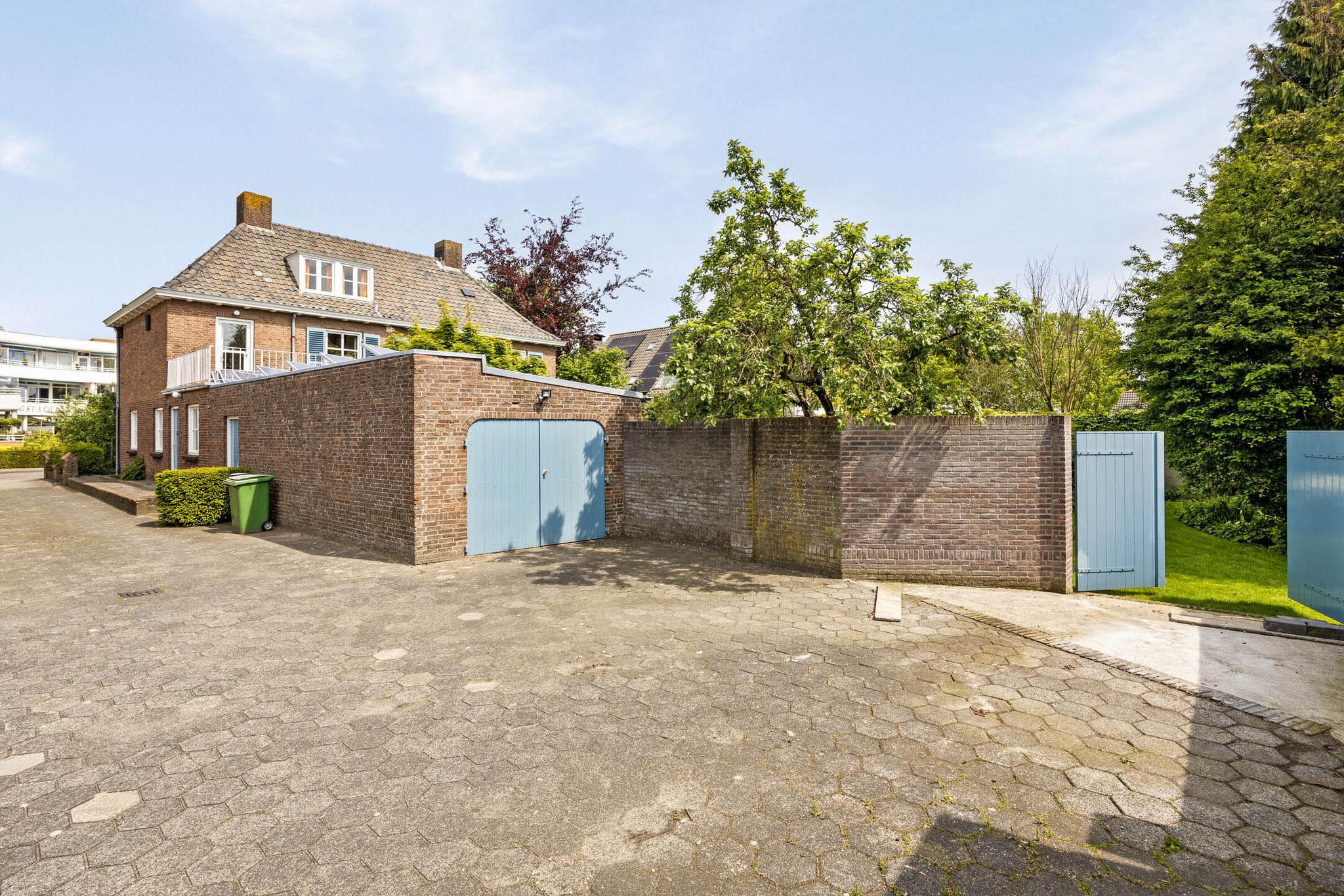 Bijgebouw; garage. De garage is ruim (33m2) en biedt ruimschoots plaats voor een auto, meerdere fietsen en opslag. Er zijn tevens twee loopdeuren aanwezig naar zowel de tuin als naar de oprit. Achter de garage is er op eigen terrein de mogelijkheid om twee auto's te parkeren. Naast de garage is een dubbele poort aanwezig om de eigen tuin te betreden, bijvoorbeeld om een aanhanger te stallen op eigen terrein.