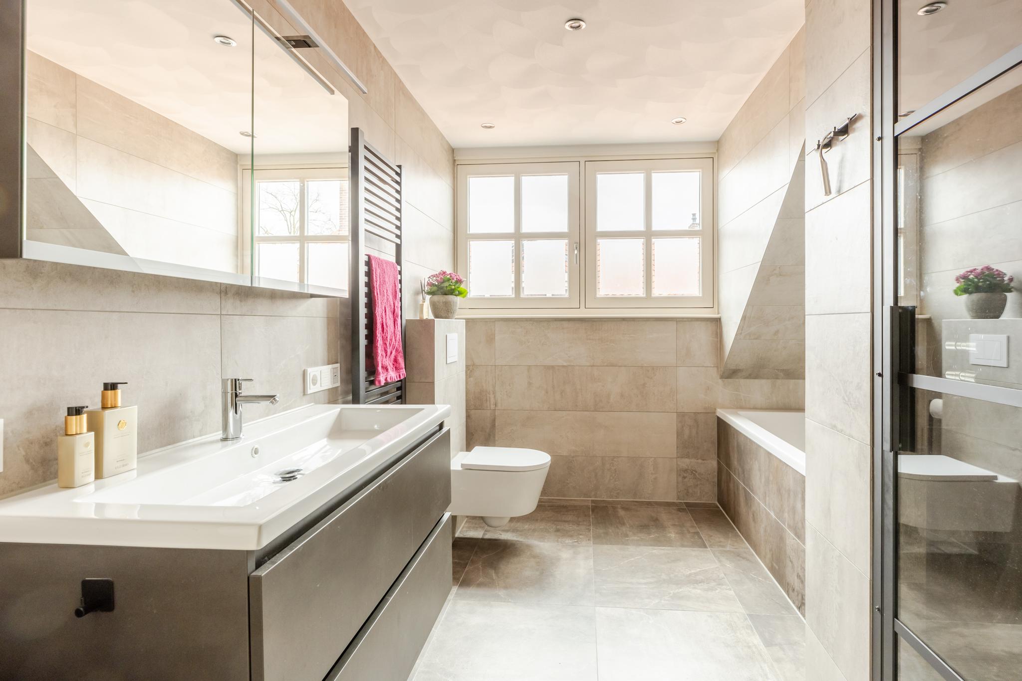 - Ligbad, toilet, wastafelmeubel, inloopdouche en vloerverwarming