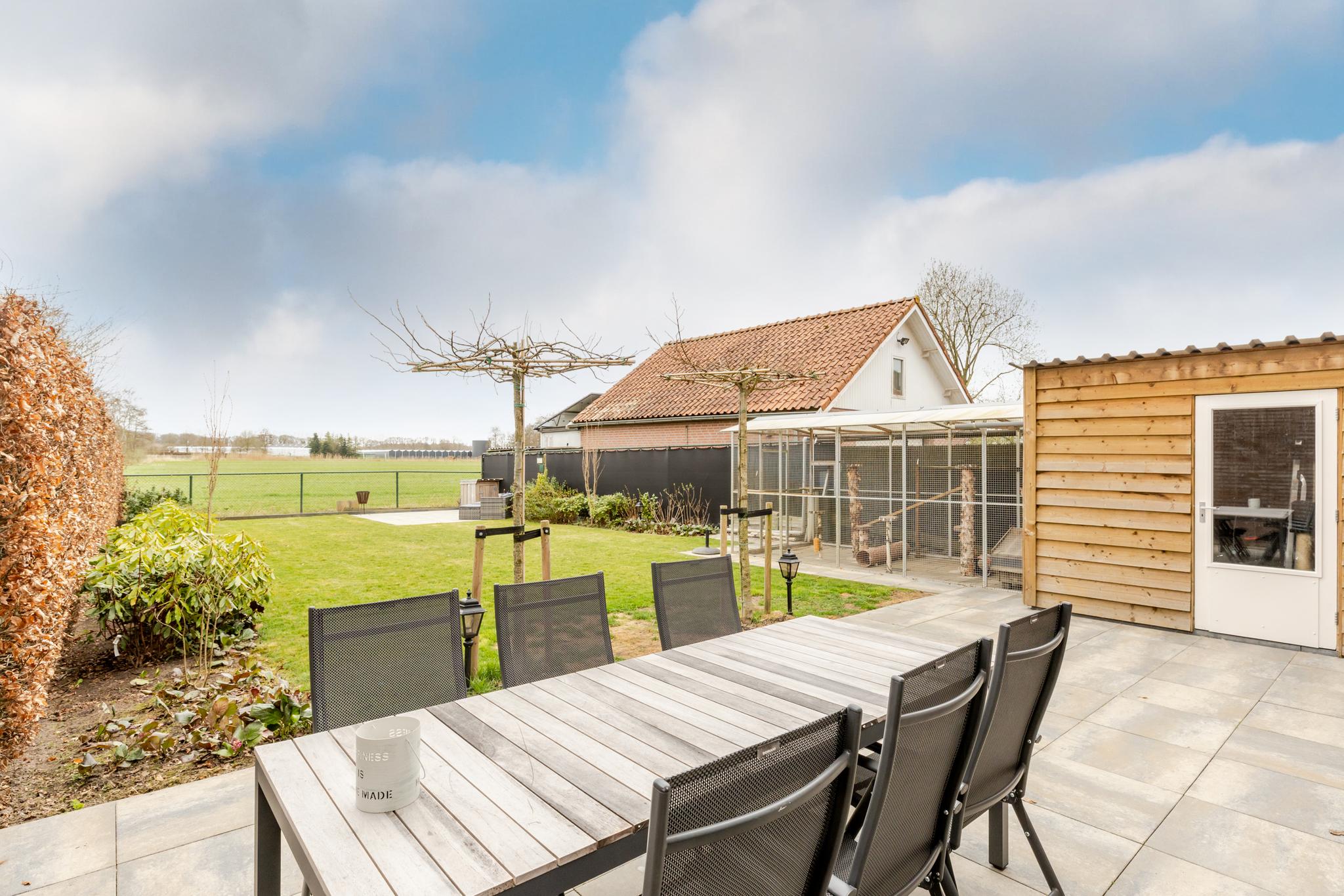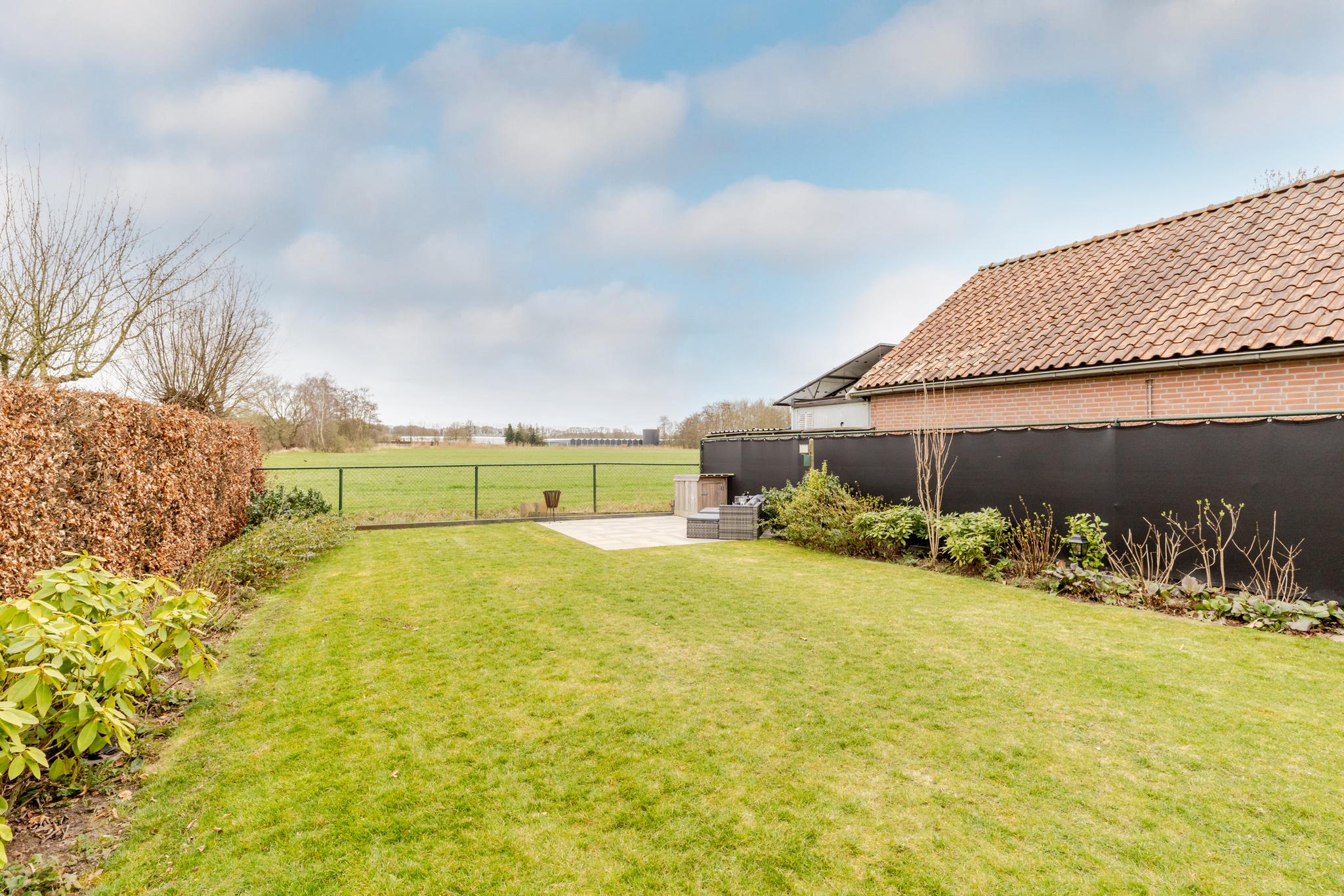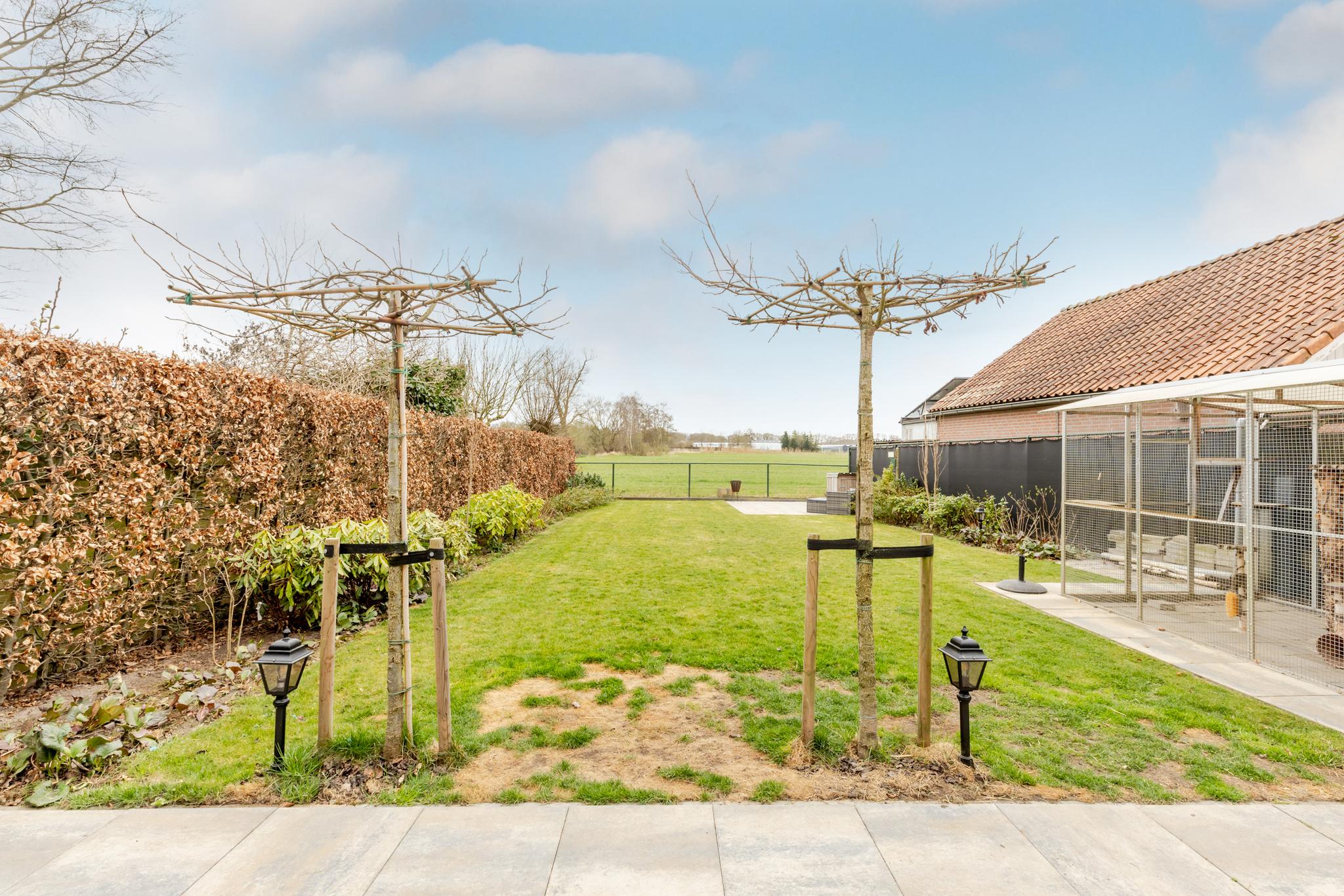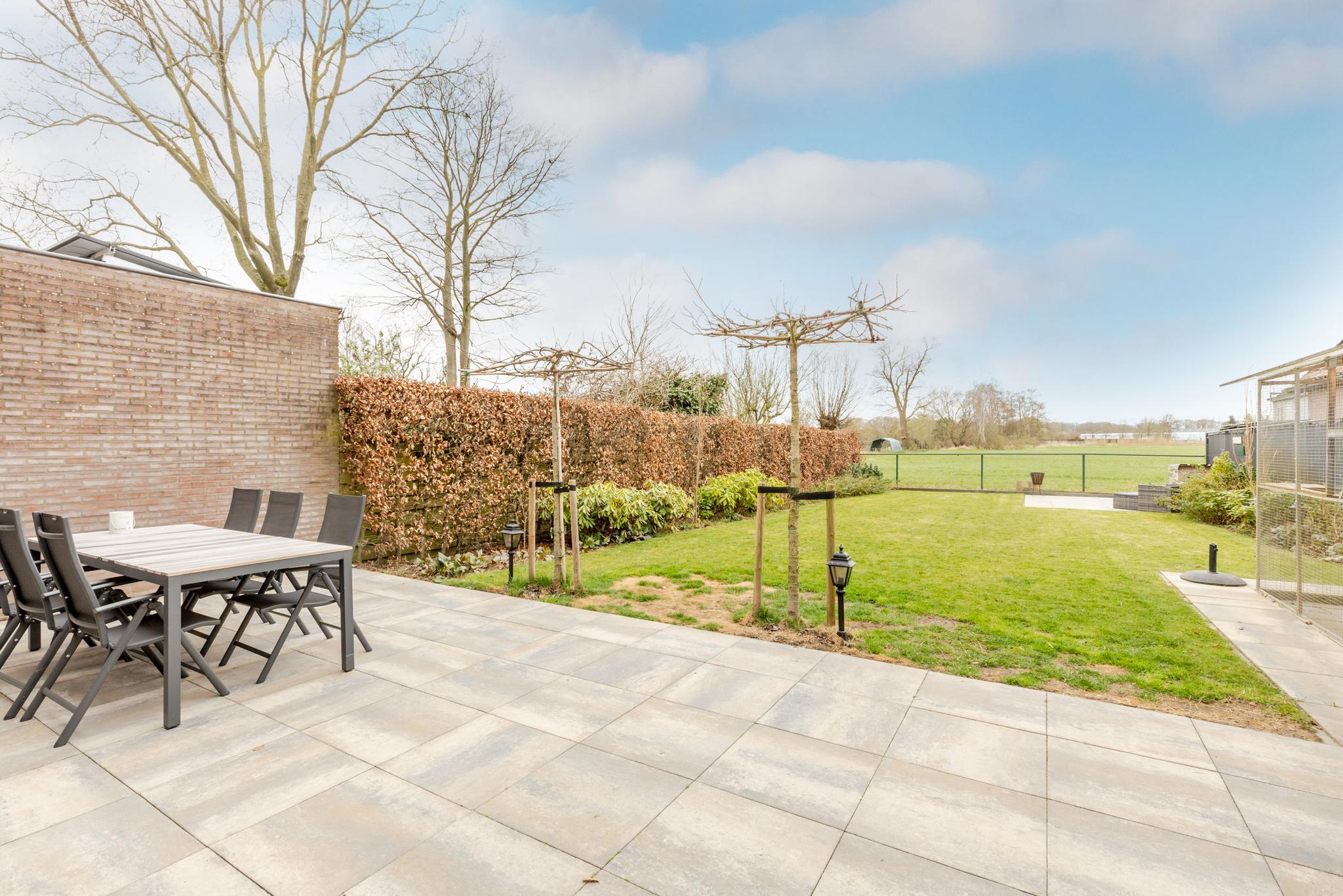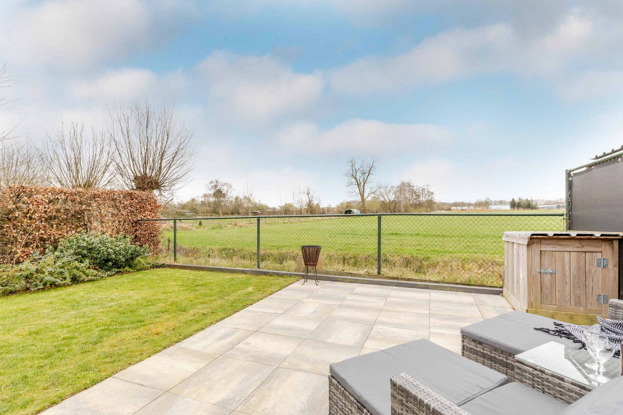 •Aan de achterzijde is een terras aangelegd met plataanbomen, veel groene hagen en gras. Het vrije uitzicht aan de achterkant maakt het buitenleven helemaal compleet.