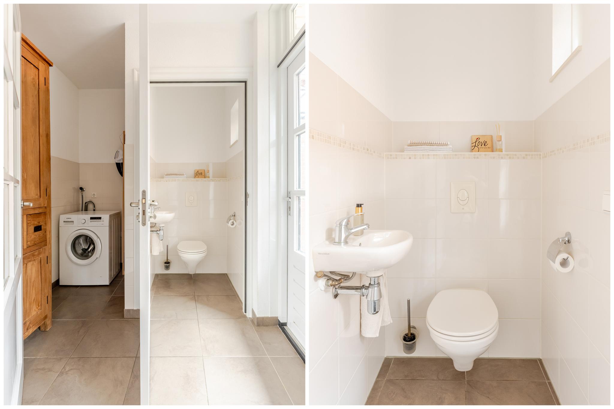 •Aansluitend aan de keuken is de praktische bijkeuken gelegen met de aansluitingen voor de wasmachine en de droger. Het separaat gelegen toilet is gedeeltelijk licht betegeld en uitgerust met een fonteintje en uiteraard loopt ook de vloerverwarming hierdoor.