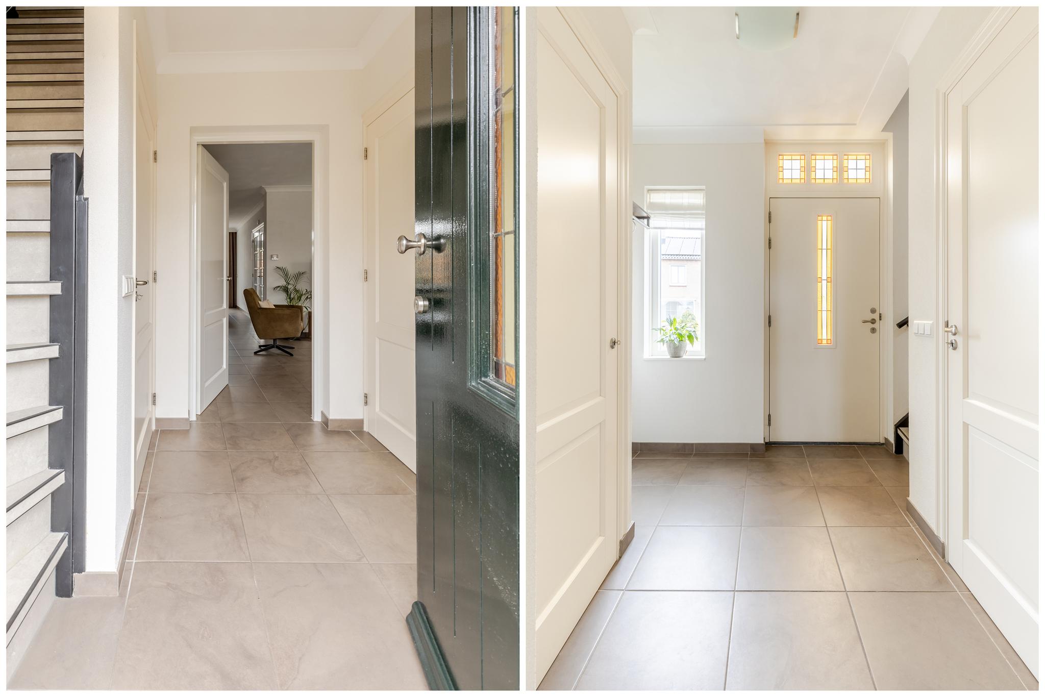 •Entree met vernieuwde meterkast, kelder en trap naar de verdieping. Paneeldeur met toegang tot de woonkamer.