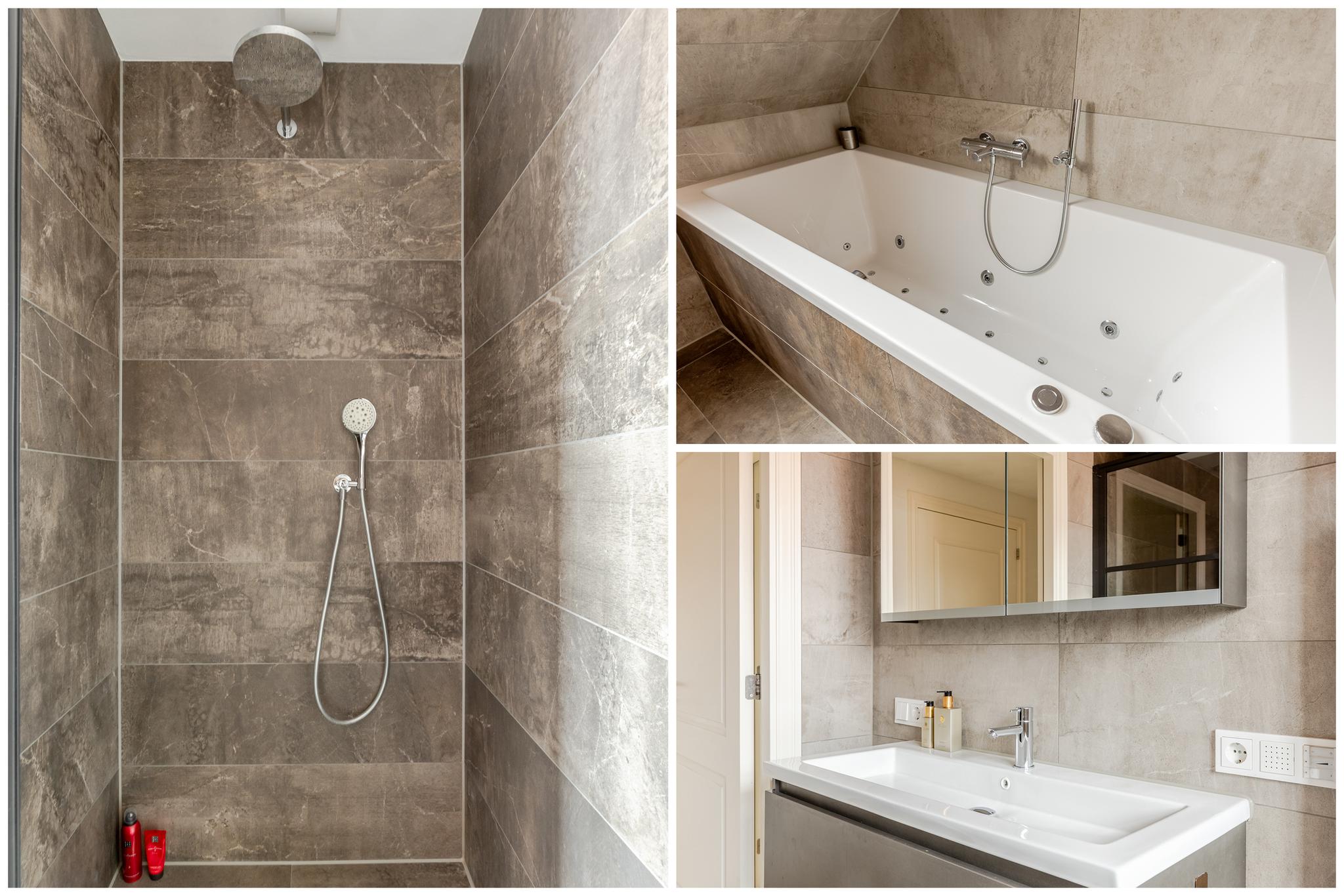 •De luxe vernieuwde badkamer (2023) is voorzien van een inloopdouche, een whirlpool ligbad, een wandcloset en een wastafelmeubel.