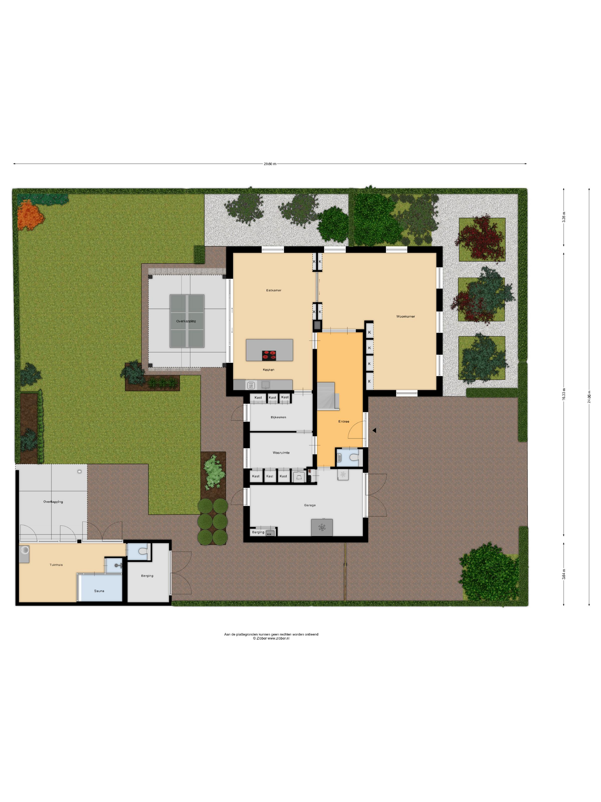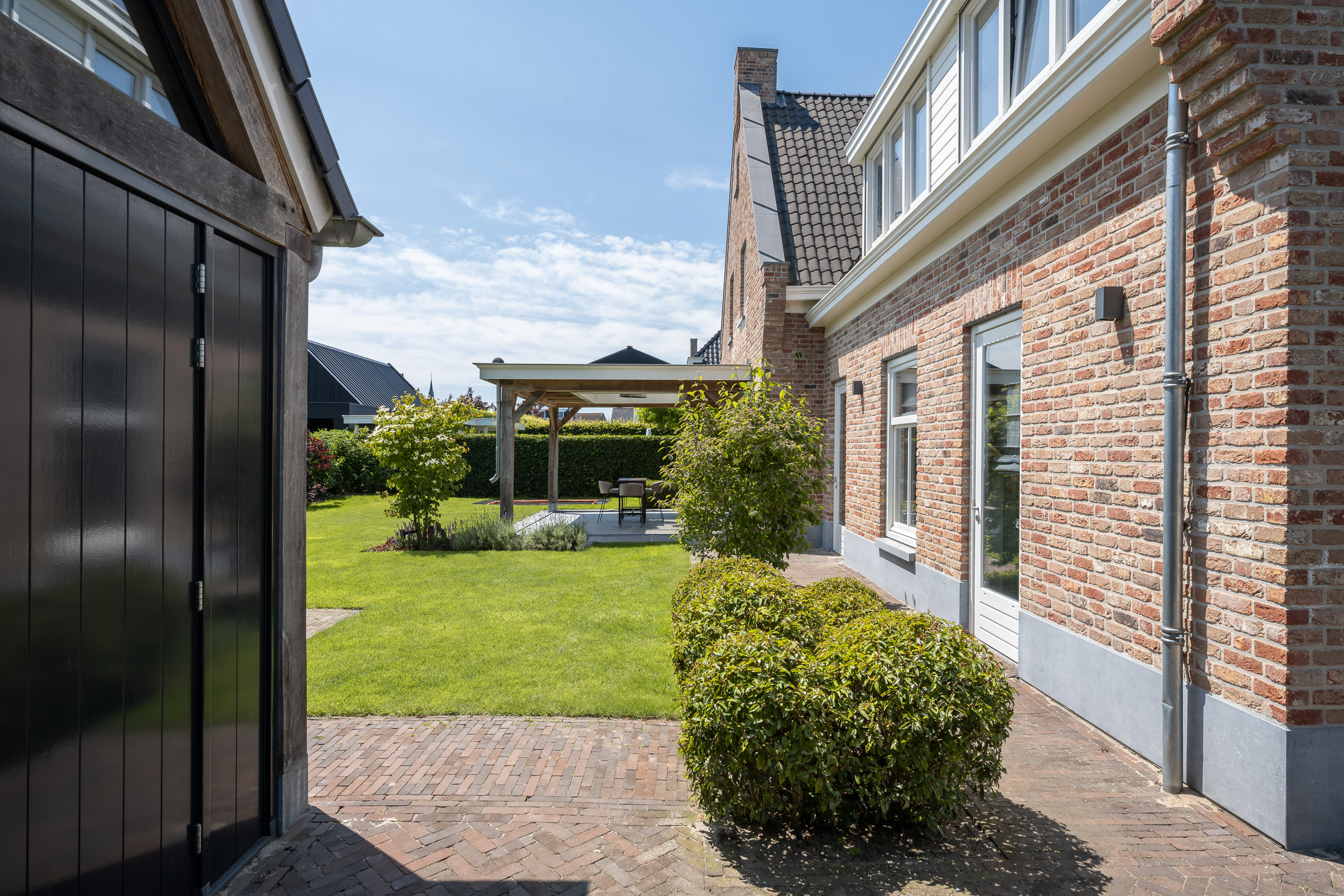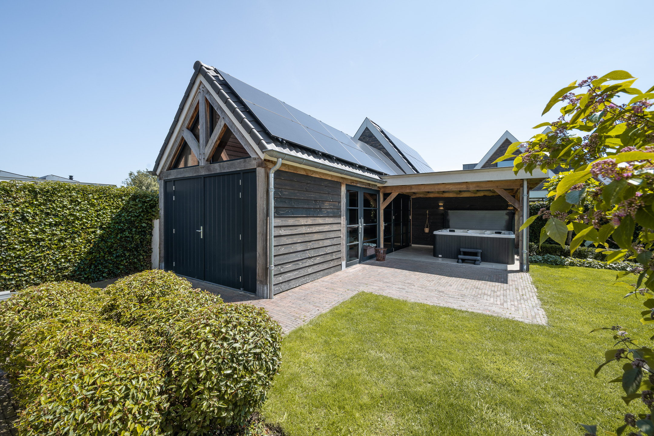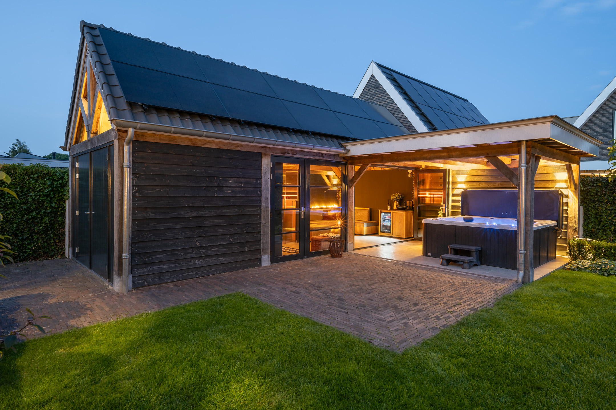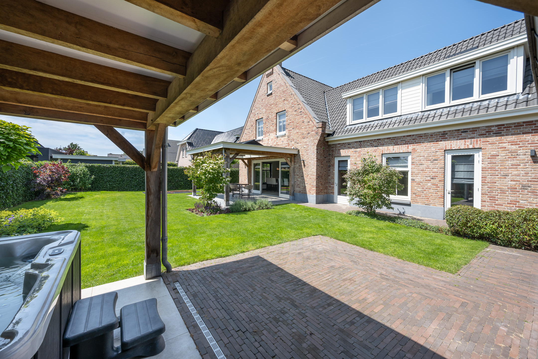 De op het zuiden gelegen tuin is werkelijk een oase van rust en comfort, met een indrukwekkende breedte van maar liefst 24 meter. De tuin is keurig onderhouden en biedt diverse gezellige zithoeken, waaronder een overkapping direct aan het huis. Achterin de tuin staat een luxe bijgebouw dat van alle gemakken is voorzien: een heerlijke sauna, douche en toilet maken dit tot een ware wellnessruimte. Het bijgebouw is bovendien ruim genoeg voor een loungeset, waardoor je hier een tweede woonkamer in de tuin kunt creëren. Dit is de perfecte plek om te ontspannen, tot rust te komen of juist te genieten van lange zomeravonden met familie en vrienden. Tegen het bijgebouw aan treffen we ook nog een berging voor het opslaan van tuingereedschap.