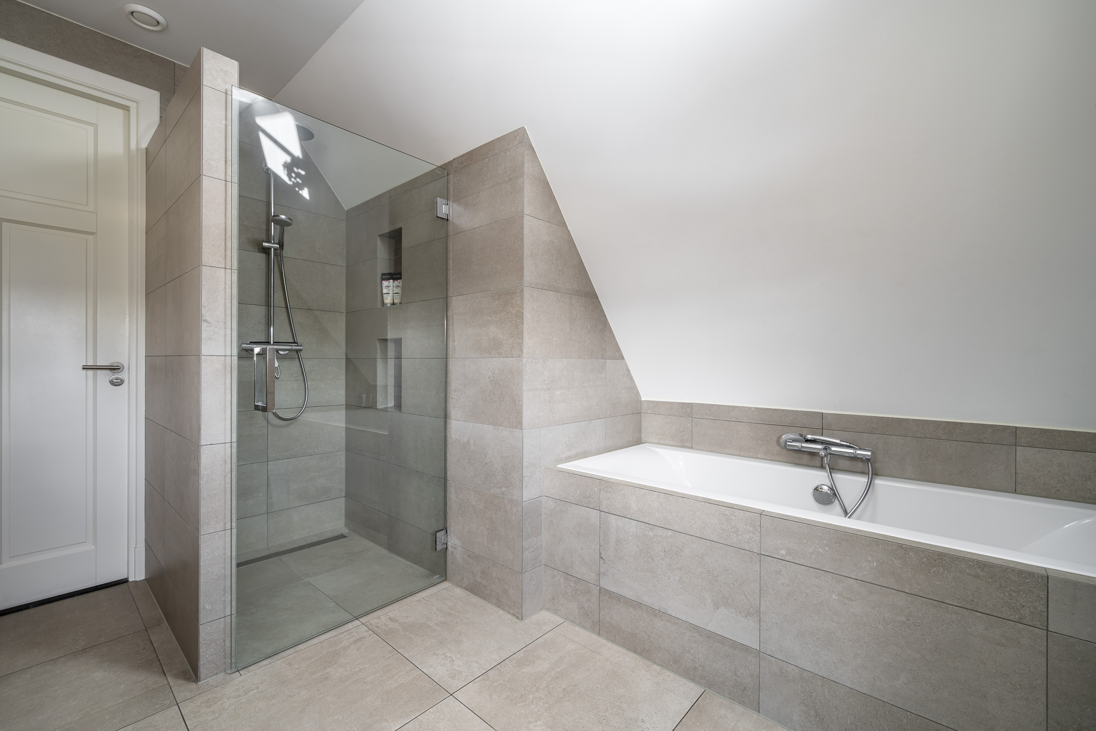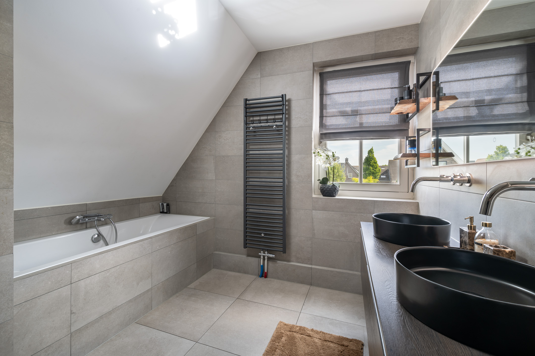 - Sauna, ligbad, dubbele wastafel, wastafelmeubel, inloopdouche en vloerverwarming