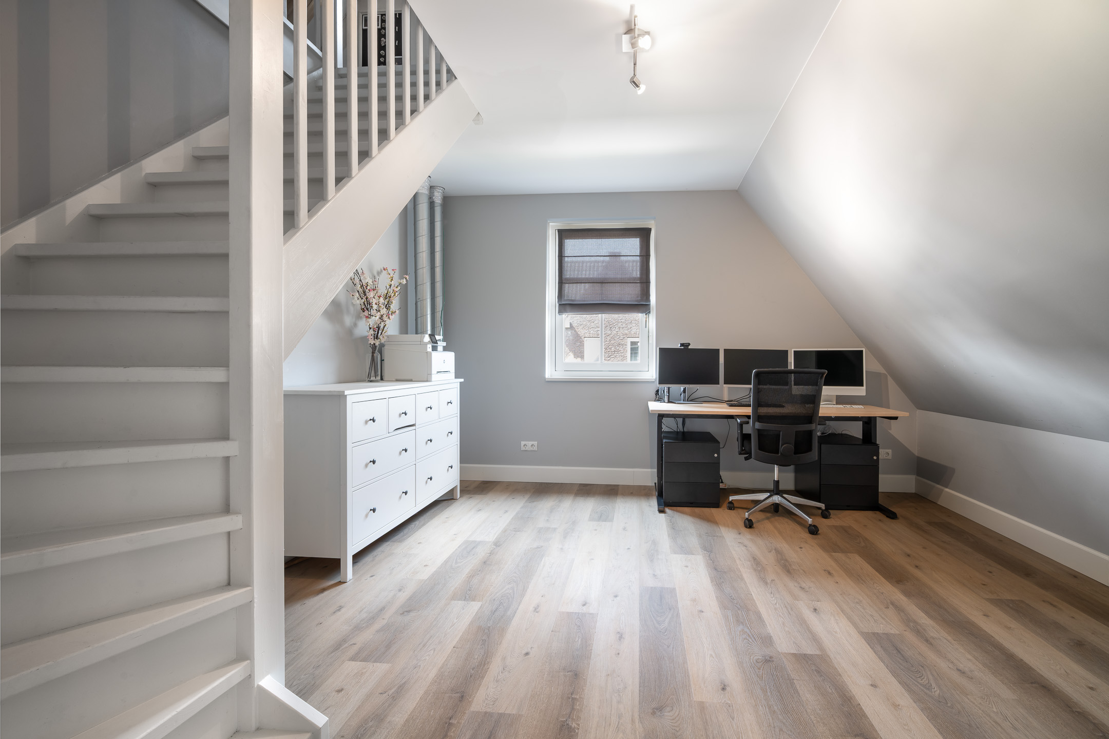 De tweede verdieping is bereikbaar via een vaste trap en doet momenteel dienst als ruime bergzolder. Hier kun je eenvoudig al je seizoensspullen, koffers en overige niet-dagelijkse items netjes opbergen. Deze ruimte biedt tevens mogelijkheden voor het creëren van een extra (werk)kamer of hobbyruimte.