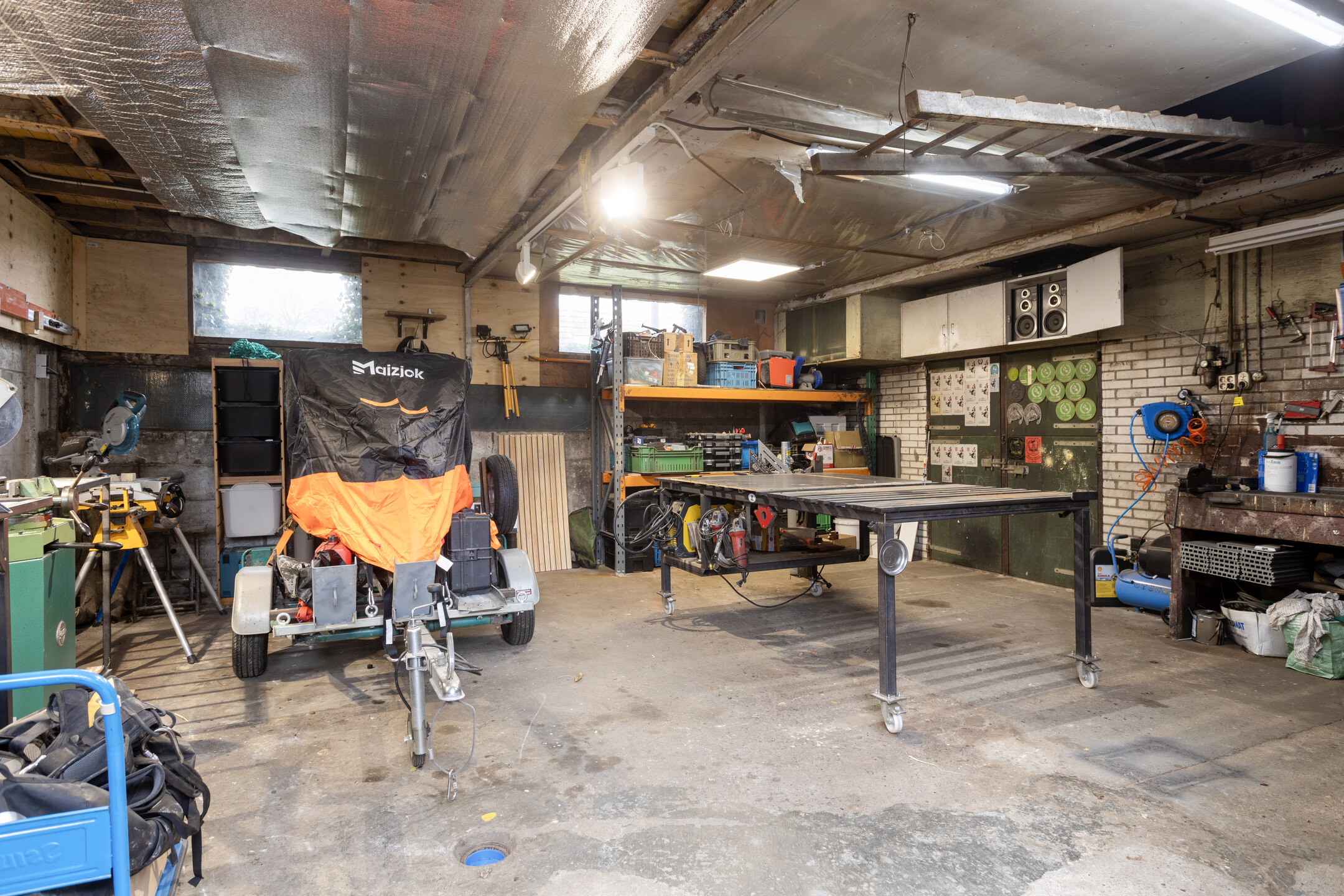 De absolute bonus van deze woning is de ruime, vrijstaande garage, die voorzien is van een overvloed aan opbergruimte en een zeer praktische krachtstroomaansluiting – ideaal voor de hobbyist of voor wie graag werkt met zwaar gereedschap. De garage beschikt zelfs over een vliering, wat extra opbergruimte biedt voor allerlei spullen. Met een gestorte betonnen vloer is de garage perfect uitgerust voor het stallen van zware voertuigen of het opslaan van gereedschap en andere materialen. Aan de rechterzijde van de garage is een voormalige paardenstal omgebouwd tot een berging, die nog meer opbergruimte biedt en de garage nóg functioneler maakt. Deze garage is dus niet alleen praktisch, maar ook bijzonder veelzijdig, en biedt volop mogelijkheden voor zowel opslag als werkruimte!