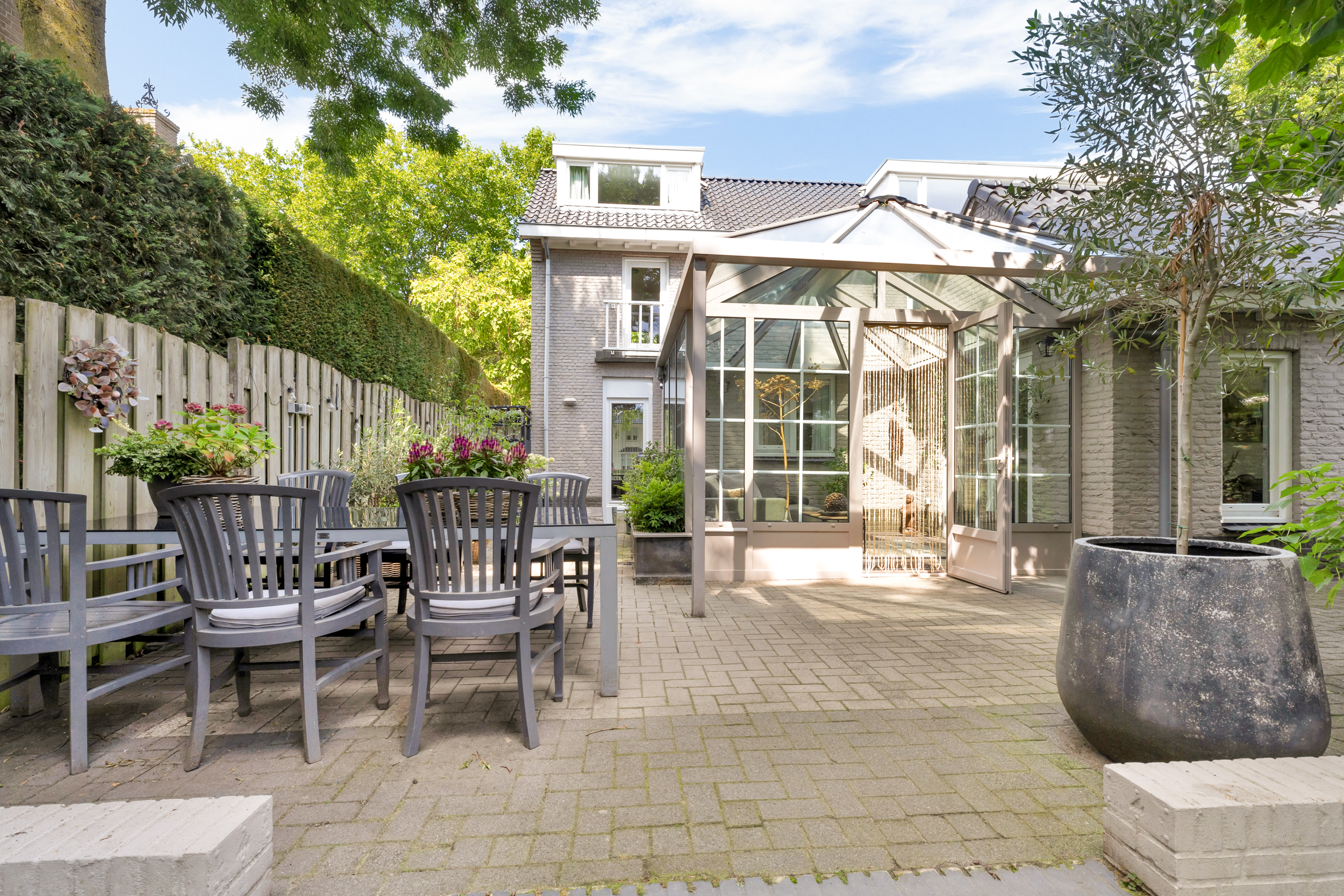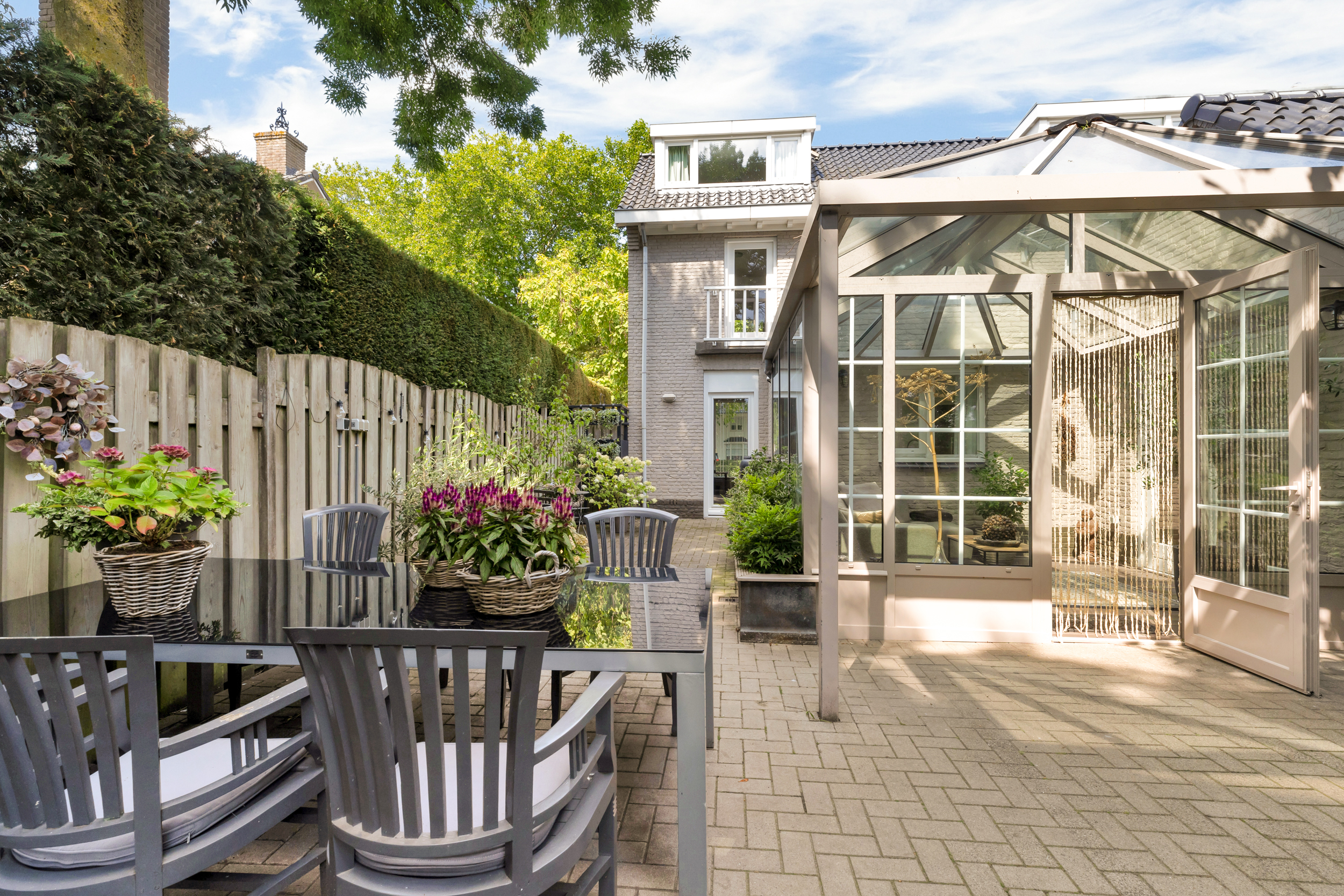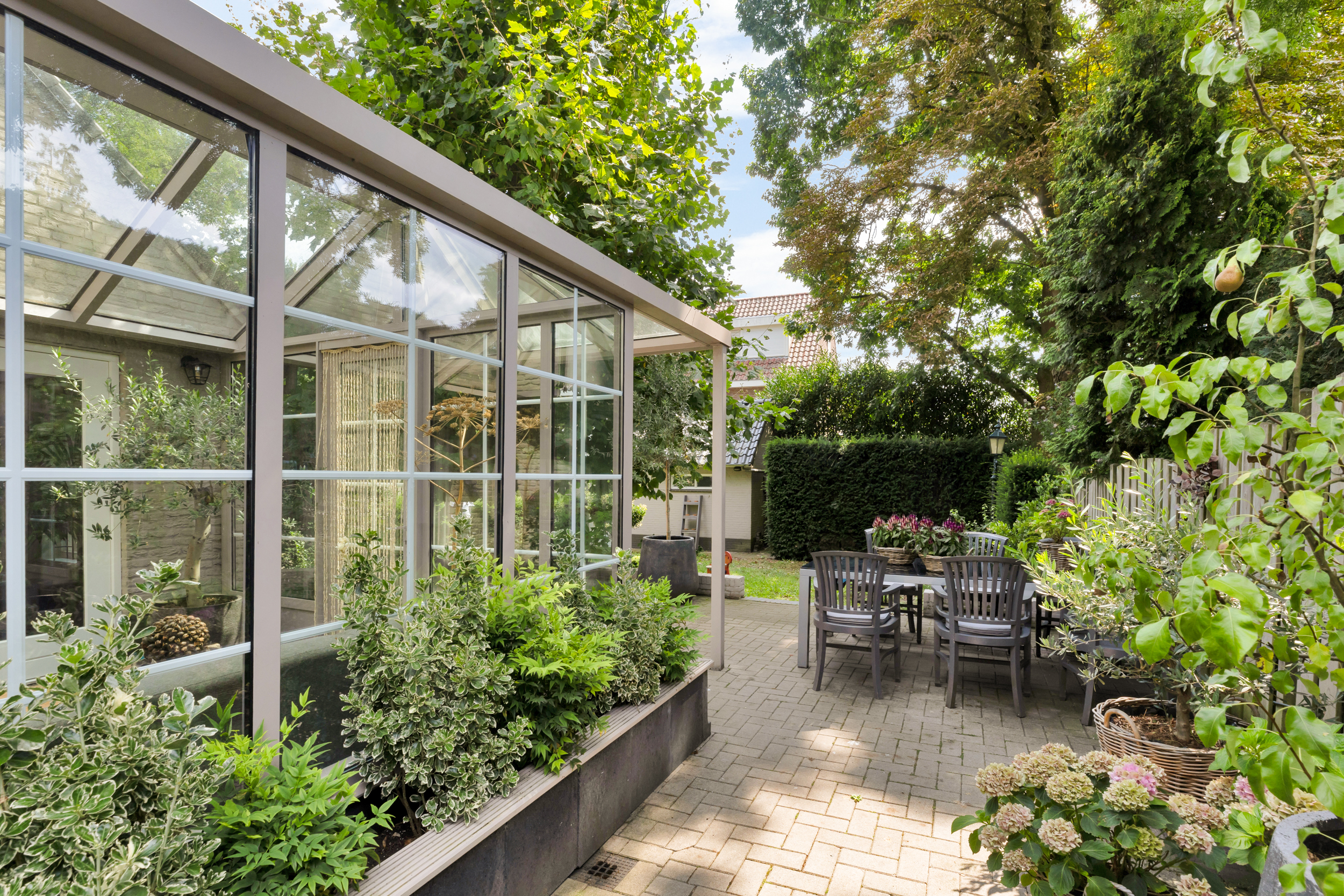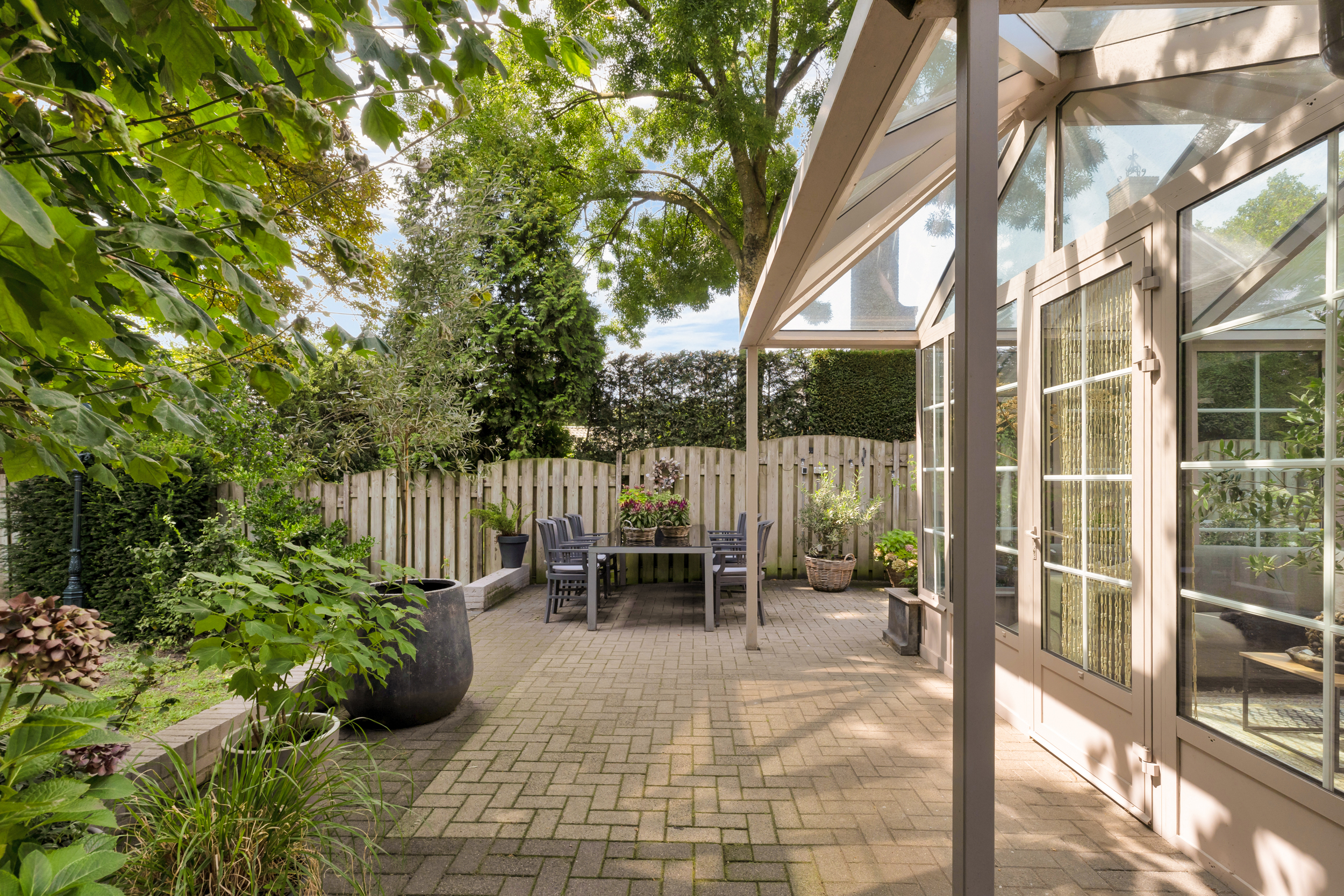 - Fraaie serre met uitzicht op de zonnige tuin;
