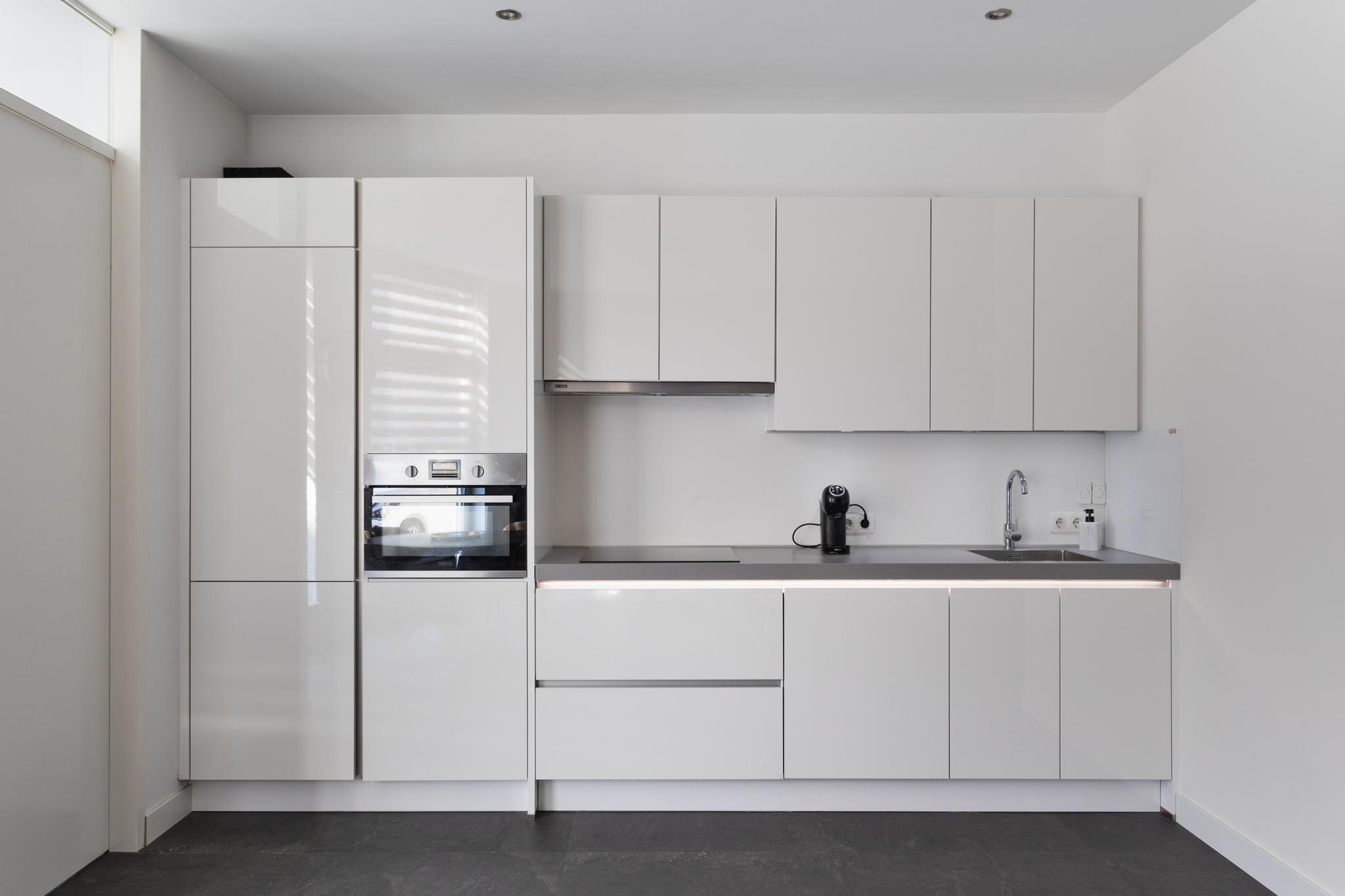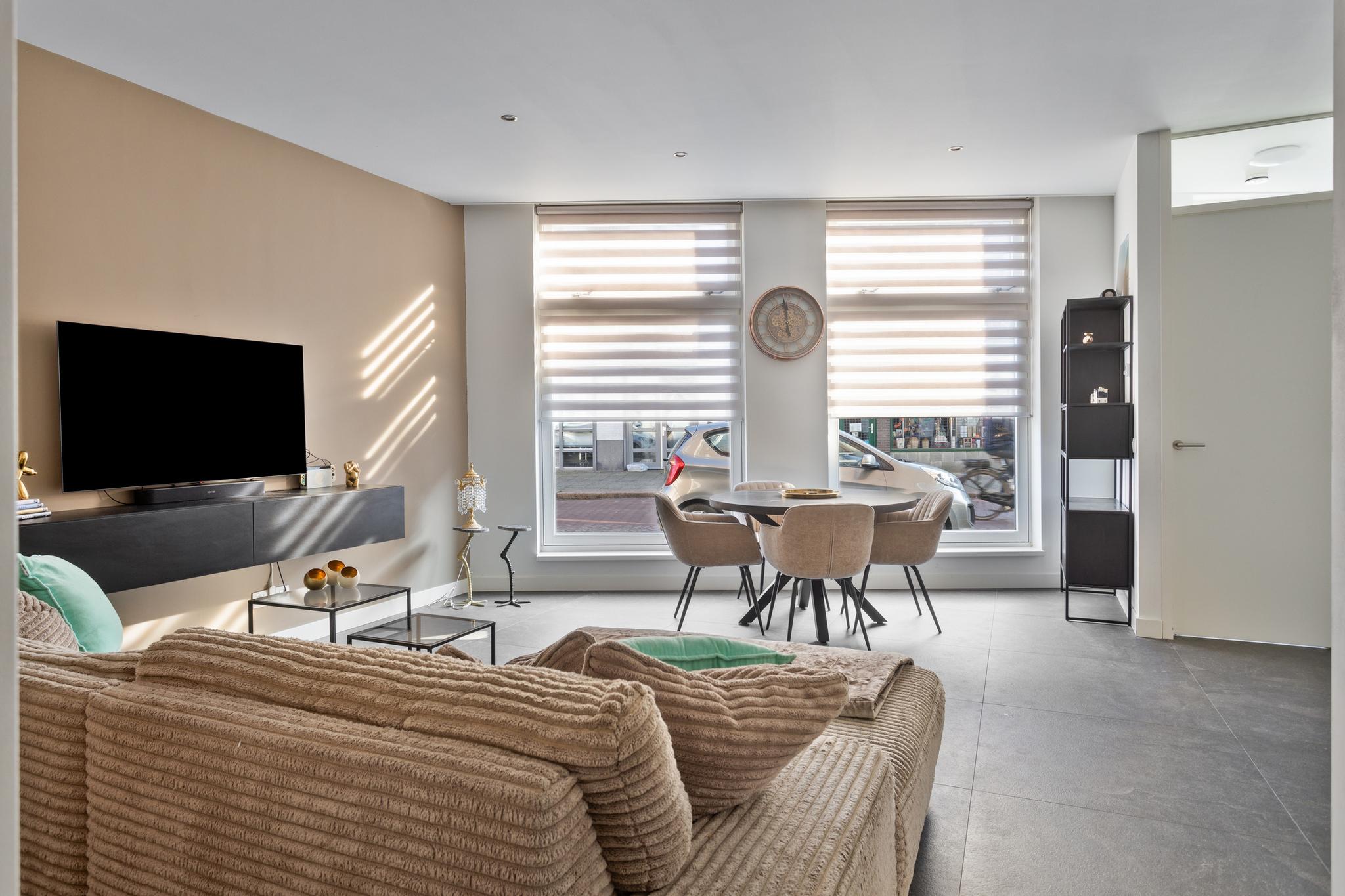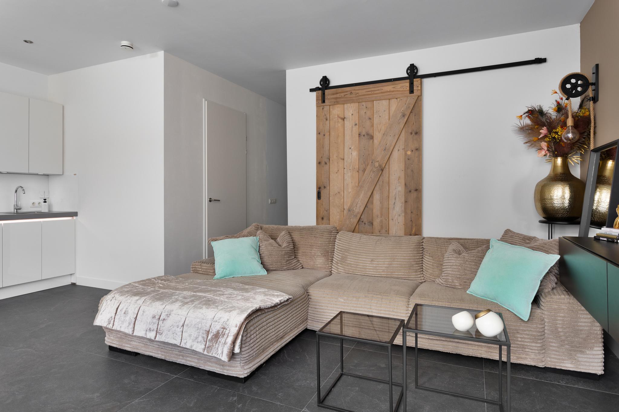 Dit appartement heeft een eigen voordeur die direct via de straat te bereiken is. De hal biedt toegang tot de garderobe en meterkast. Via een deur komen we in de woonkamer. Dit appartement uit 2017 is fantastisch afgewerkt en voorzien van grote raampartijen aan de voorzijde van het appartement. De open keuken is van alle gemakken voorzien en alle wanden zijn strak gestuct. Op de vloer ligt een tegelvloer met vloerverwarming.