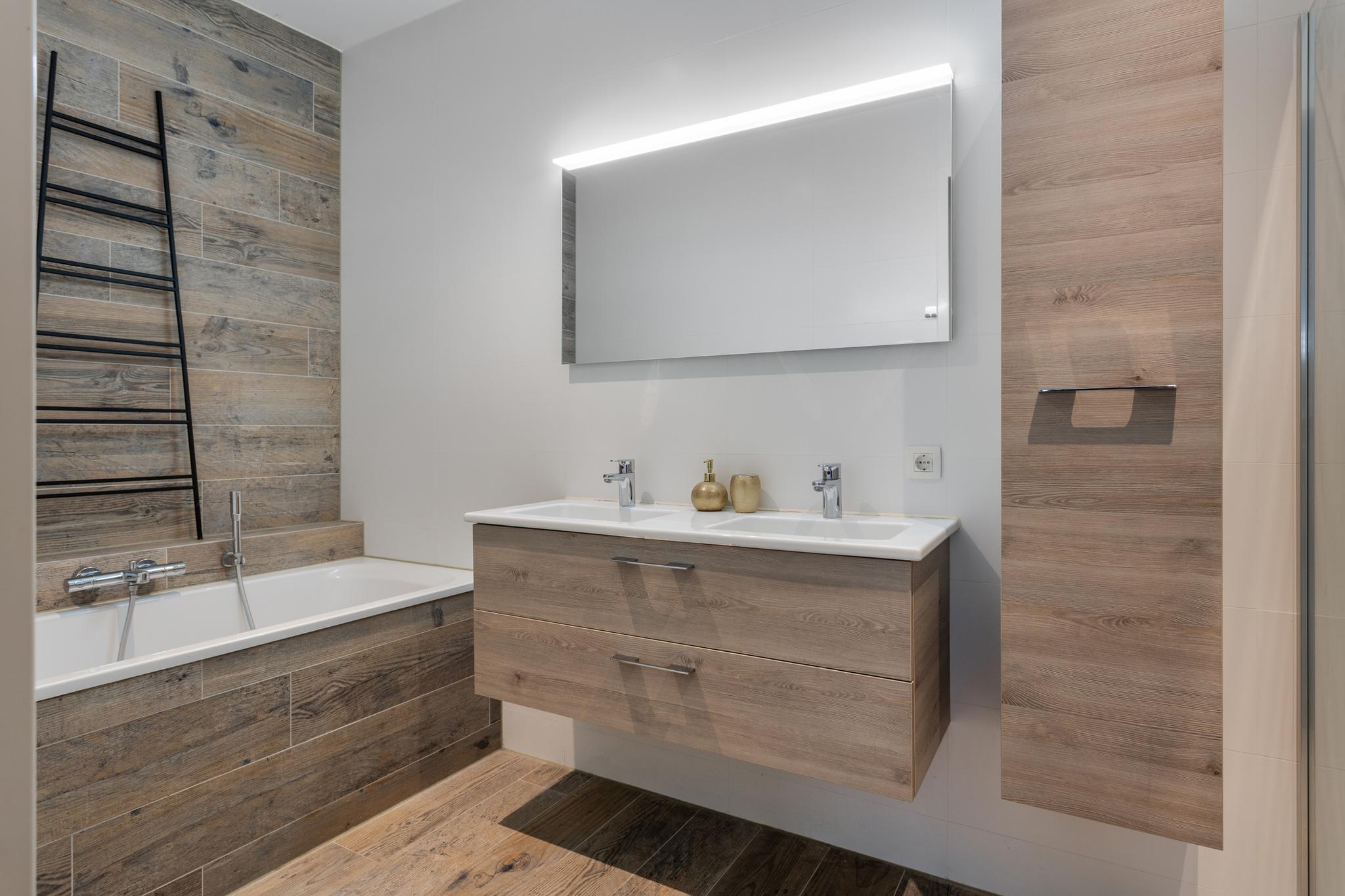 - Badkamer voorzien van inloopdouche, dubbele wastafels en ligbad.