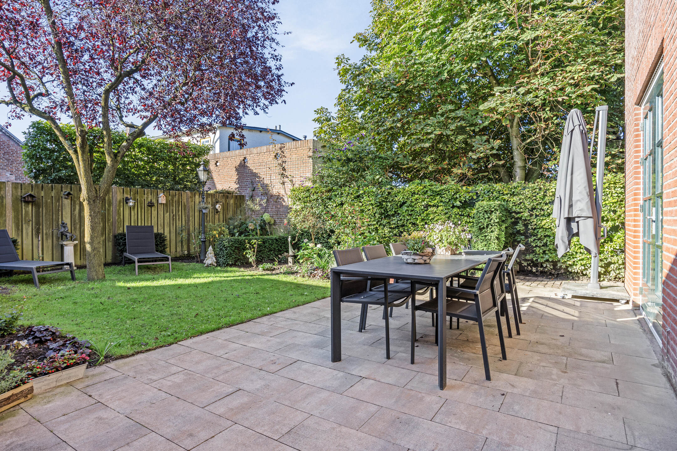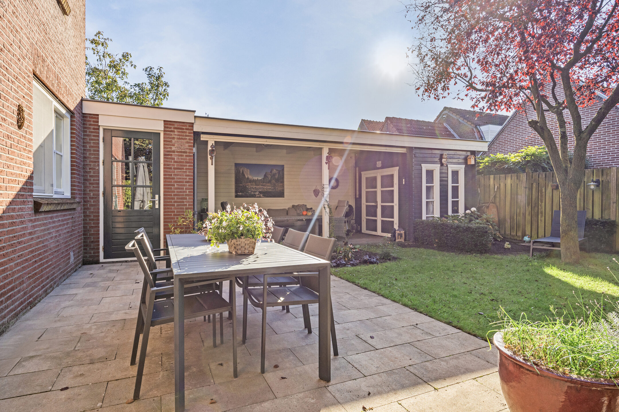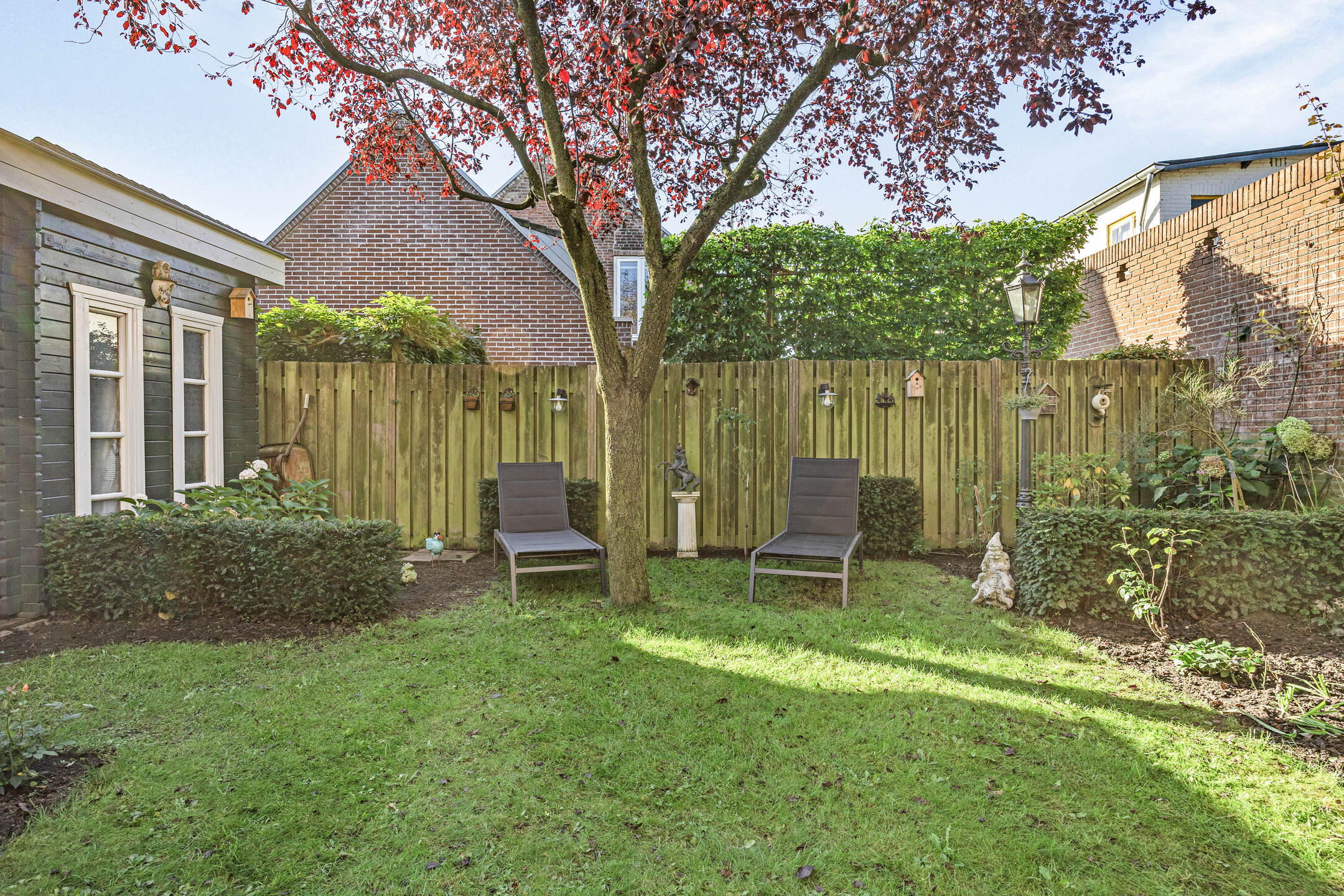 De achtertuin, gelegen op het zuiden, biedt volop privacy en is ideaal voor tuinliefhebbers. Met een diepte van 9 meter en een breedte van 12 meter heb je voldoende ruimte om te ontspannen op het terras bij de openslaande deuren, onder de overkapping (2015) of op het gazon. Via de zijkant is de tuin toegankelijk.
