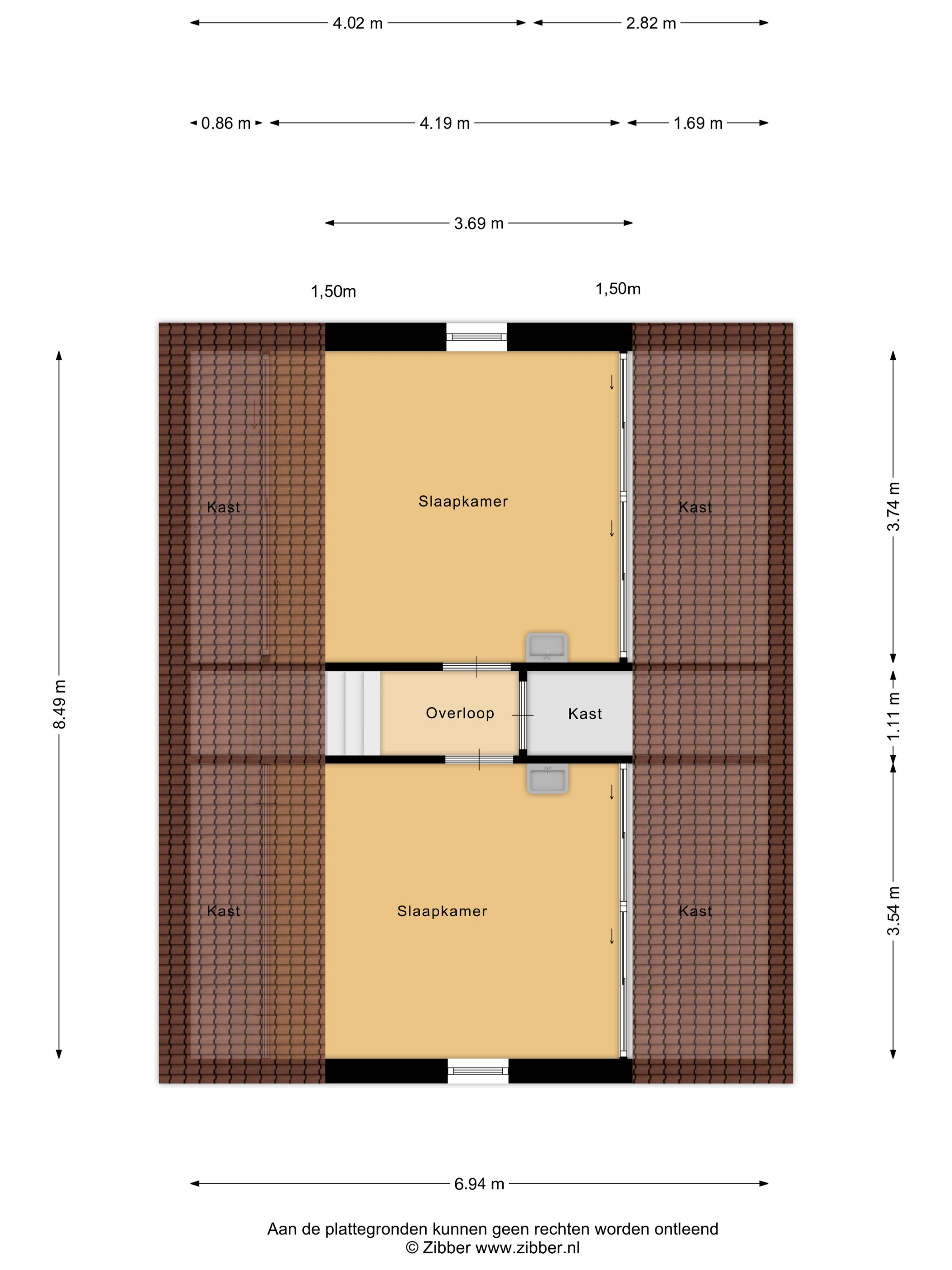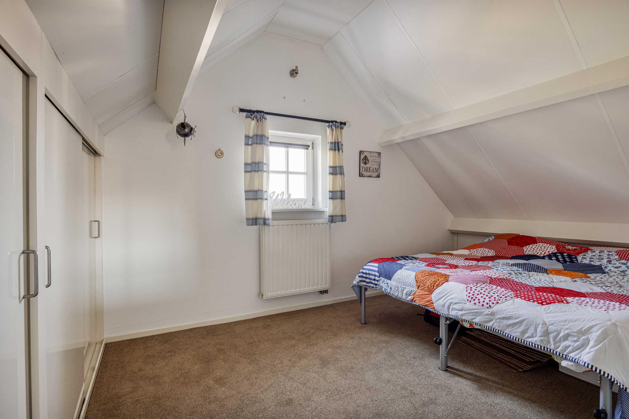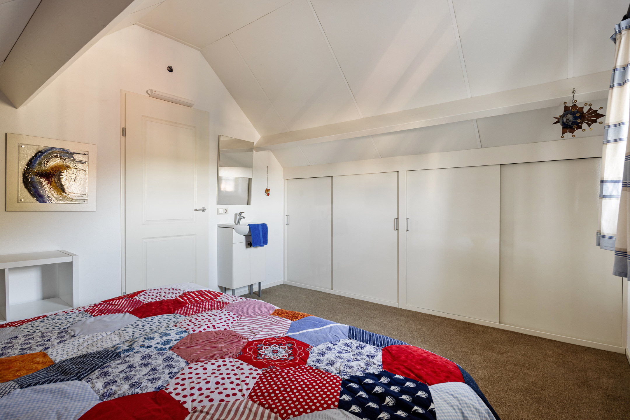 Via een vaste trap kom je op de tweede verdieping. Hier vinden we twee ruime slaapkamers (beide ca. 12 m²), beide voorzien van een vaste kastenwand en wastafel. Daarnaast is er een handige kast op de overloop waar de cv-ketel en een grote boiler (combisysteem) zijn opgesteld.