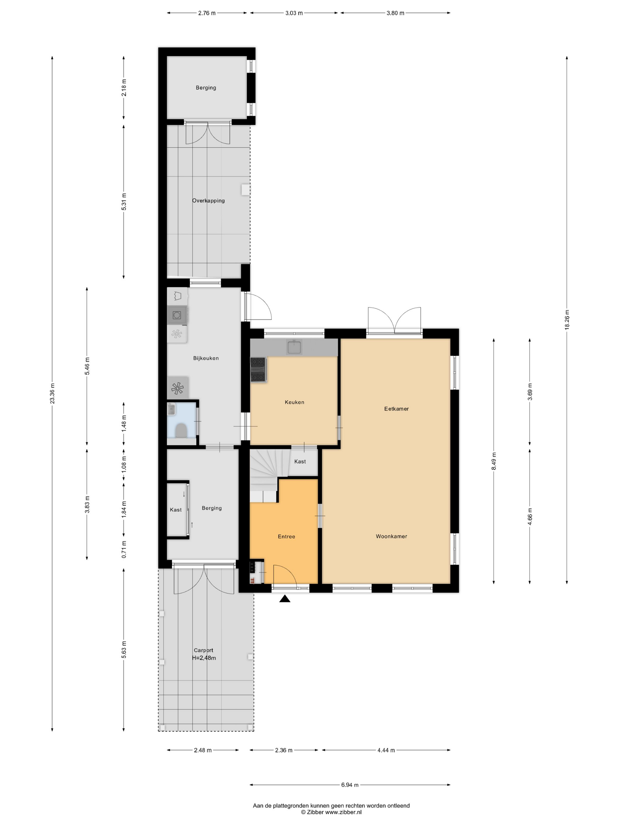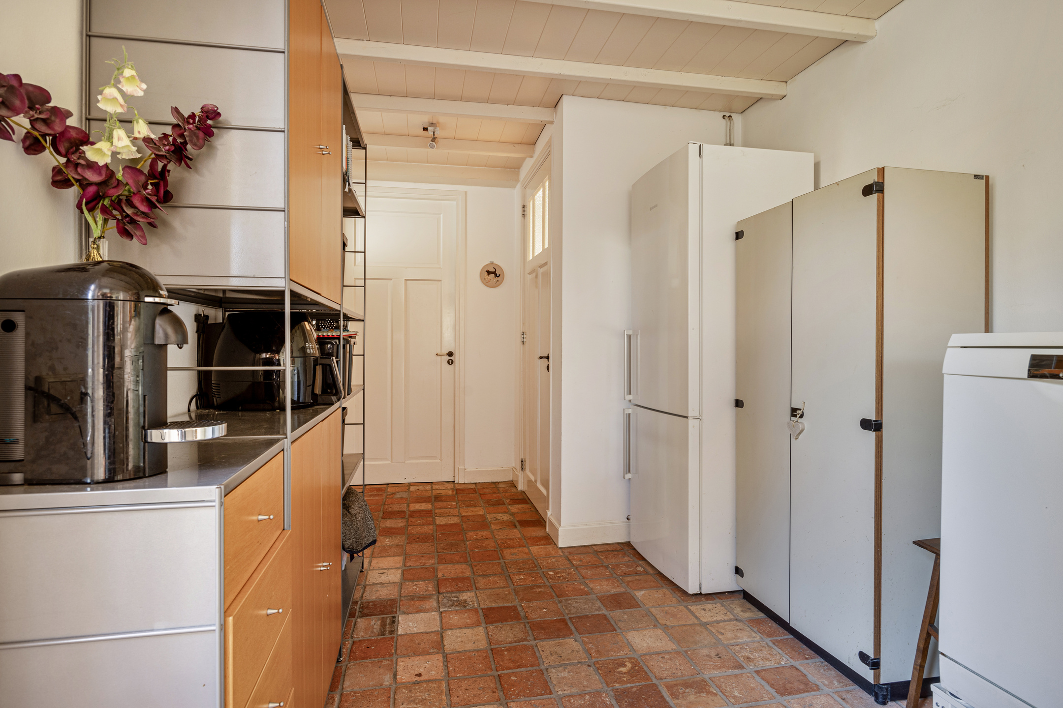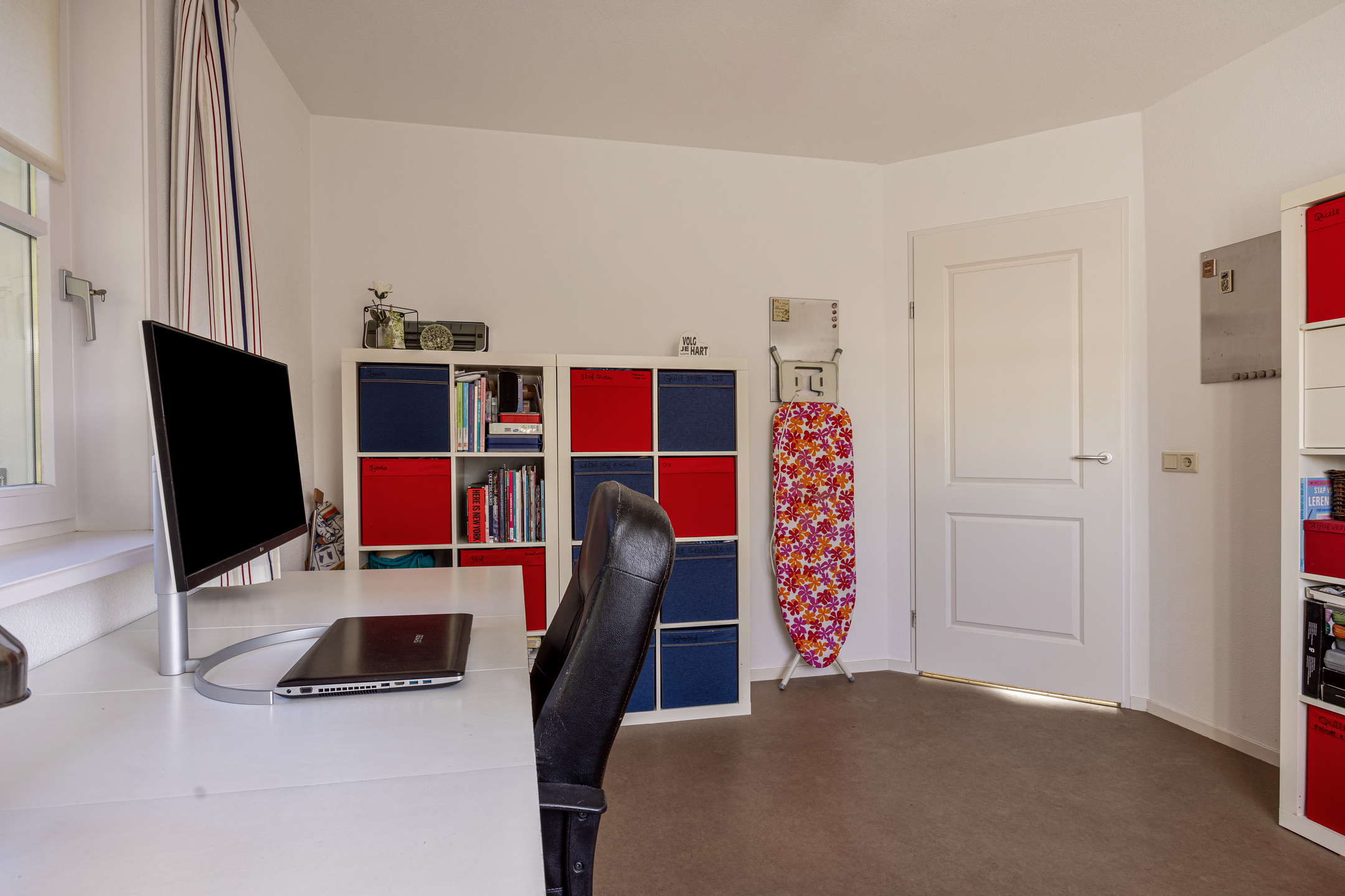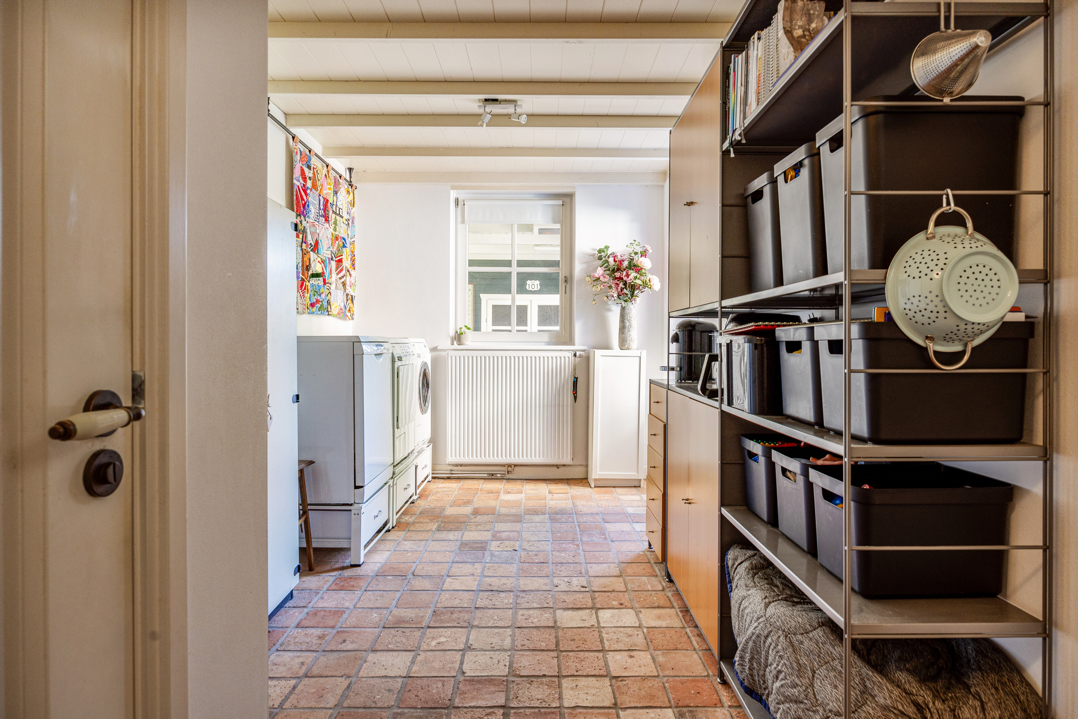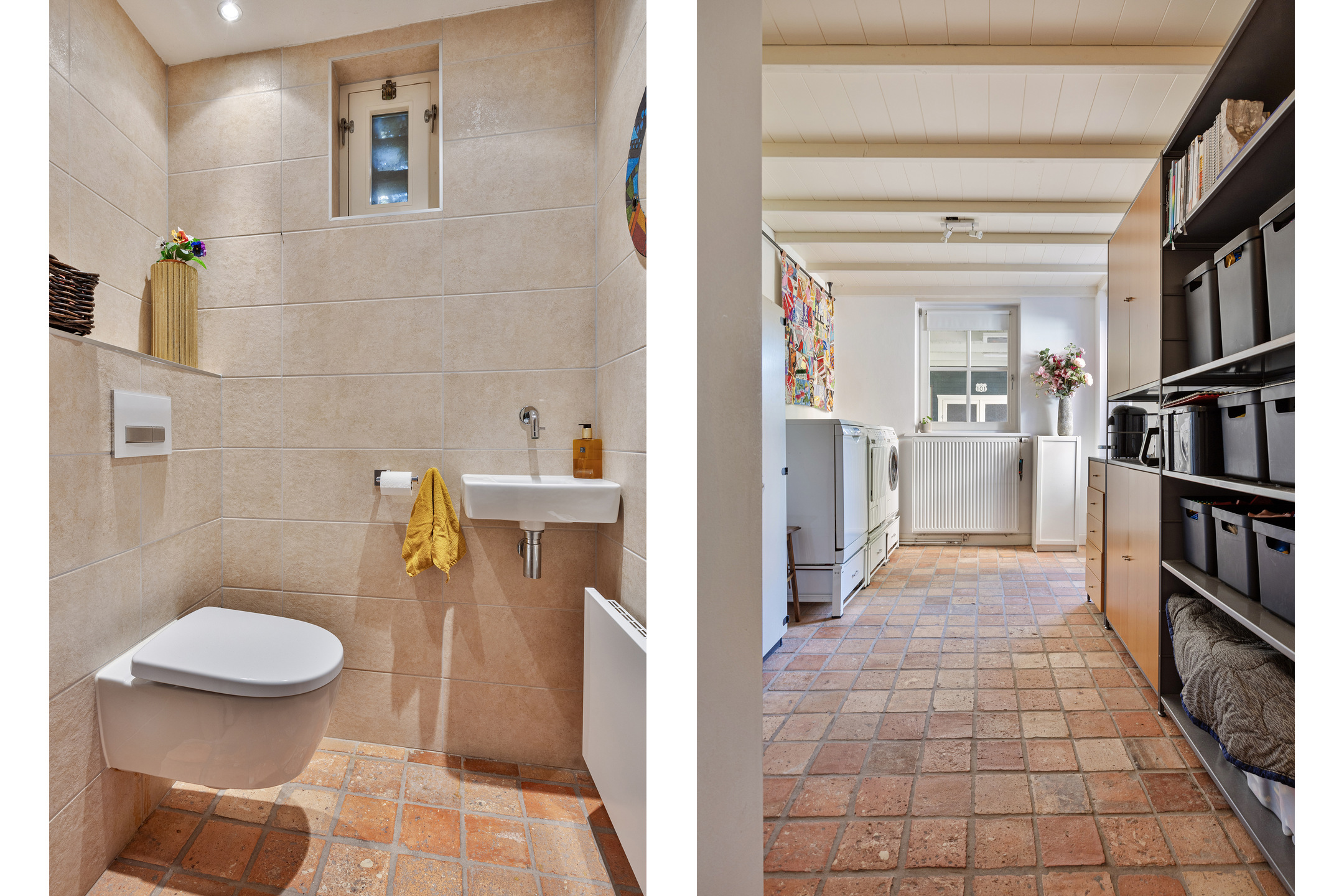 Vanuit de keuken heb je toegang tot de bijkeuken, waar zich ook de toiletruimte bevindt, aansluitingen voor de wasmachine en droger, en een deur naar zowel de tuin met overkapping als de inpandige berging aan de voorzijde. De gehele begane grond is voorzien van comfortabele vloerverwarming. De carport is bereikbaar via de berging en biedt toegang tot de oprit en de straat.