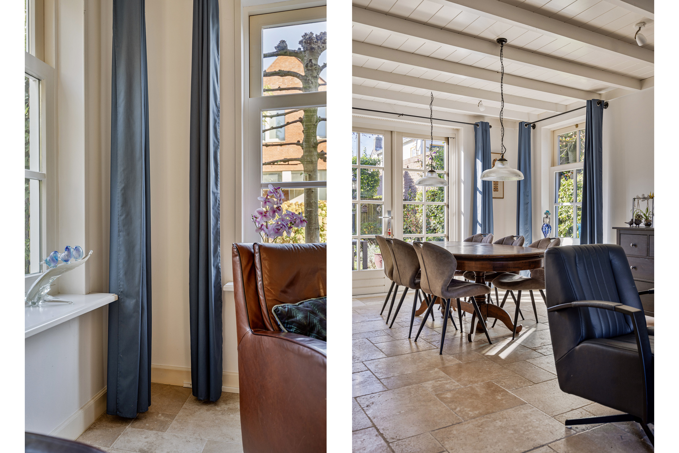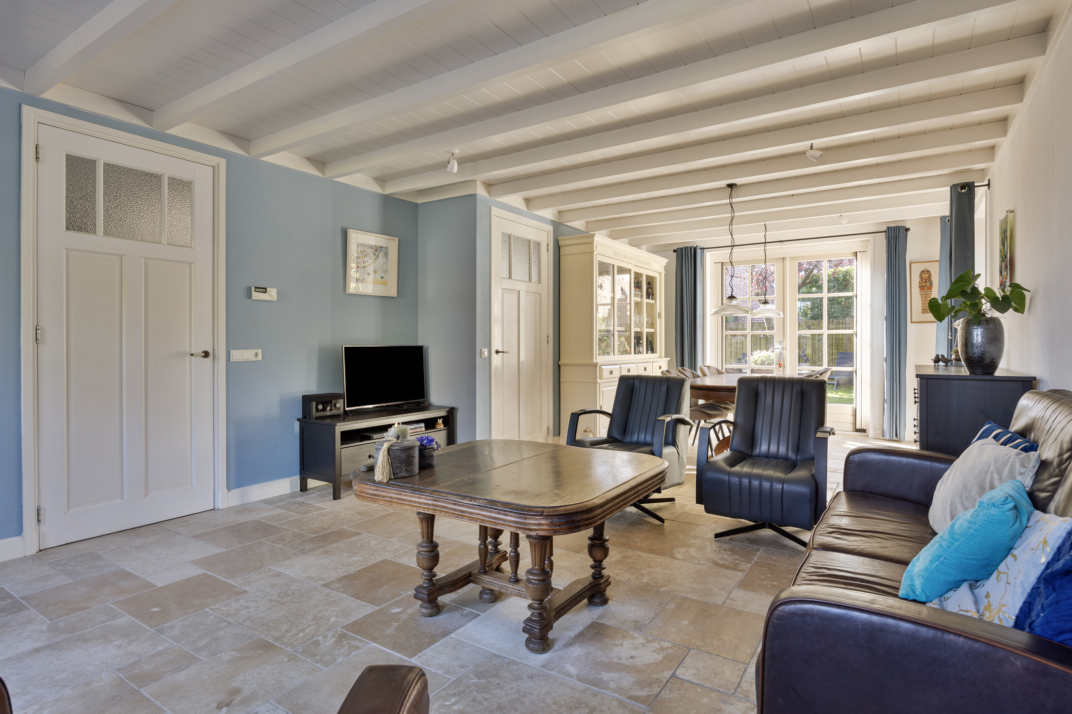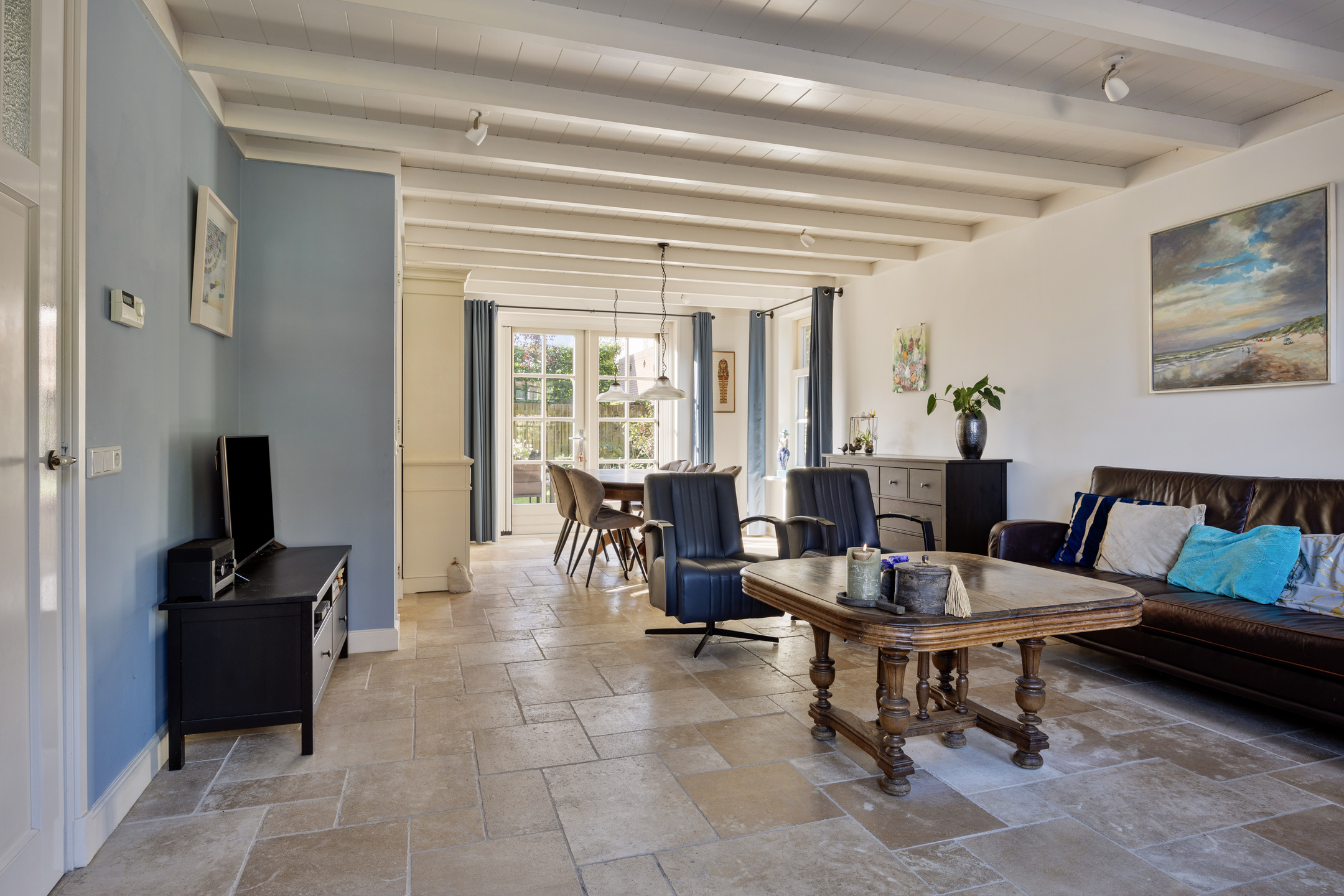 Bij binnenkomst treffen we een lichte hal met natuurstenen vloer, meterkast en trapopgang. Vanuit de hal bereiken we de ruime woonkamer, die eveneens een natuurstenen vloer heeft en voorzien is van vloerverwarming en openslaande deuren naar de tuin.