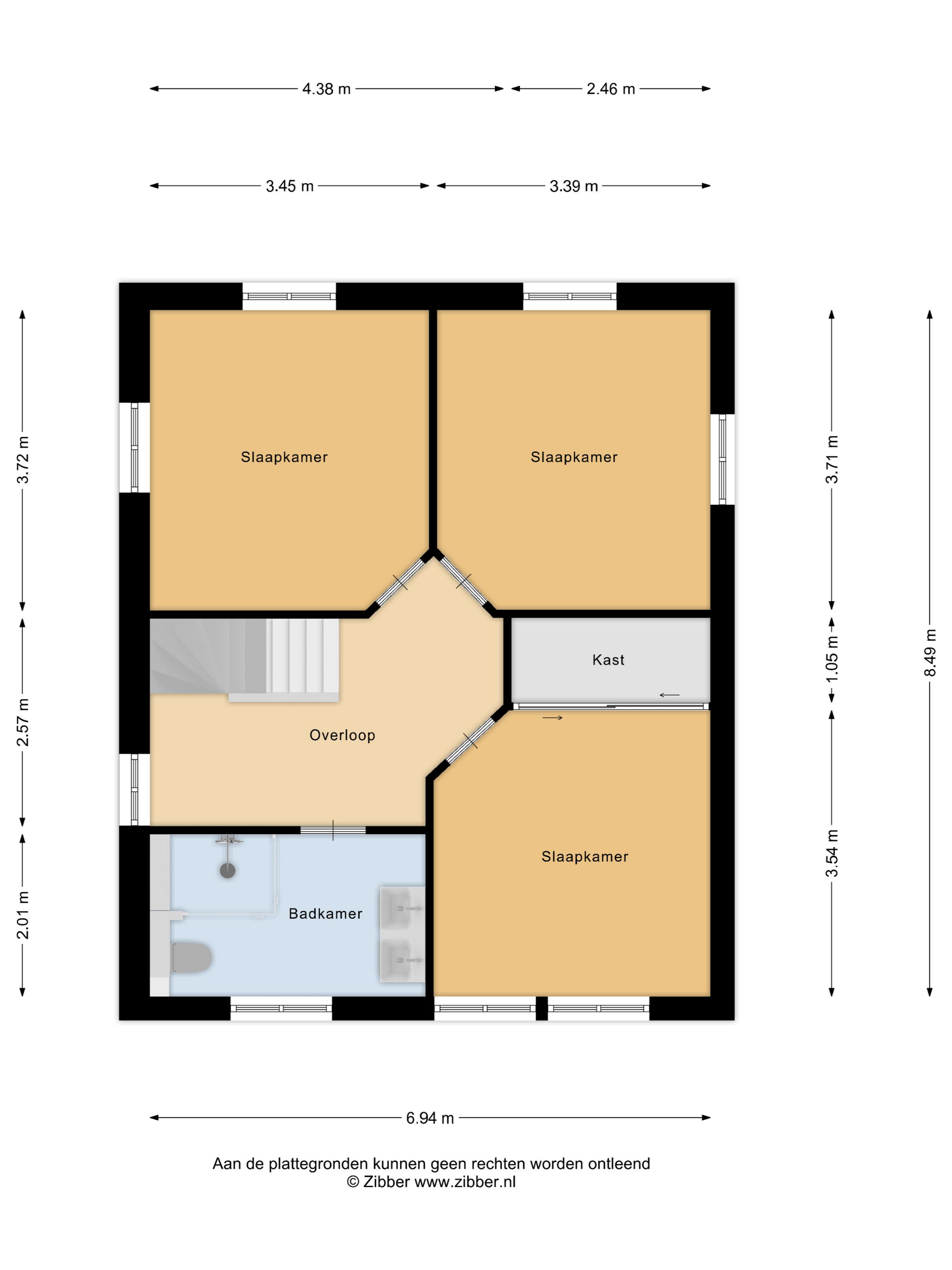 Op de eerste verdieping zijn drie zeer ruime slaapkamers te vinden. De grootste slaapkamer (ca. 15 m²) ligt aan de voorzijde en de andere twee slaapkamers (beide ca. 13 m²) aan de achterzijde. De moderne badkamer (uit 2014) is volledig betegeld en voorzien van een inloopdouche, wandcloset en dubbel wastafelmeubel.