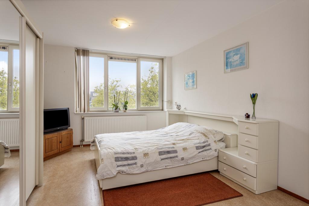 De slaapkamers zijn prettig licht en ruim, met respectievelijk 13 m2 en 17 m2 zijn het twee volwaardige slaapkamers. Beide slaapkamers zijn voorzien vaste kastenwanden en grote raampartijen en dragen bij aan een goede hoeveelheid lichtinval.