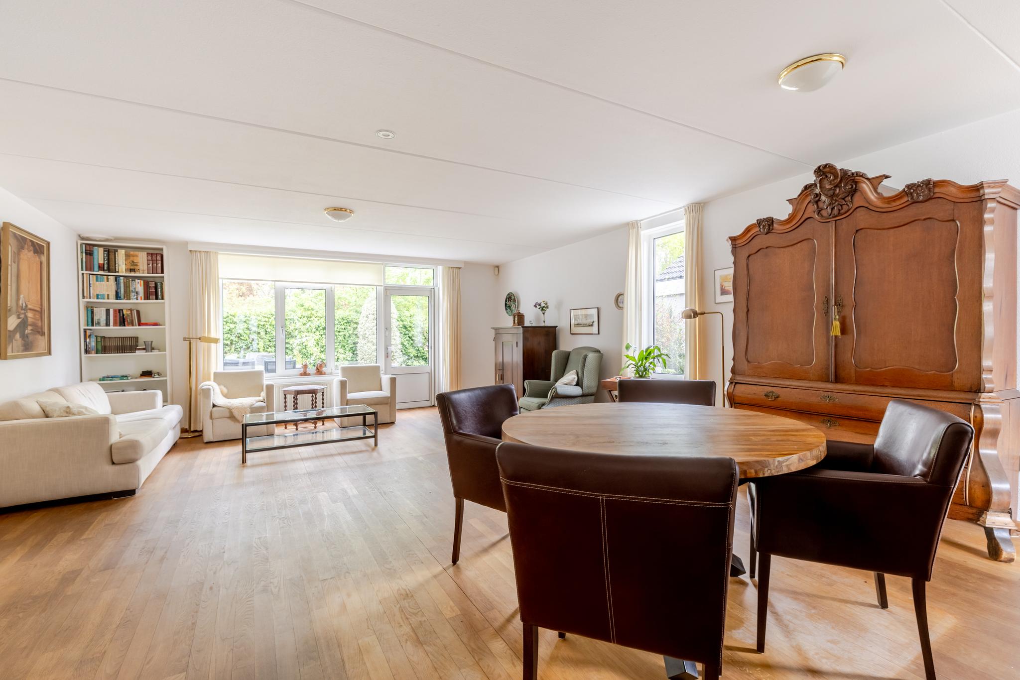 De royale woonkamer is gesitueerd aan de tuinzijde en biedt een prachtig vrij uitzicht op het omliggende groen – een ideale plek om tot rust te komen. Grote raampartijen aan de achterzijde én extra ramen aan de zijkant zorgen voor een overvloed aan daglicht, waardoor de ruimte licht en ruimtelijk aanvoelt.