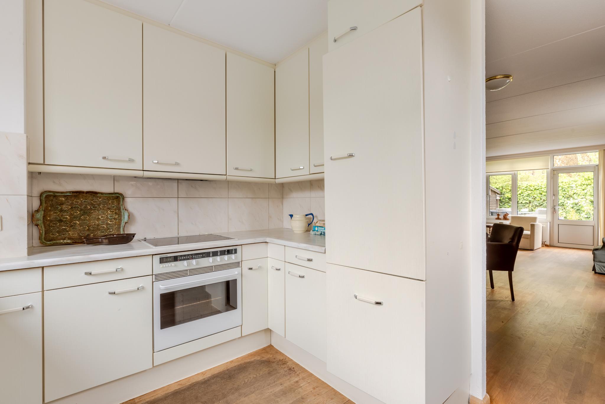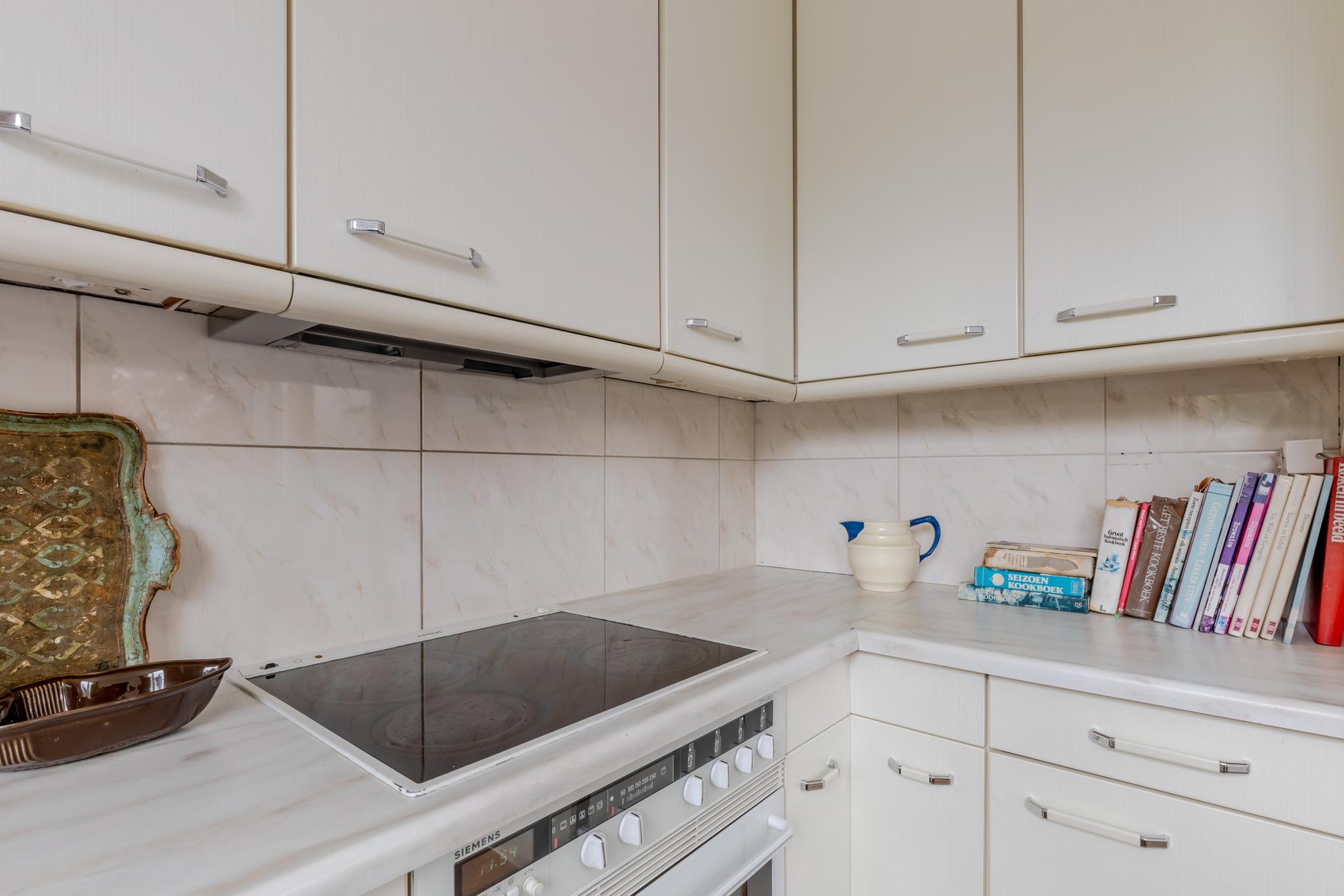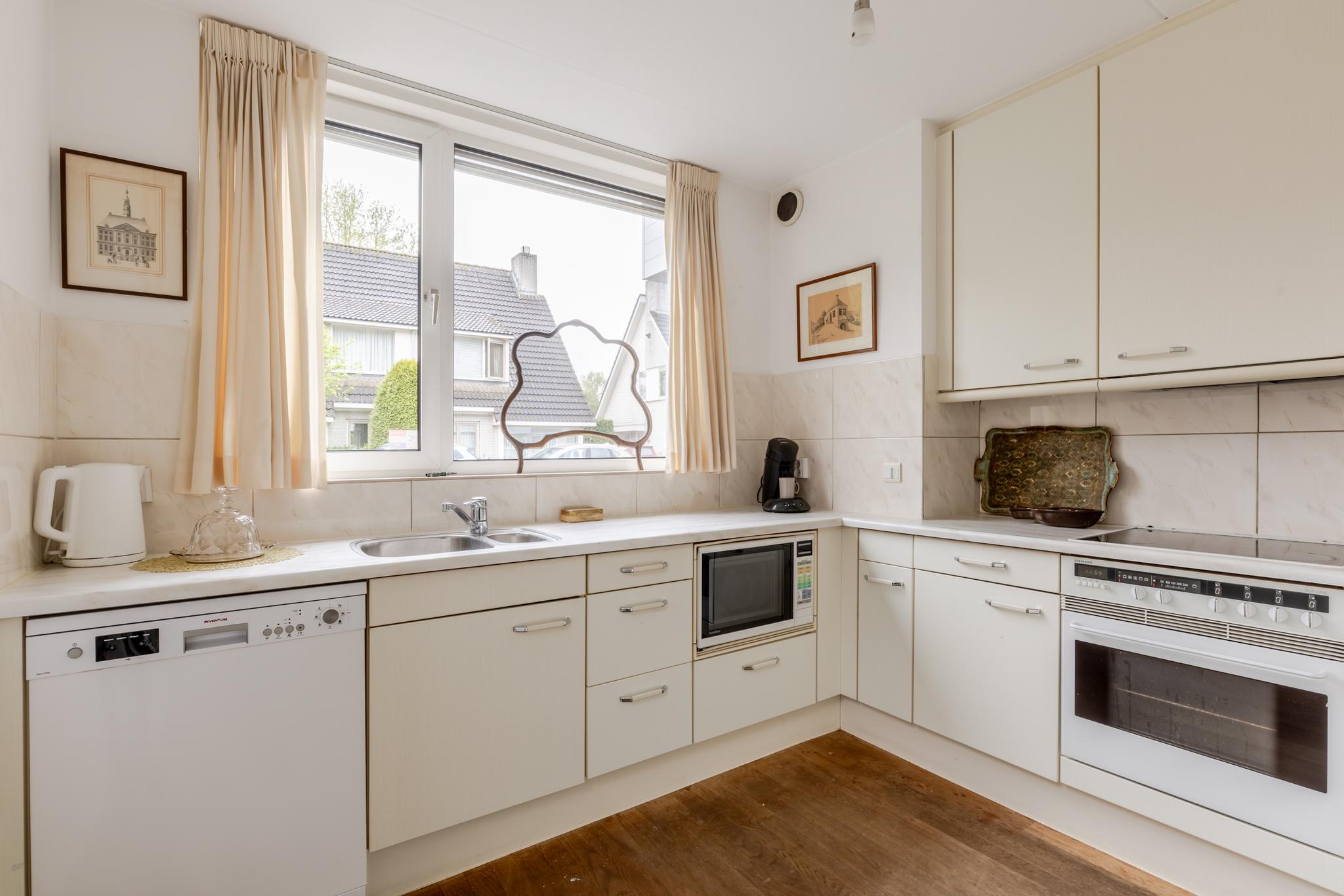 Aan de voorzijde van de woning bevindt zich een praktisch ingedeelde U-vormige keuken met fraai uitzicht op de voortuin. Deze lichte keuken is voorzien van volop opbergruimte dankzij de boven- en onderkasten en beschikt over een onderhoudsvriendelijk kunststof werkblad. De keuken is uitgerust met diverse inbouwapparatuur, waaronder een elektrische kookplaat, vaatwasser, magnetron, oven en een koel-vriescombinatie – grotendeels van het kwaliteitsmerk Siemens. Een ideale plek om comfortabel te koken en te genieten van het uitzicht.