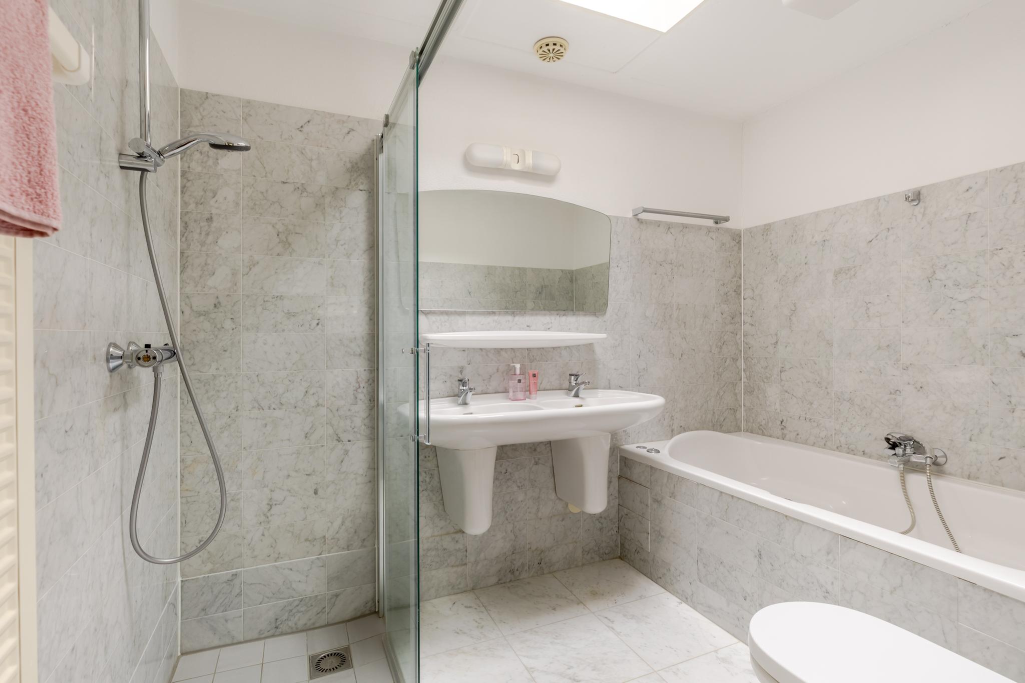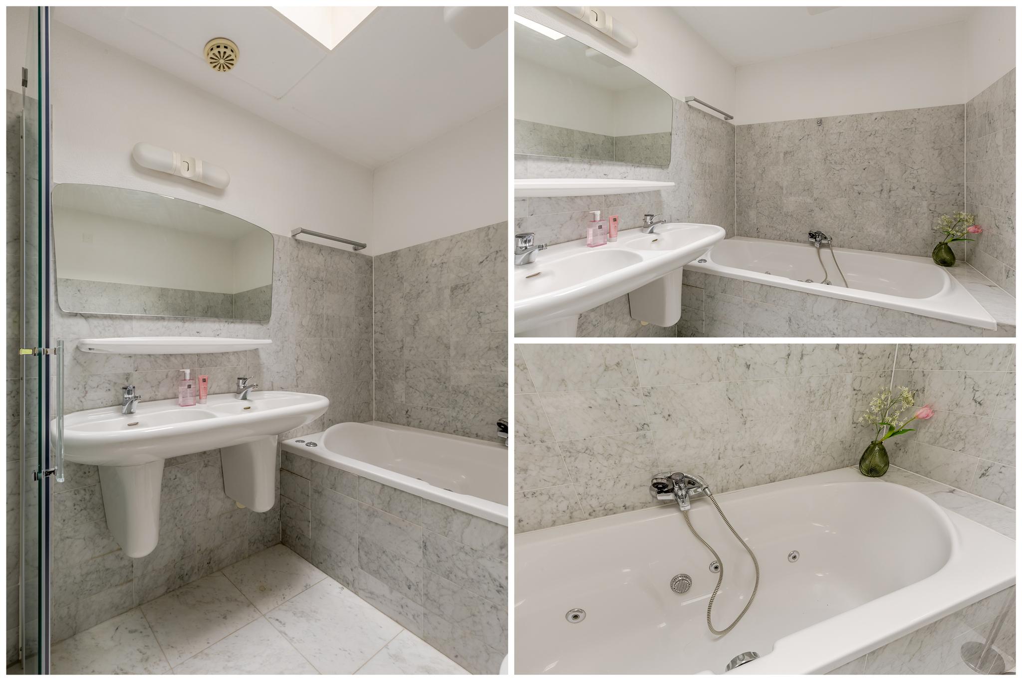 - Ligbad, toilet, dubbele wastafel, inloopdouche en douche