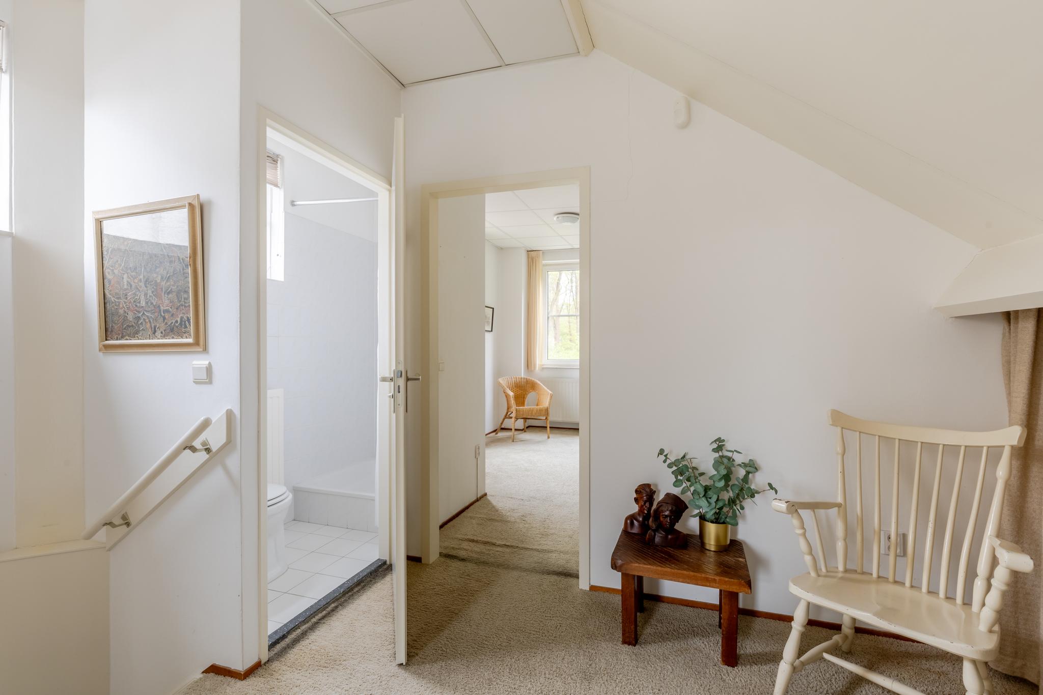 De bovenverdieping biedt verrassend veel ruimte en comfort. Via de royale overloop, heeft u toegang tot de Intergas CV-combiketel (2008) en een tweede badkamer met douche en toilet. Daarnaast vindt u hier twee ruime slaapkamers met eigen wastafels. Door de raampartijen is er veel licht, bovendien is één van de kamers voorzien van een balkon. Een veelzijdige verdieping met talloze mogelijkheden, zoals het creëren van een extra logeerkamer, werkplek of hobbyruimte.