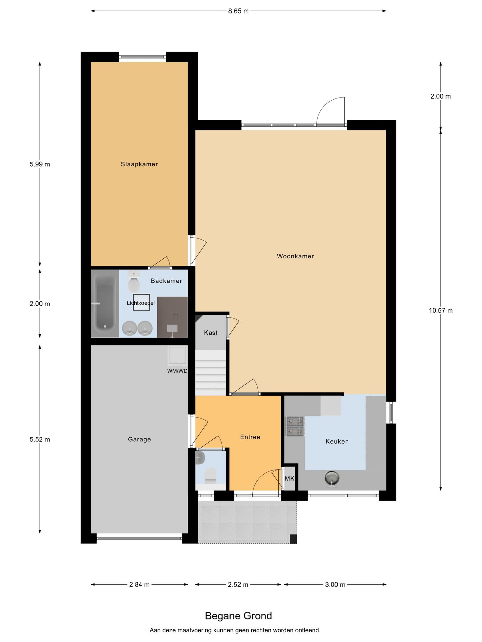 Bij aankomst springt direct de keurig aangelegde, onderhoudsvriendelijke voortuin in het oog. De ruime oprit biedt plaats aan twee auto’s en leidt naar zowel de inpandige garage als de overdekte entree van de woning. U komt binnen via de hal, waar zich de meterkast, het modern afgewerkte toilet met fonteintje, de trap naar de eerste verdieping, de toegang tot de garage en de deur naar de woonkamer bevinden.