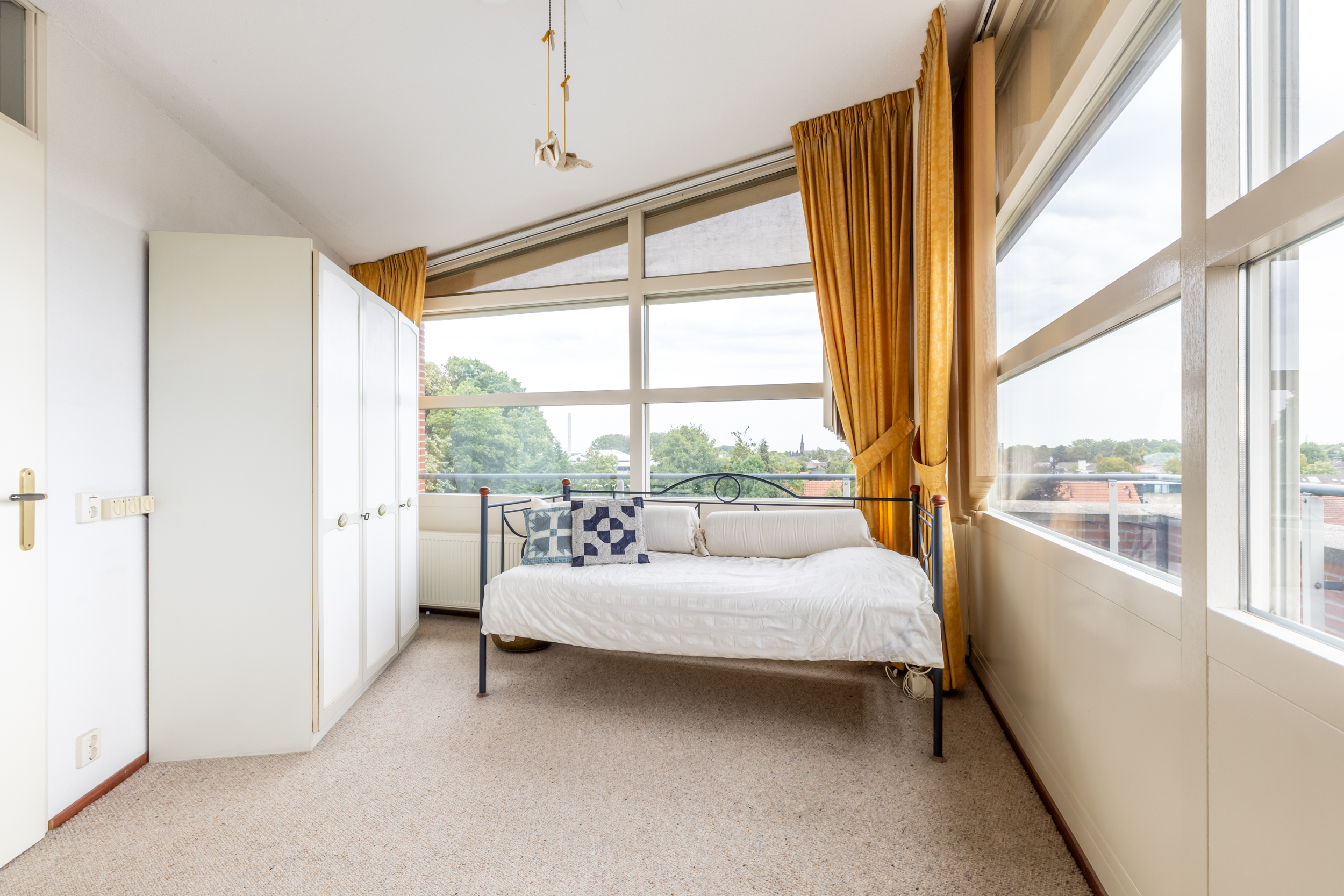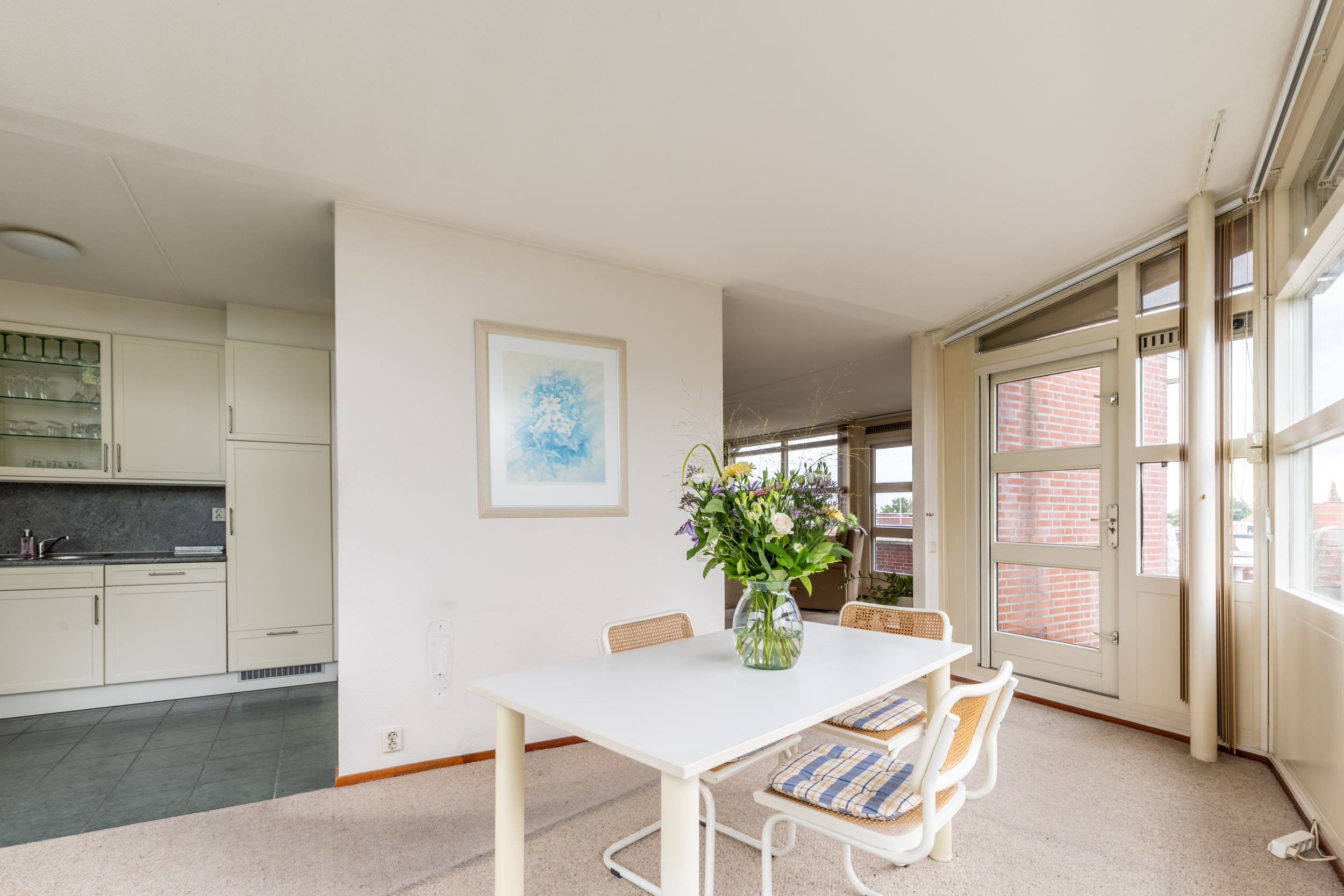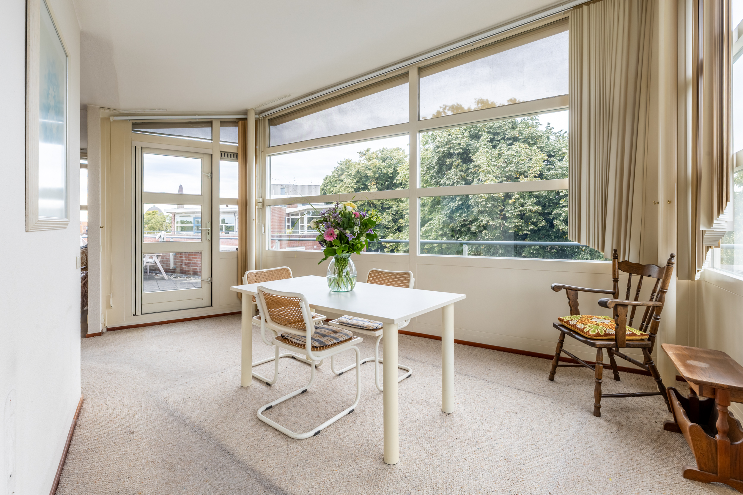 Aan de achterzijde van het complex, op de vierde verdieping, vind je nummer 54. Dit mooie 3-kamerappartement is een buitenkans. Ruim van opzet, goed verzorgd en met een riant dakterras rondom de woning.